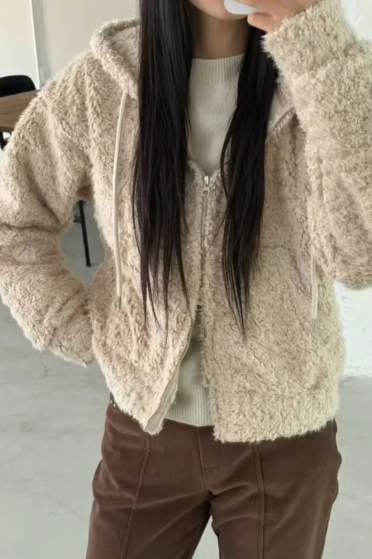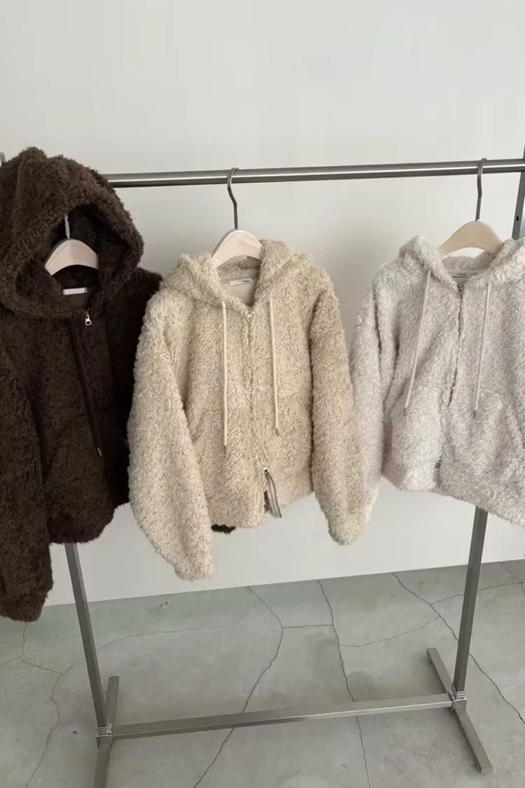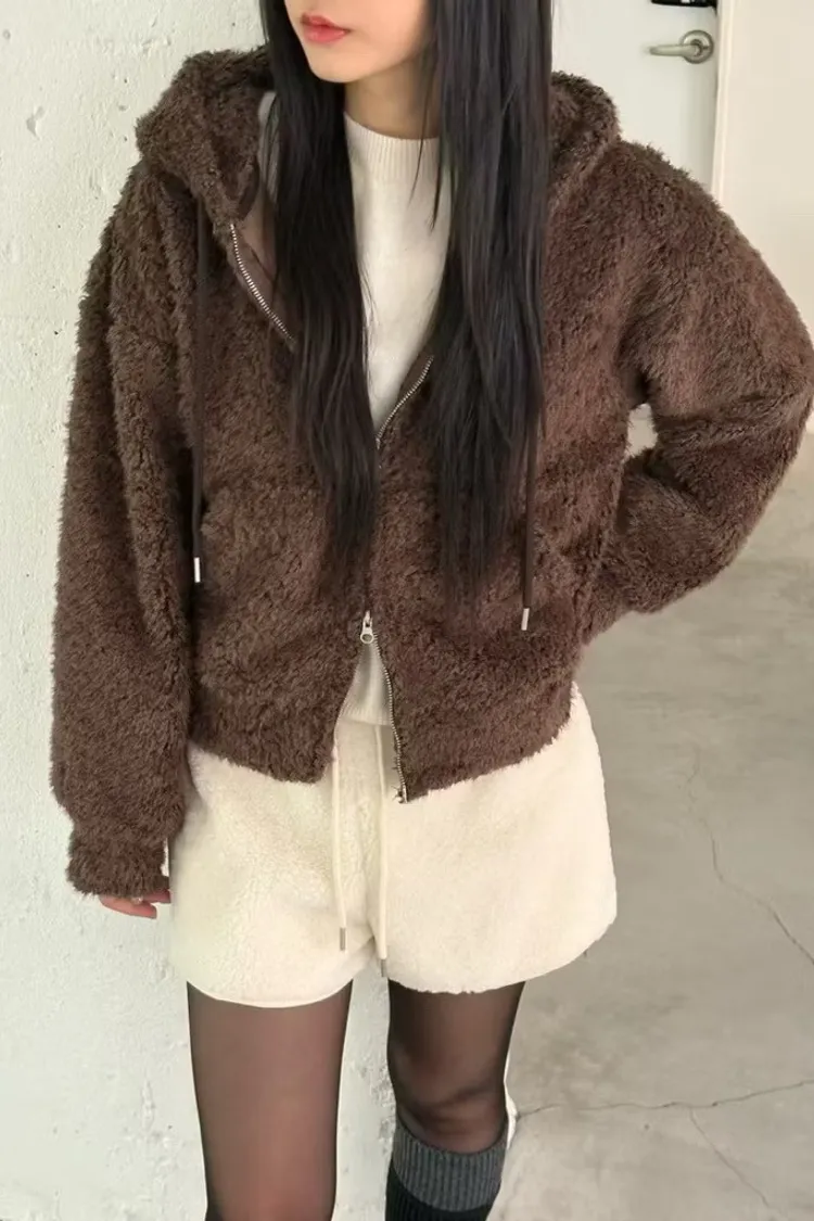 可愛熊熊毛料雙拉鍊外套