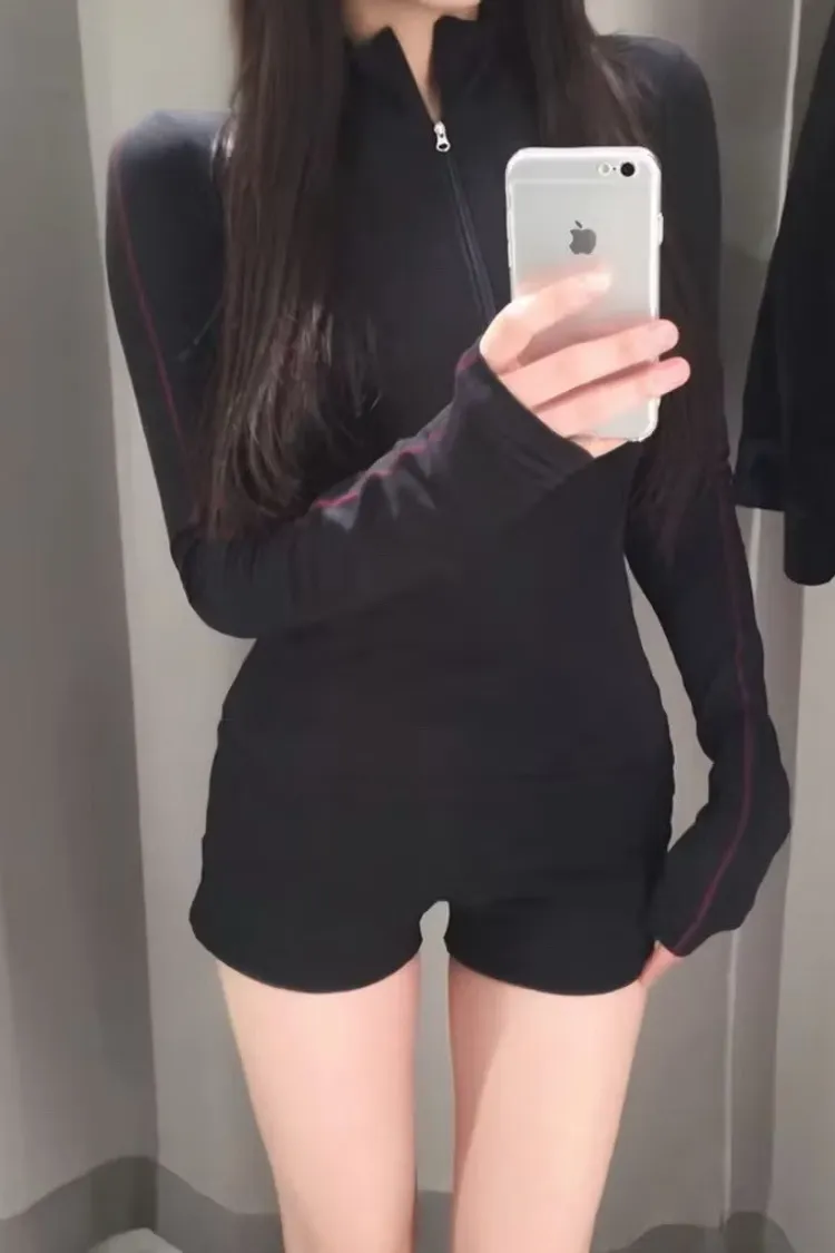 貼身半拉鍊長袖上衣