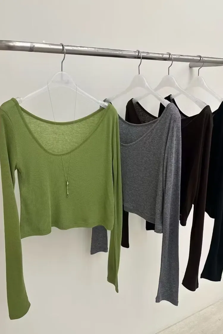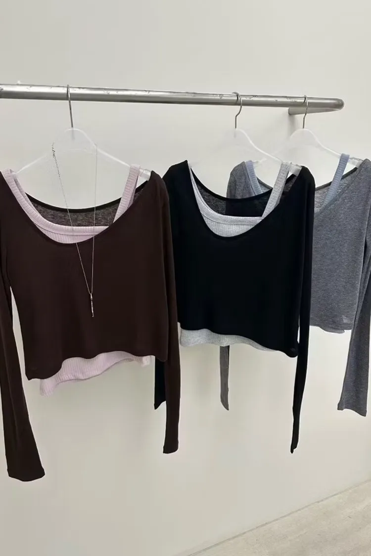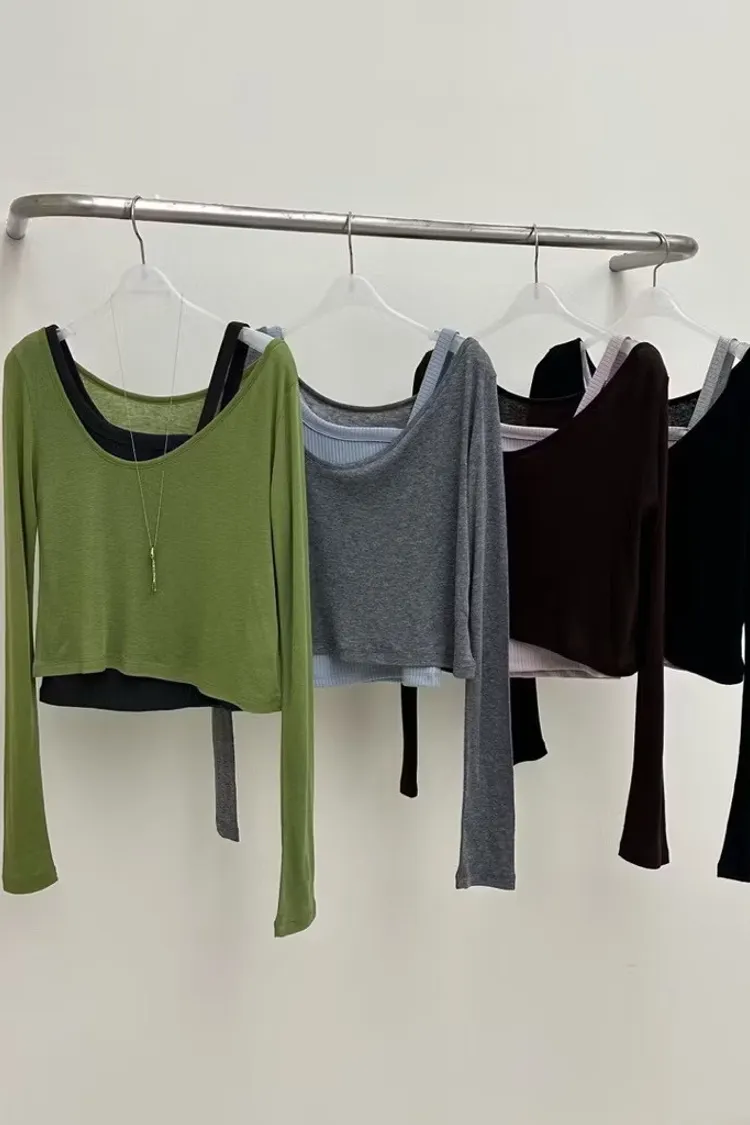 不對稱背心+圓領長袖上衣set