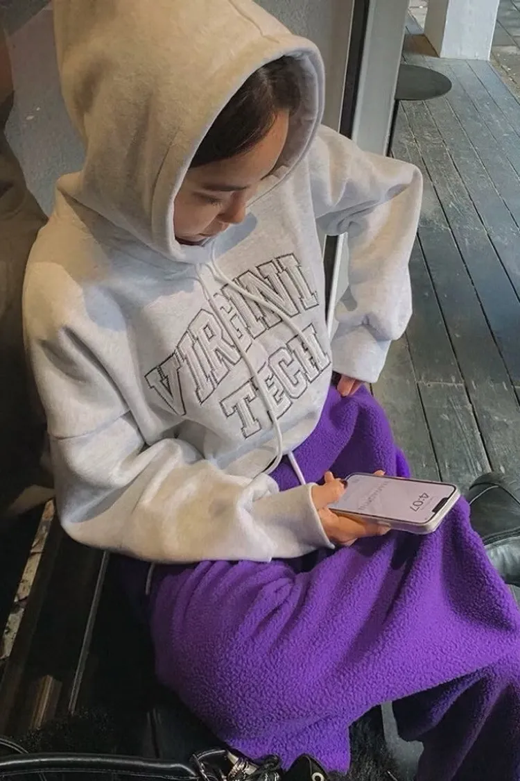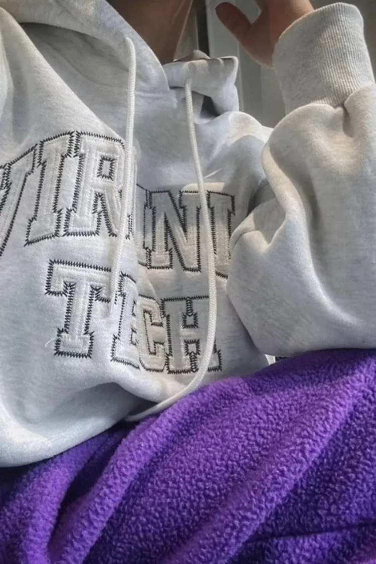 日常必備立體字母內刷毛連帽衛衣