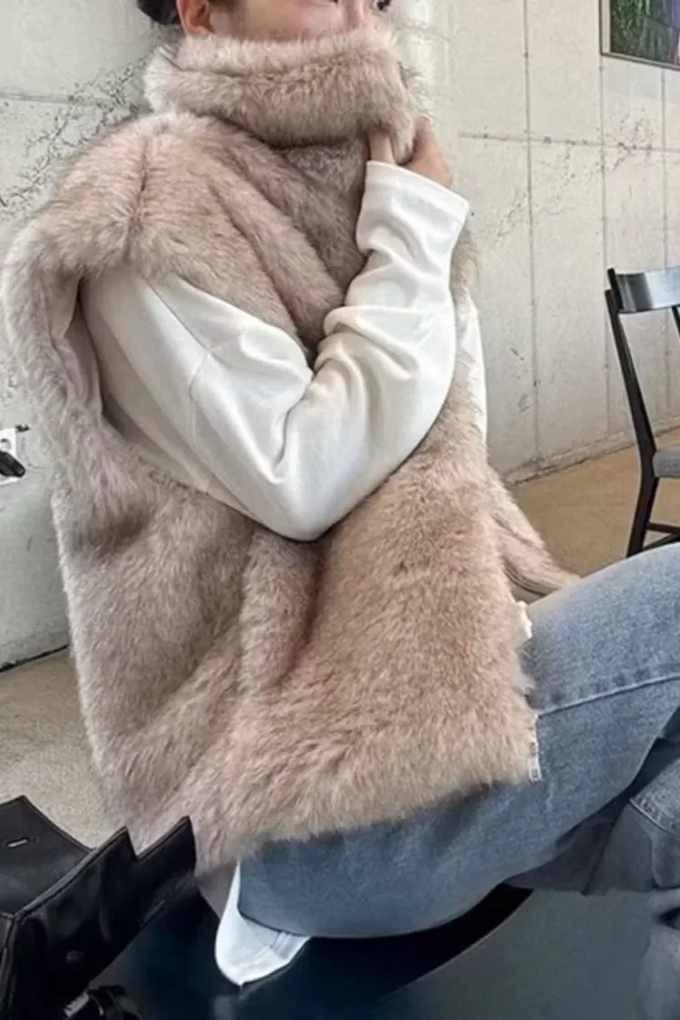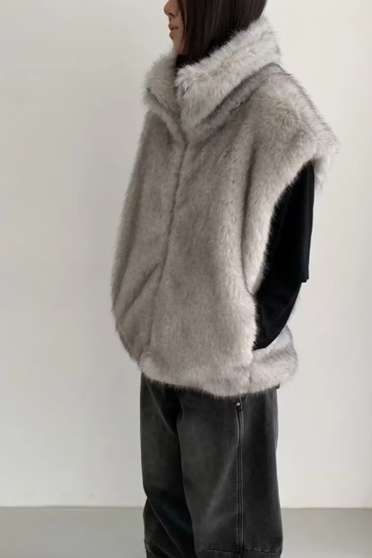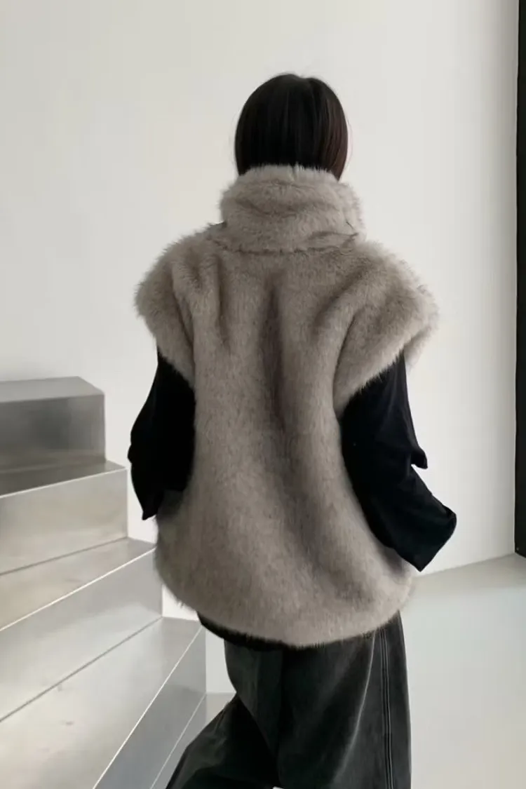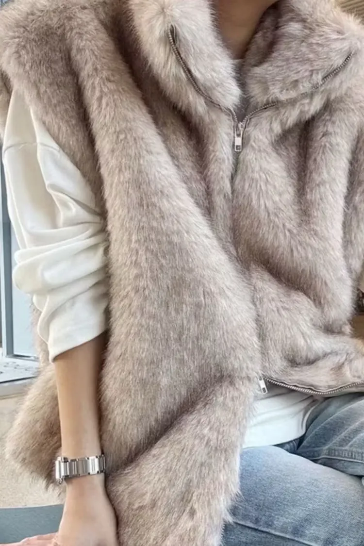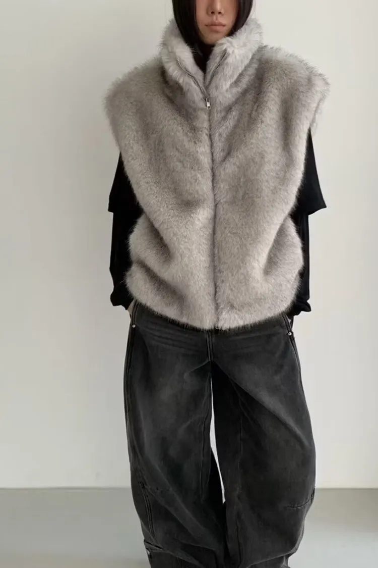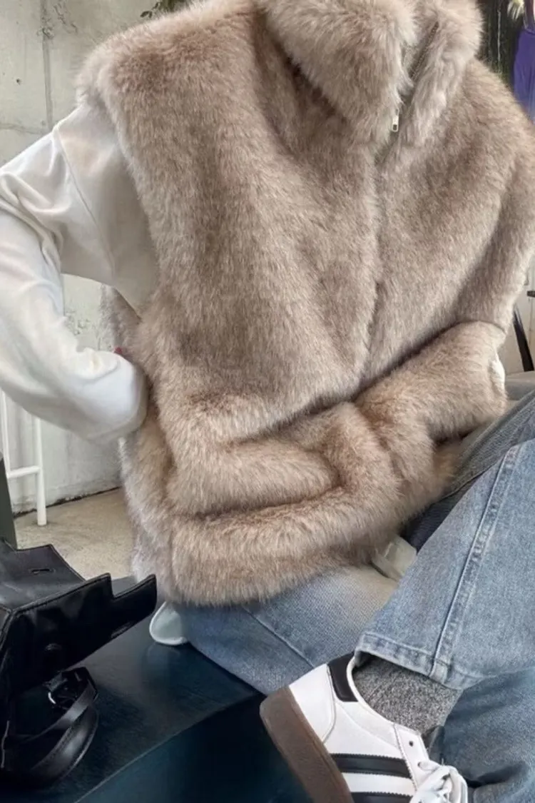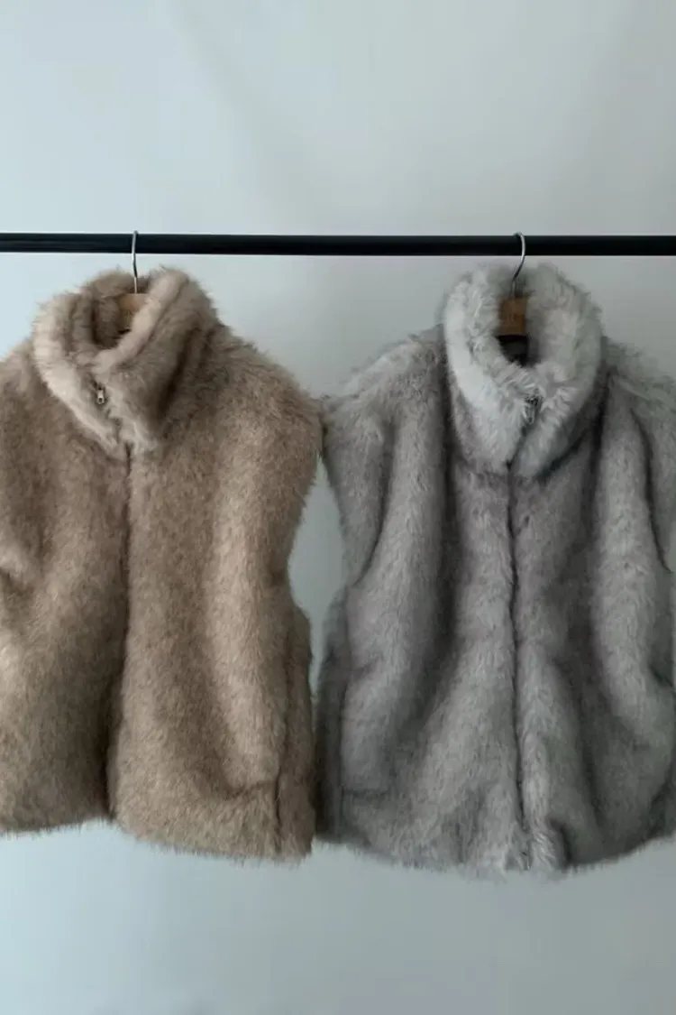 軟軟毛毛雙拉鍊立領背心