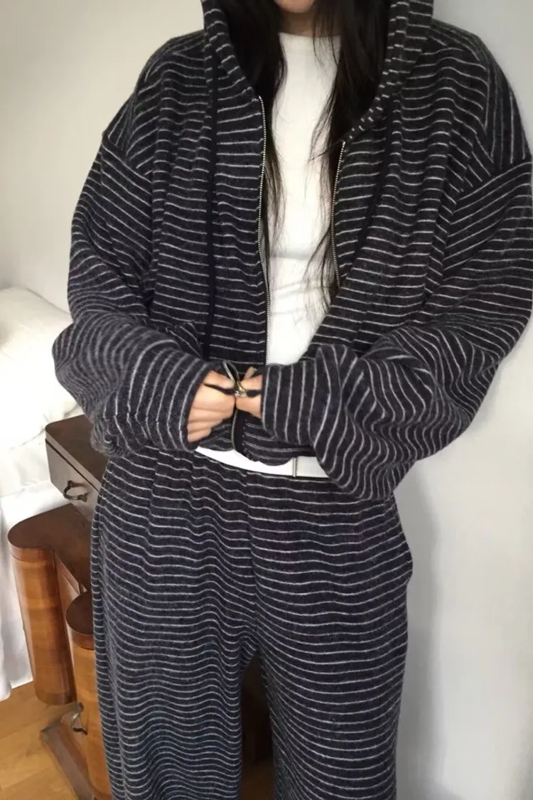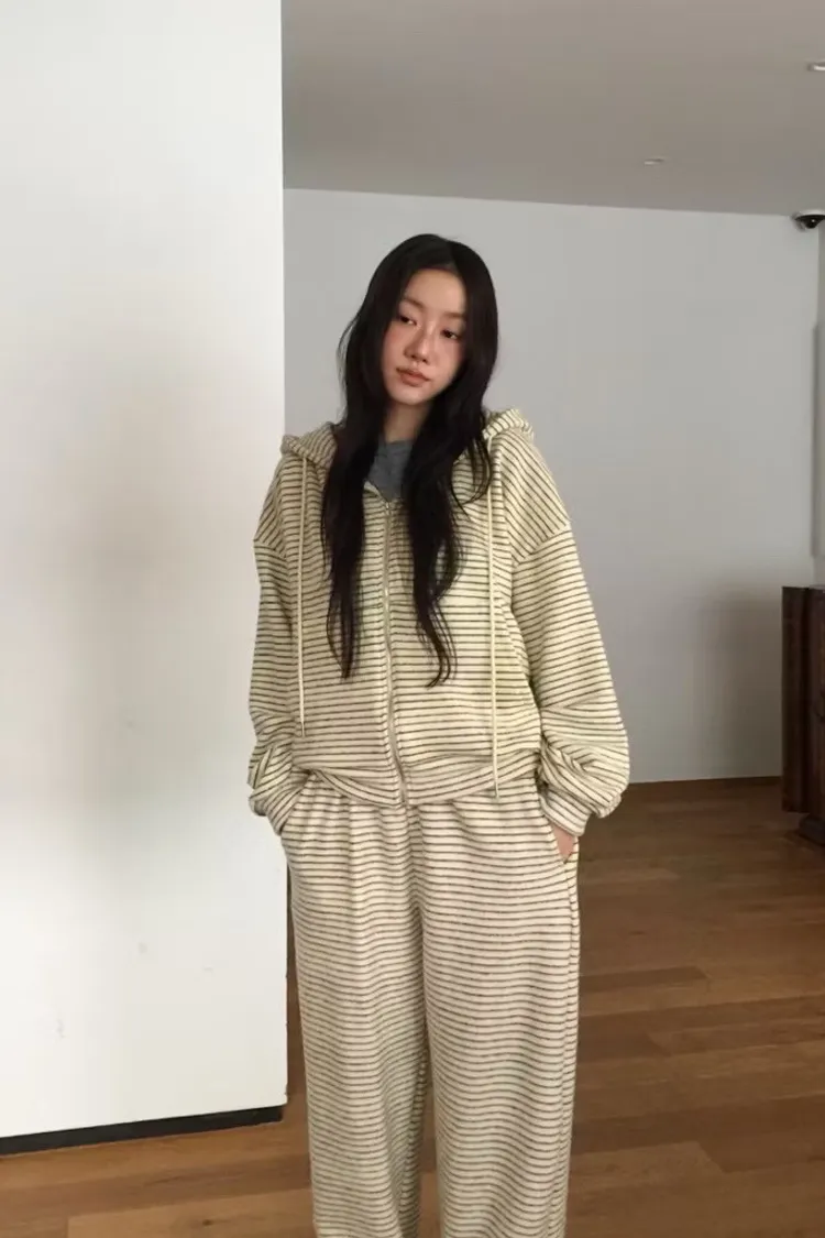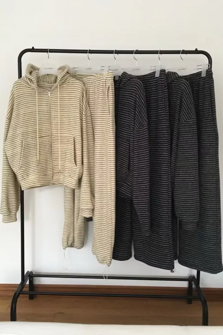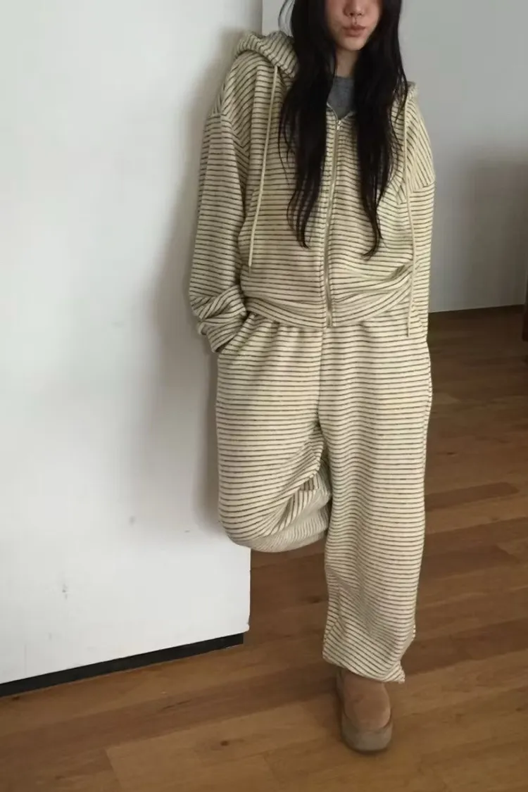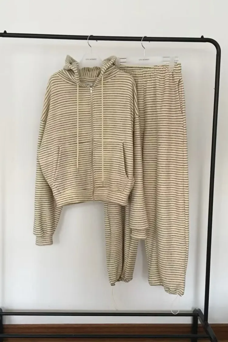 軟軟條紋連帽外套+長褲set
