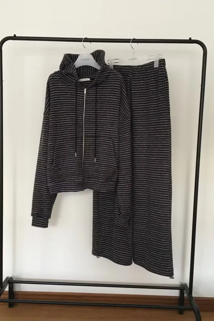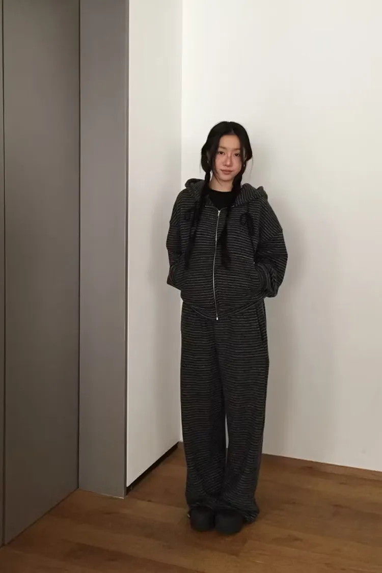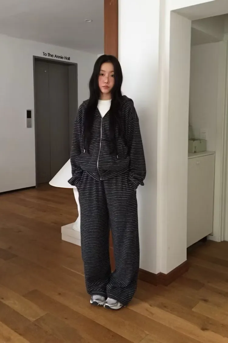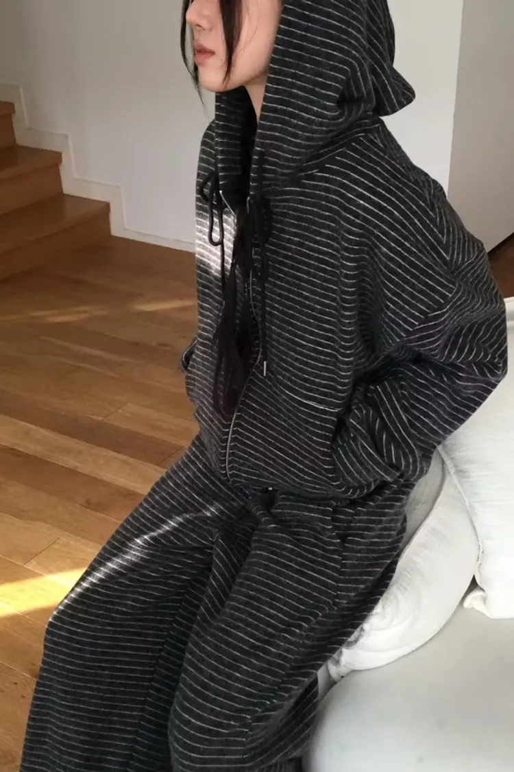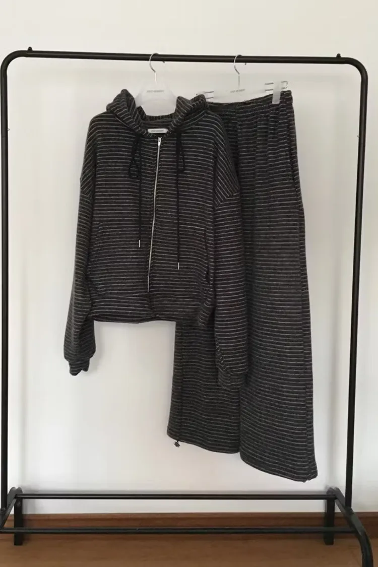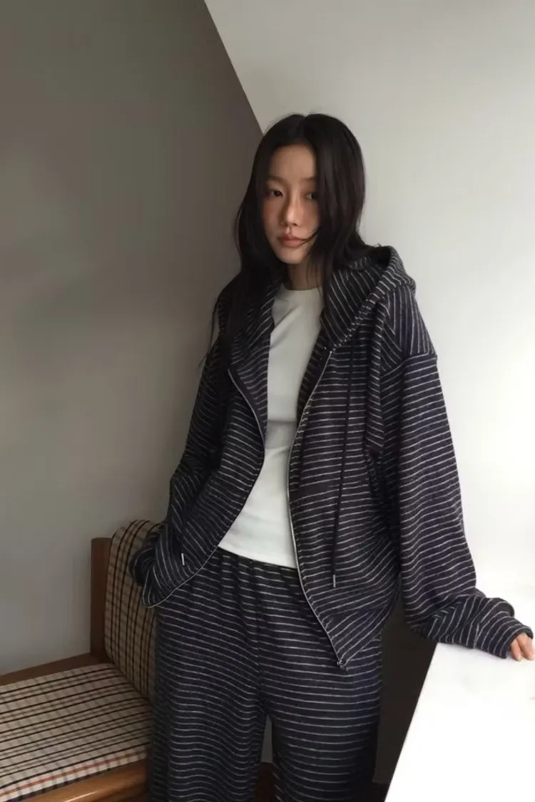 軟軟條紋連帽外套+長褲set