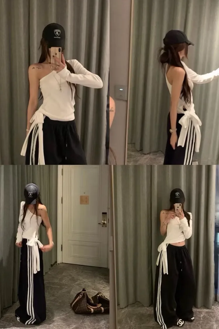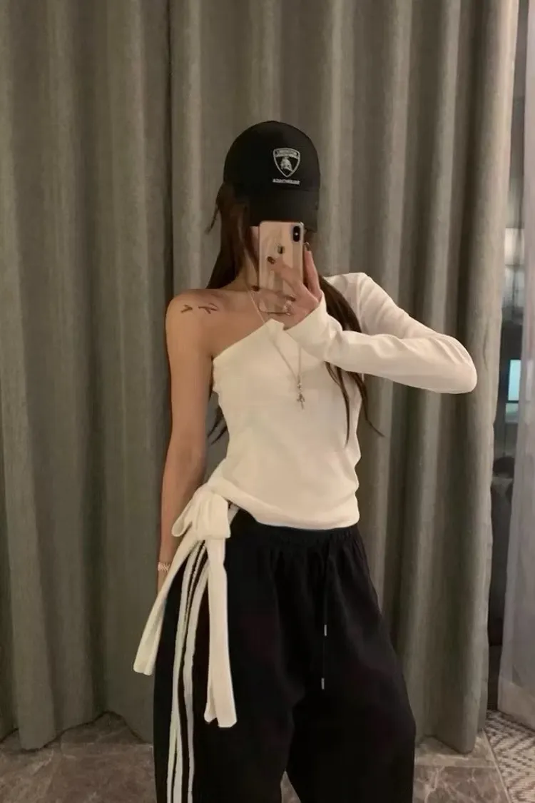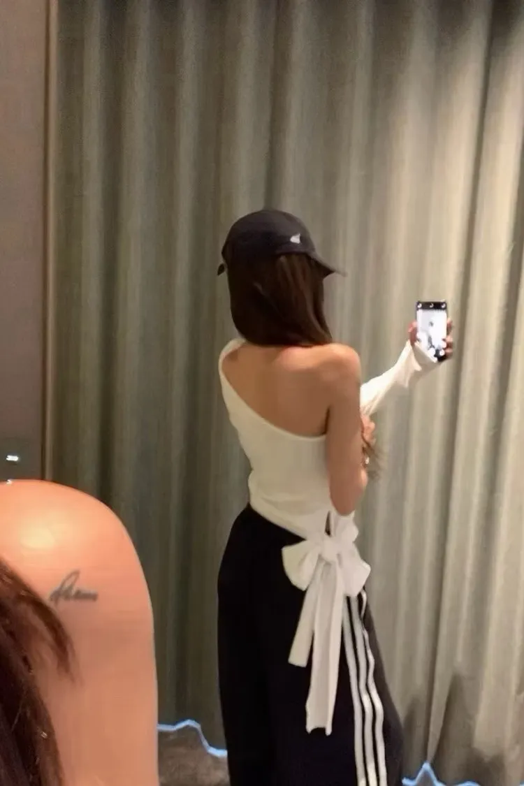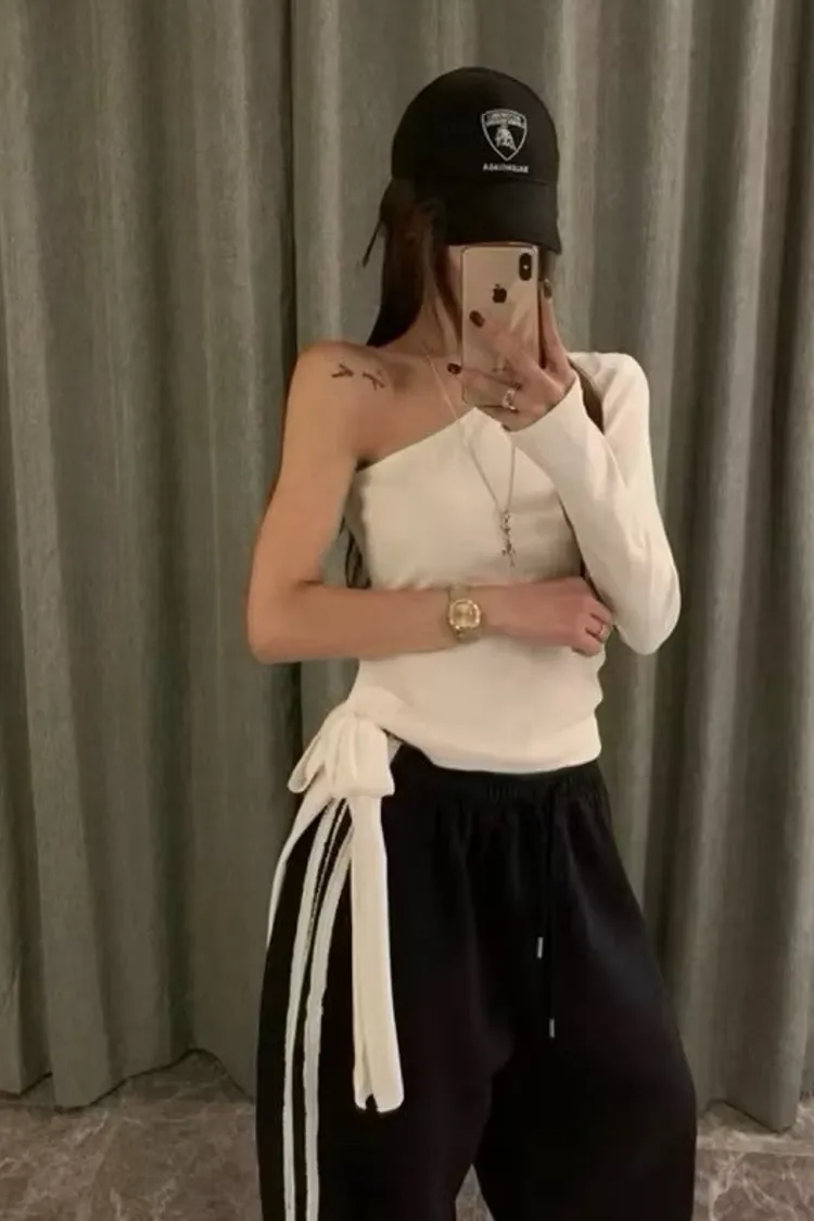 微性感斜肩側綁結上衣