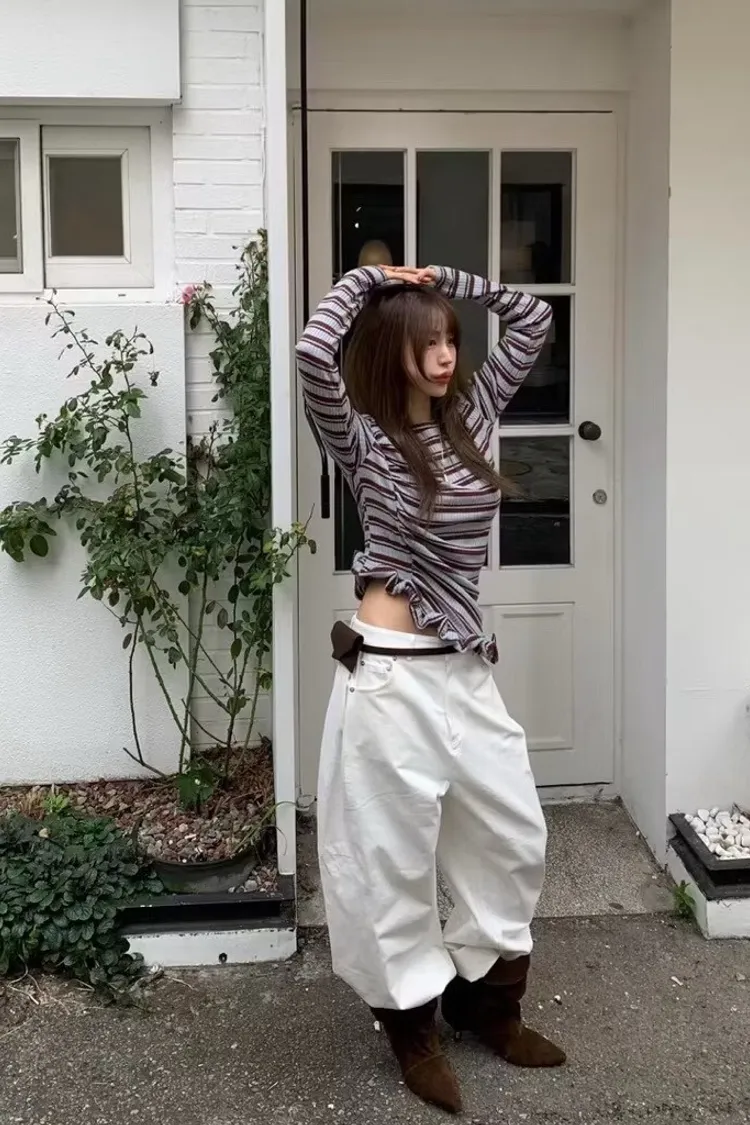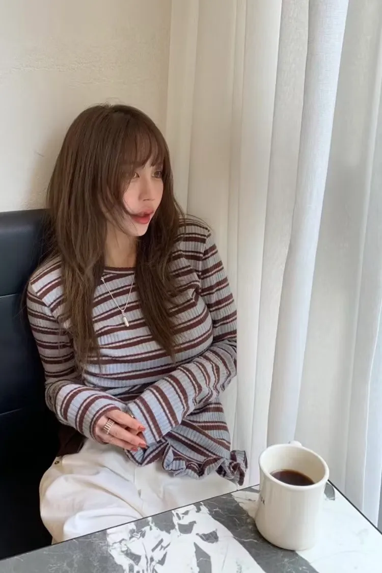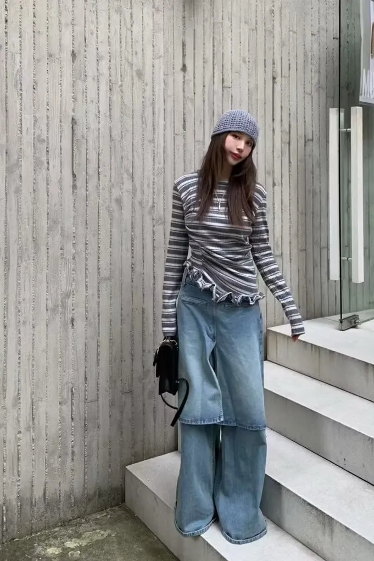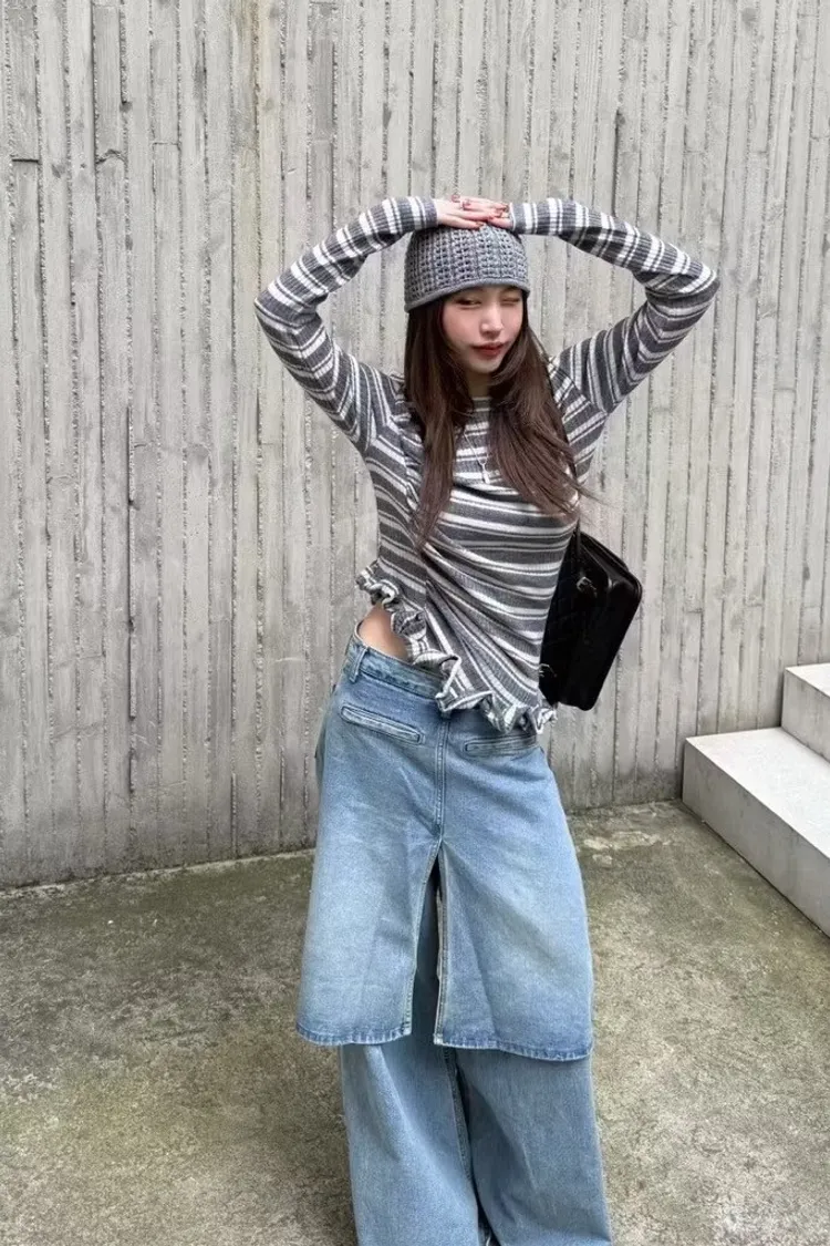 設計斜下擺木耳邊上衣