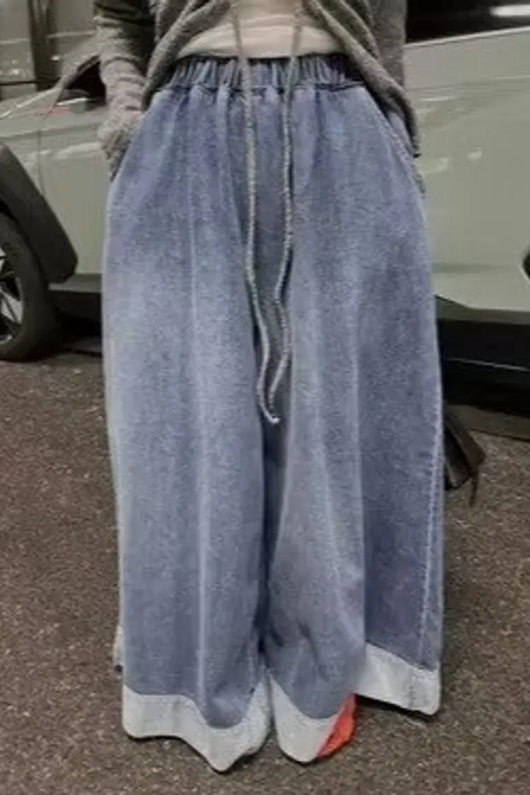 隨性拼接大寬褲