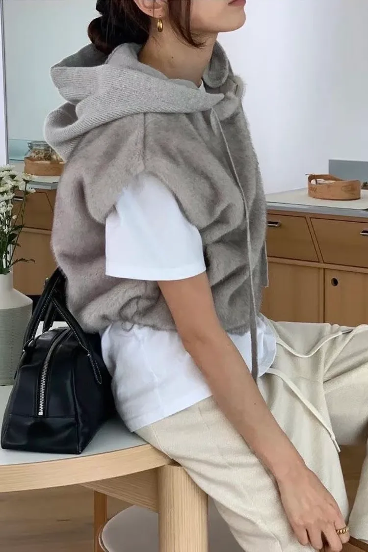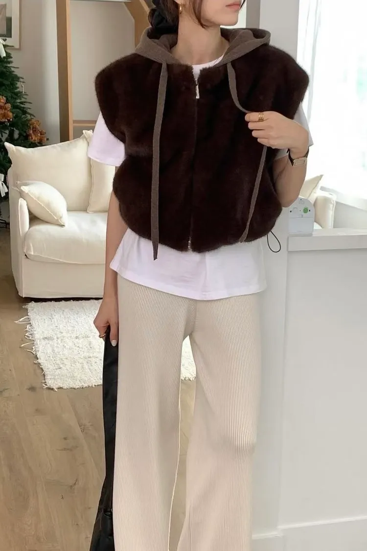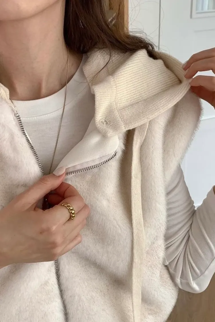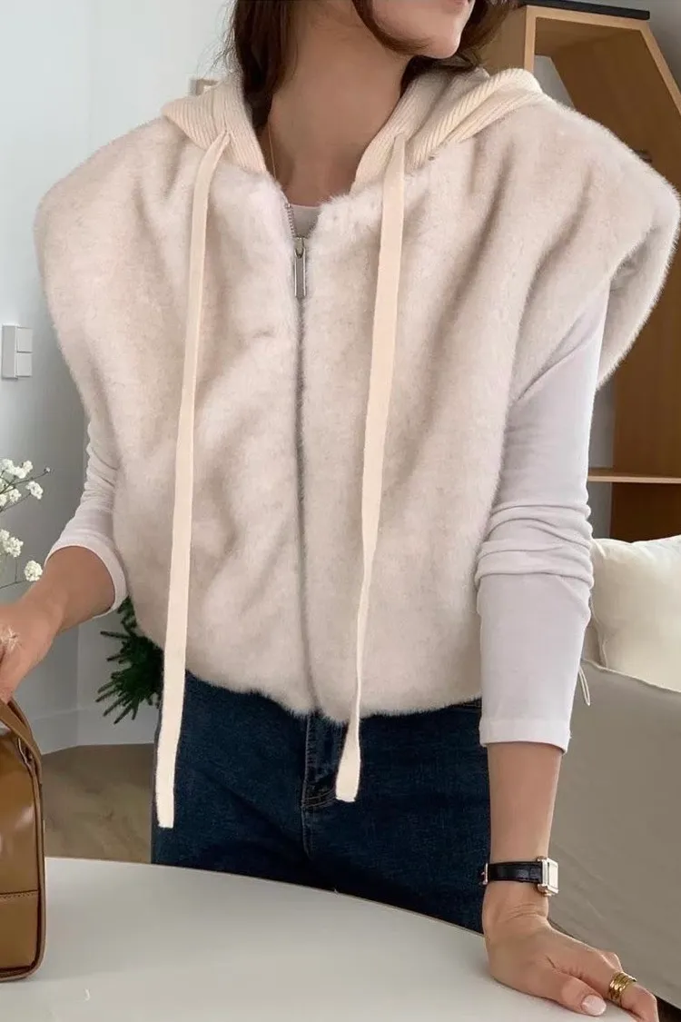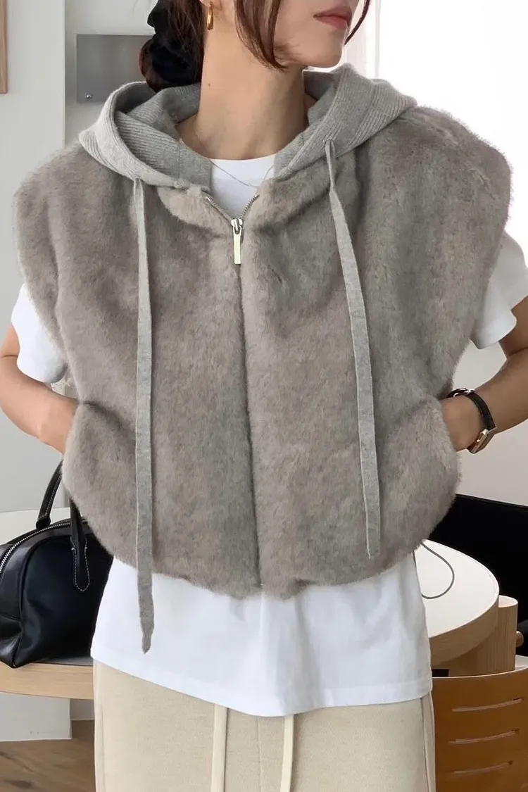 質感連帽短版毛毛背心