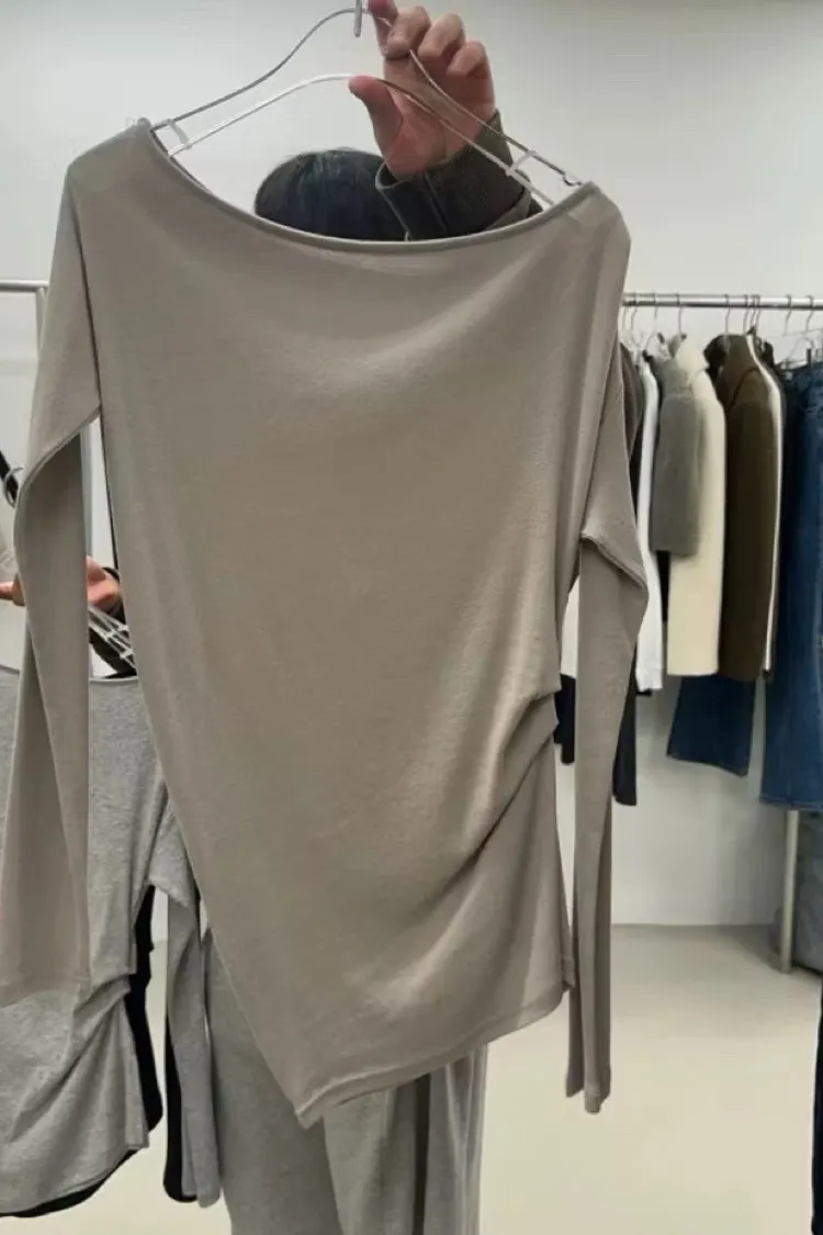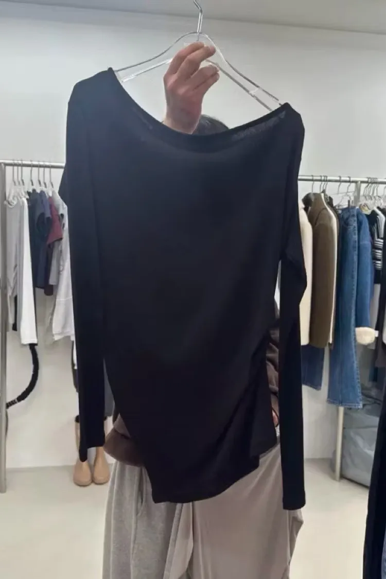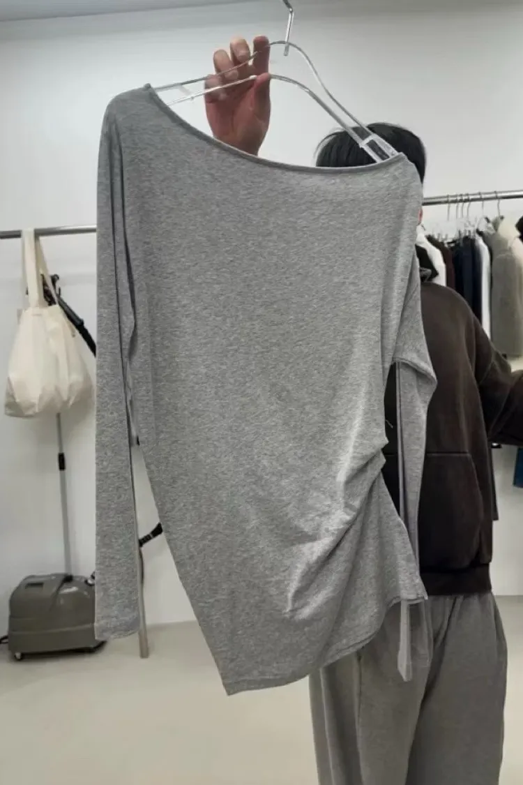 隨性側抓皺長袖上衣