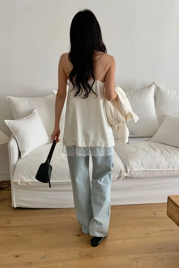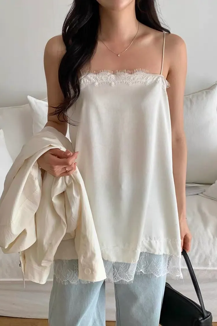 優雅平口中長款蕾絲背心