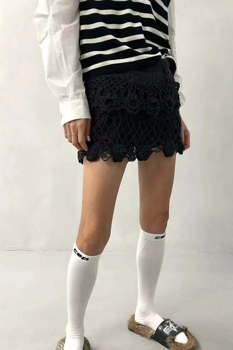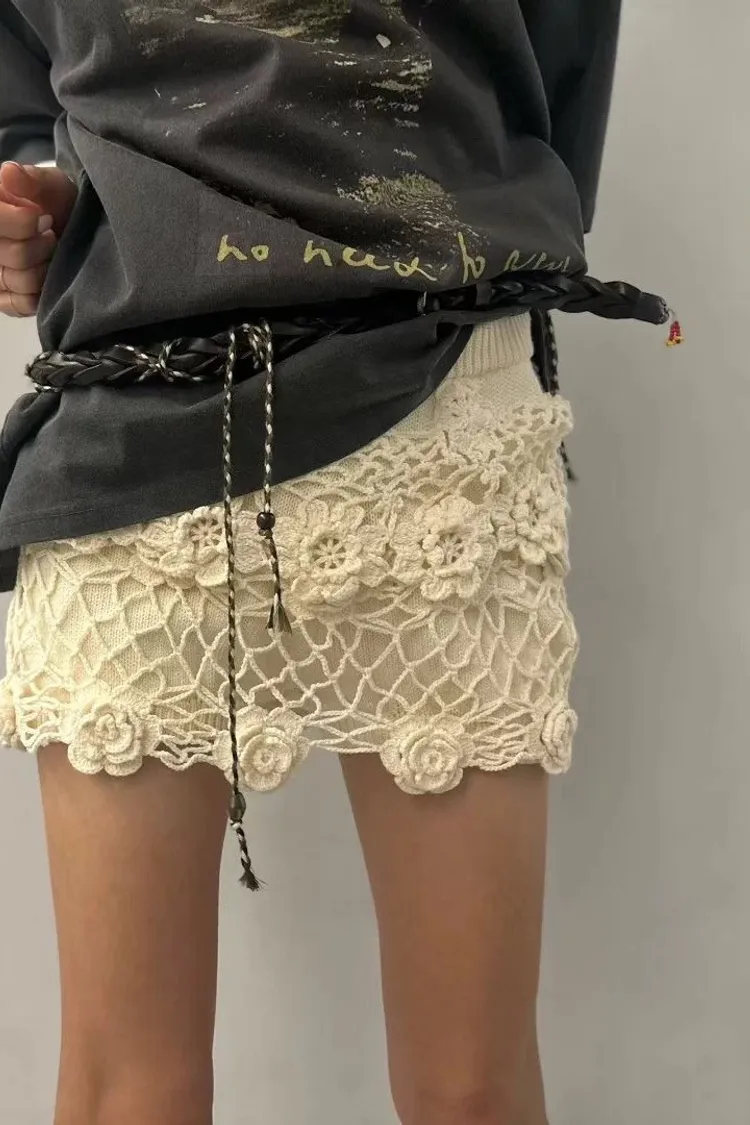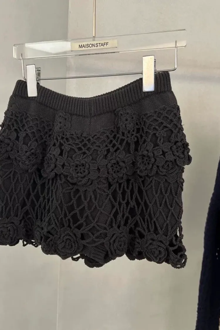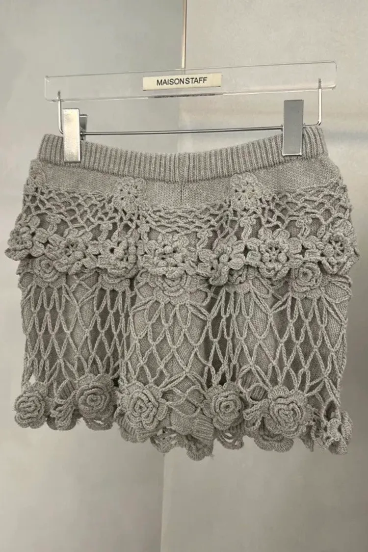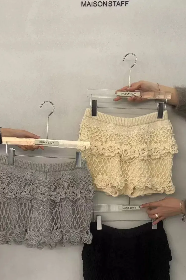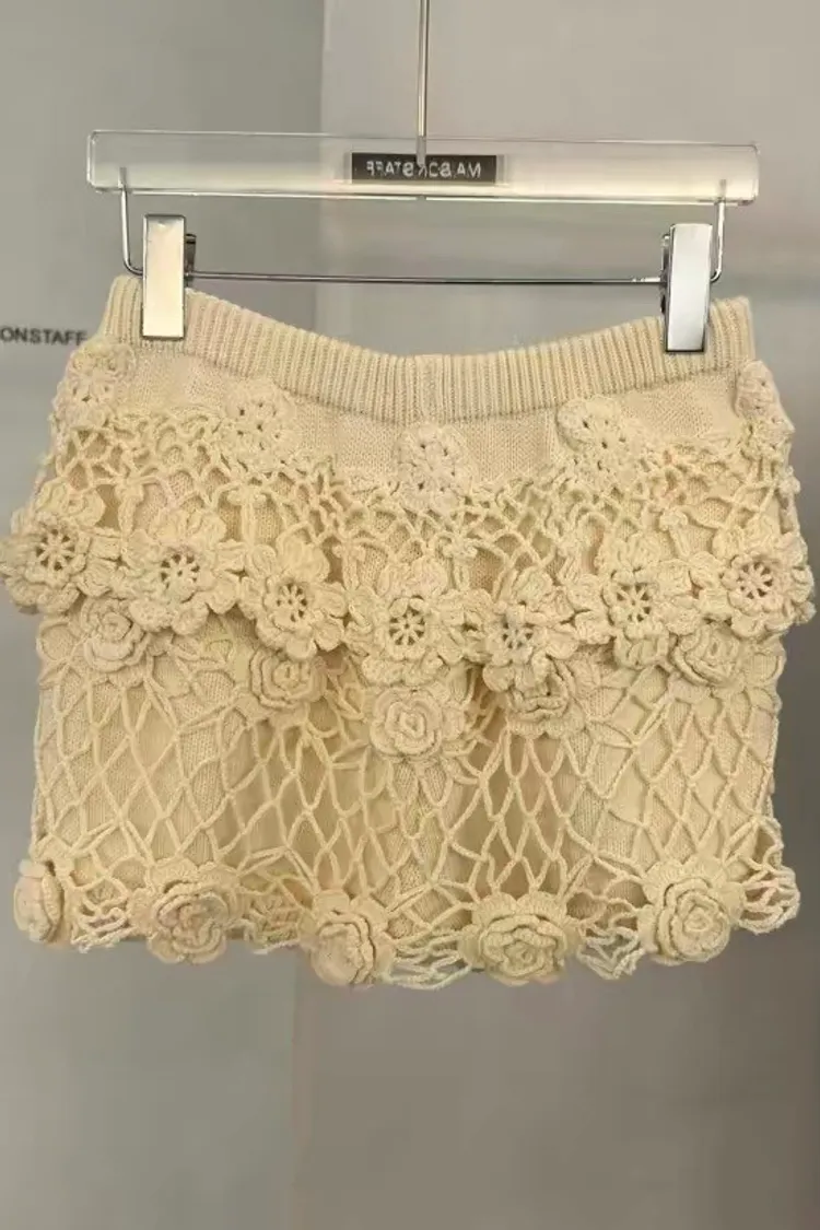 立體鉤花針織短褲裙
