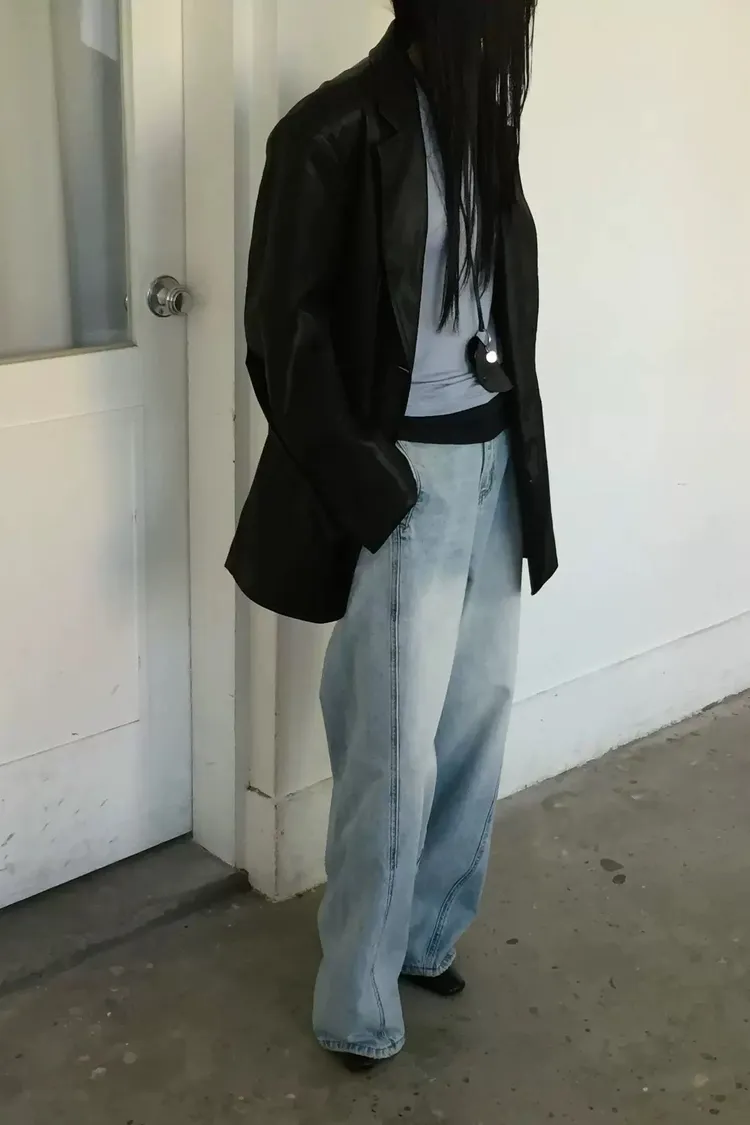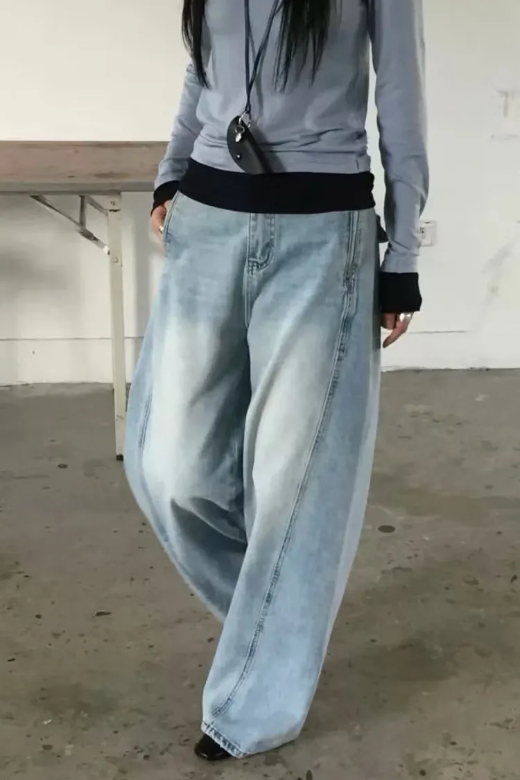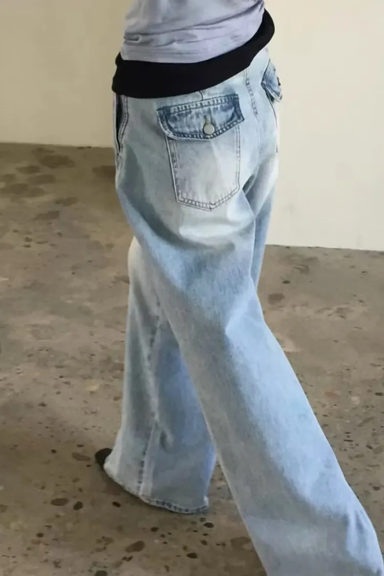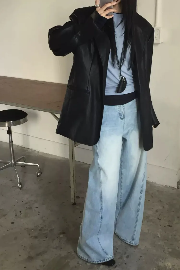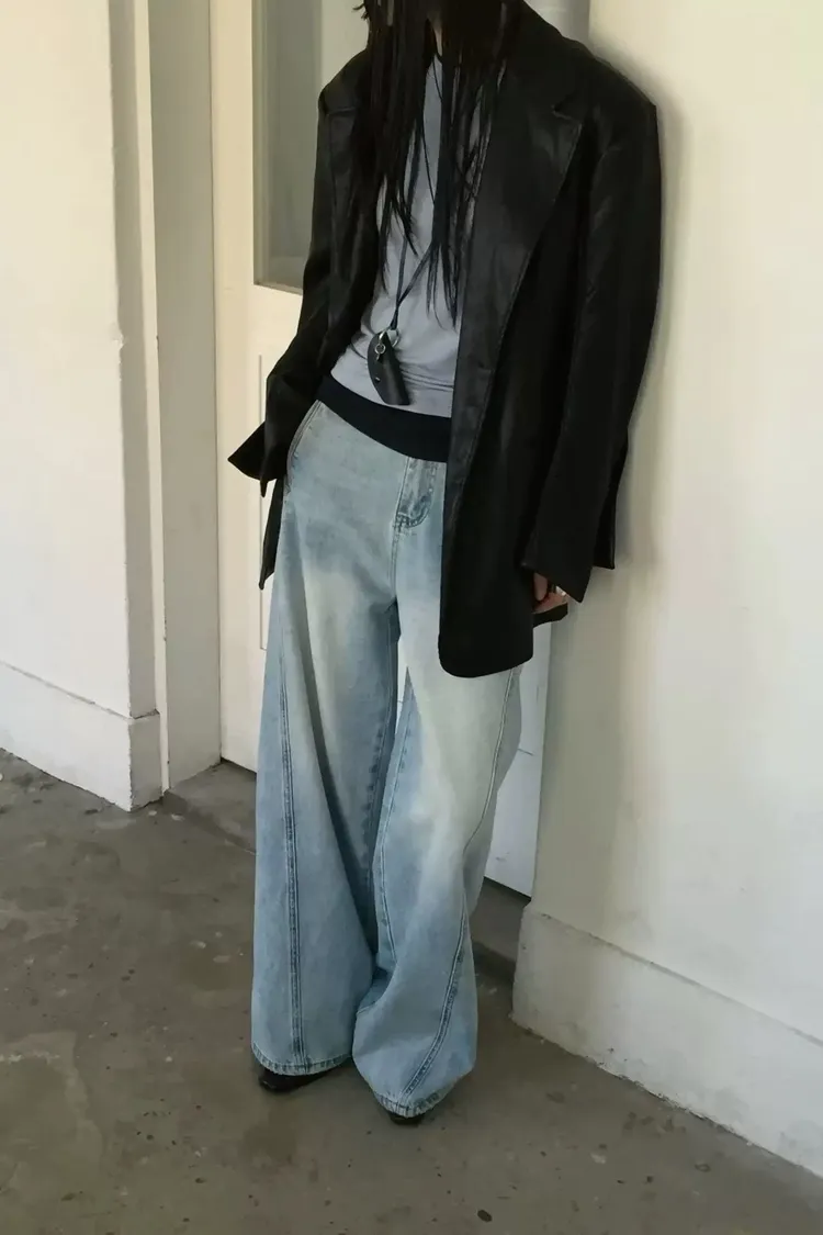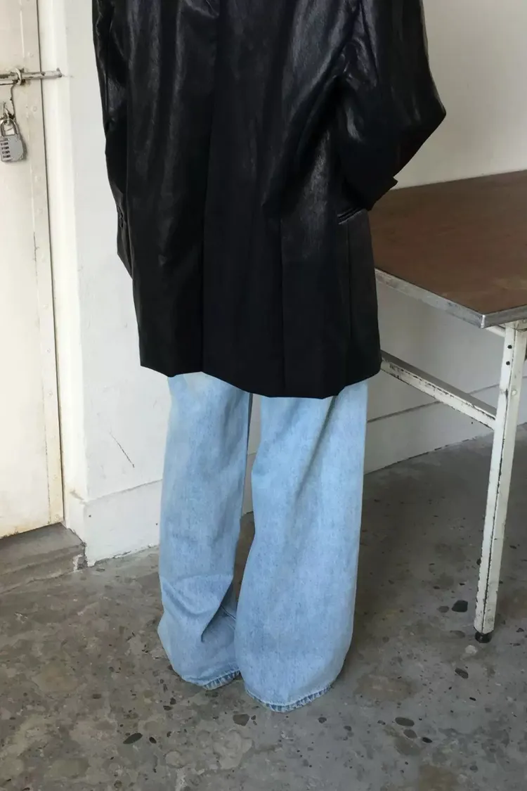 日常斜車線牛仔寬褲