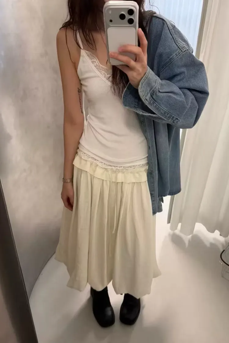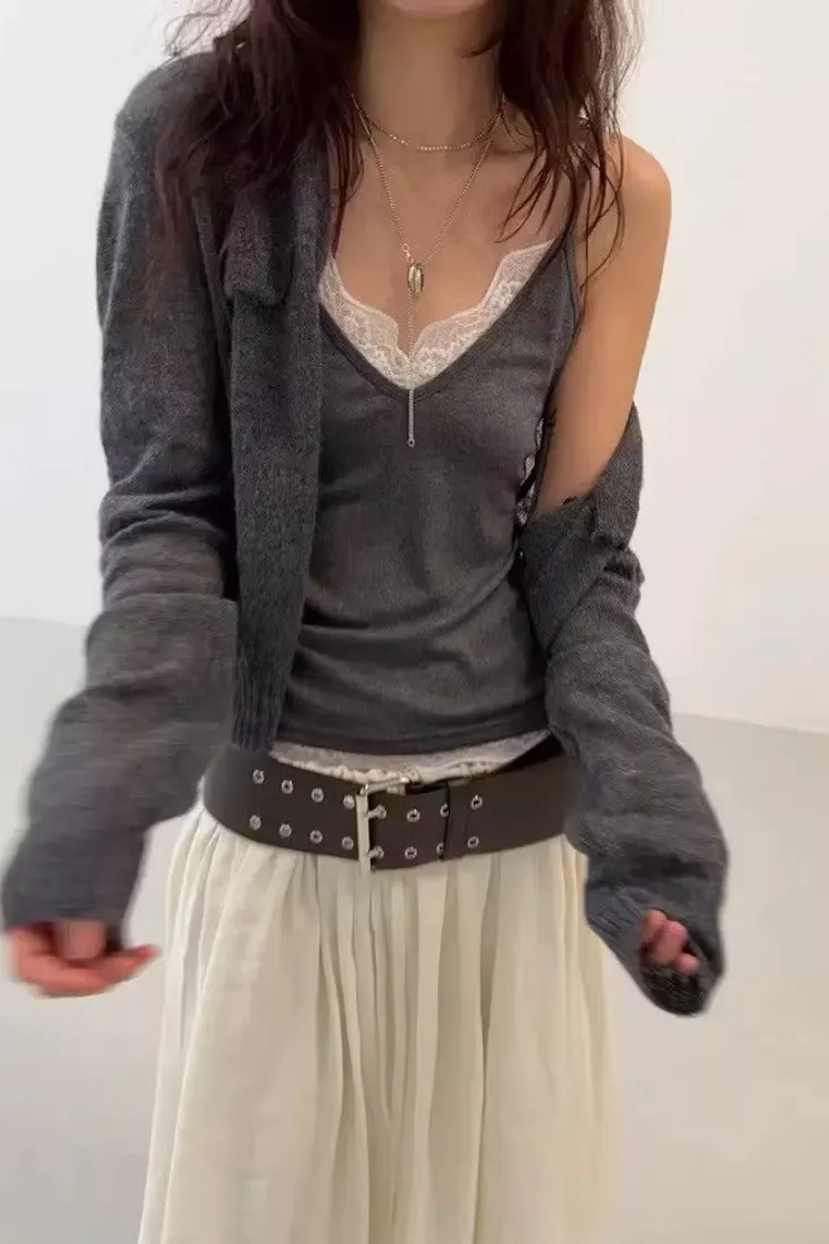 彈性大V領蕾絲背心