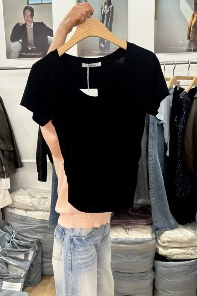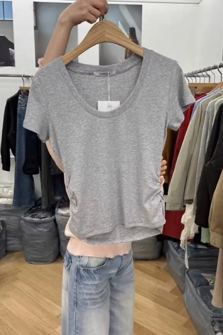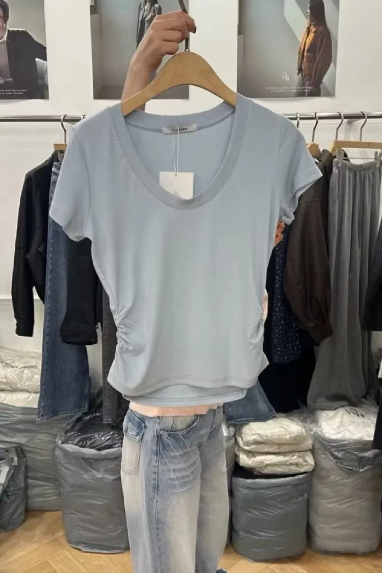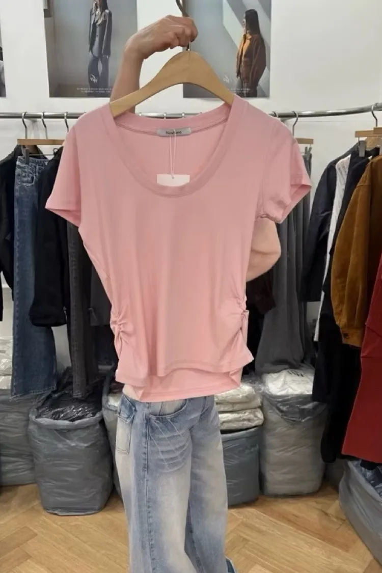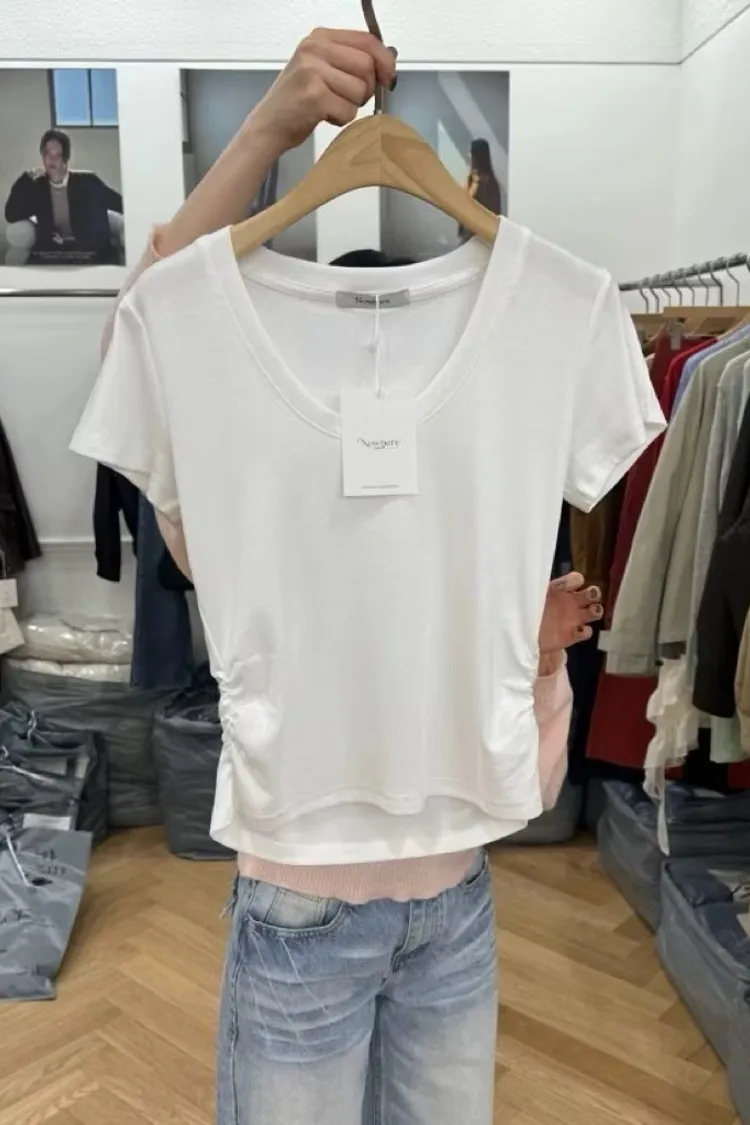 夏日側抓皺短T