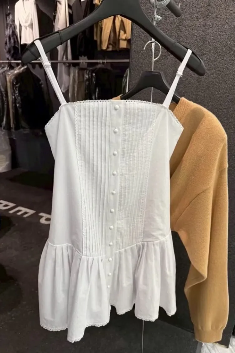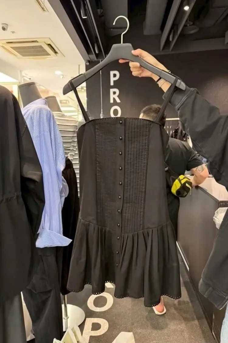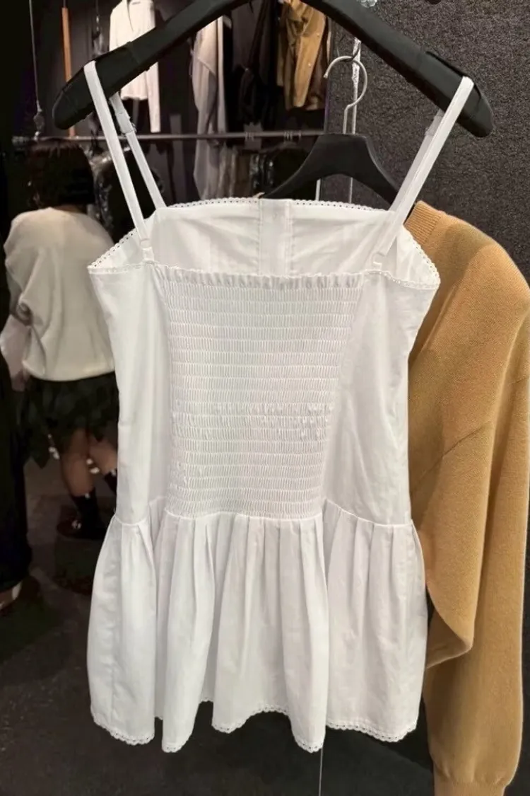 小公主細肩打褶短洋裝