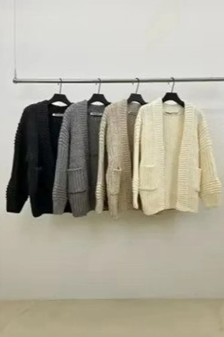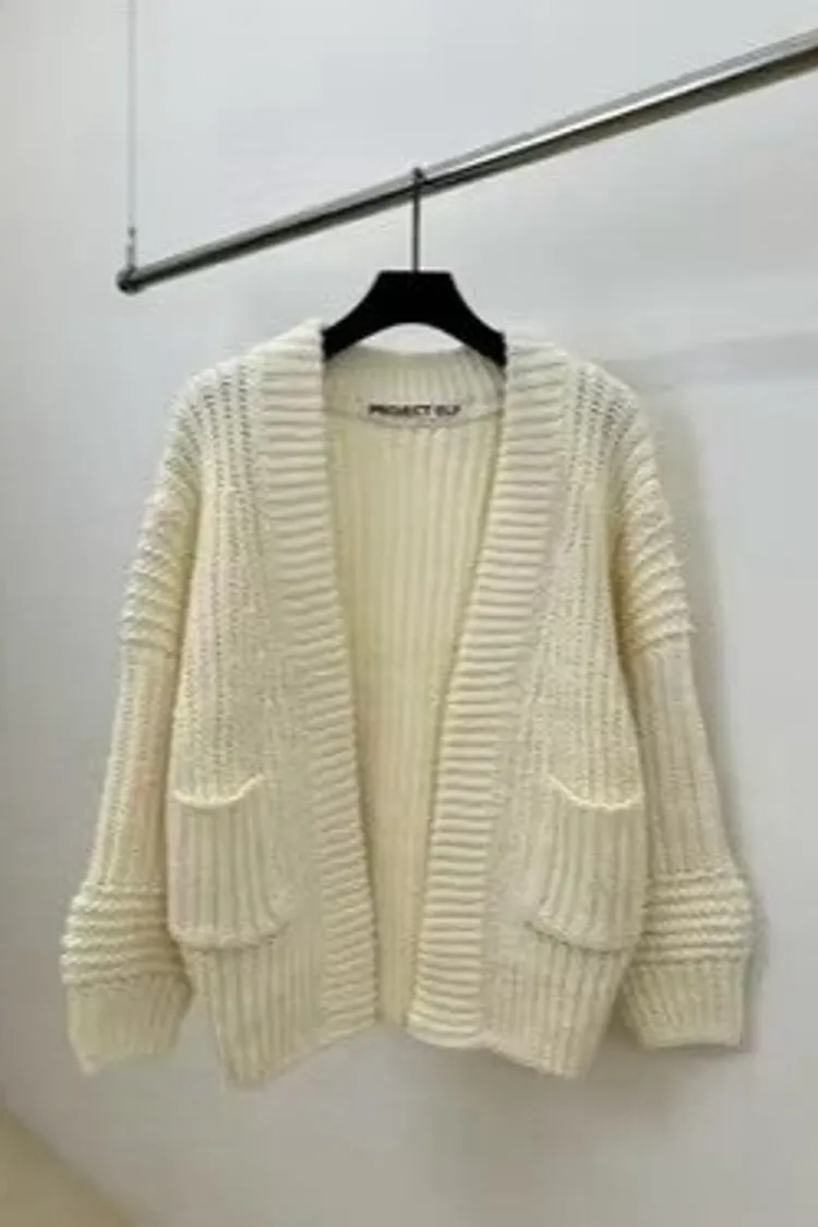 粗針織雙口袋外罩衫