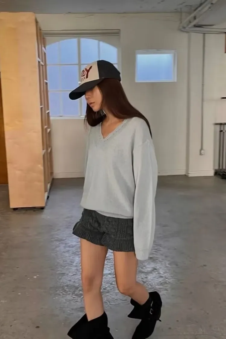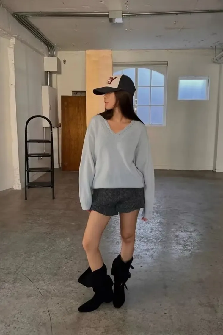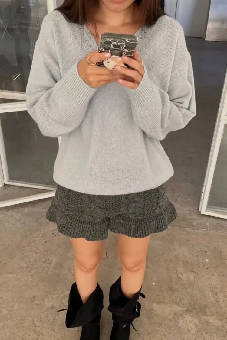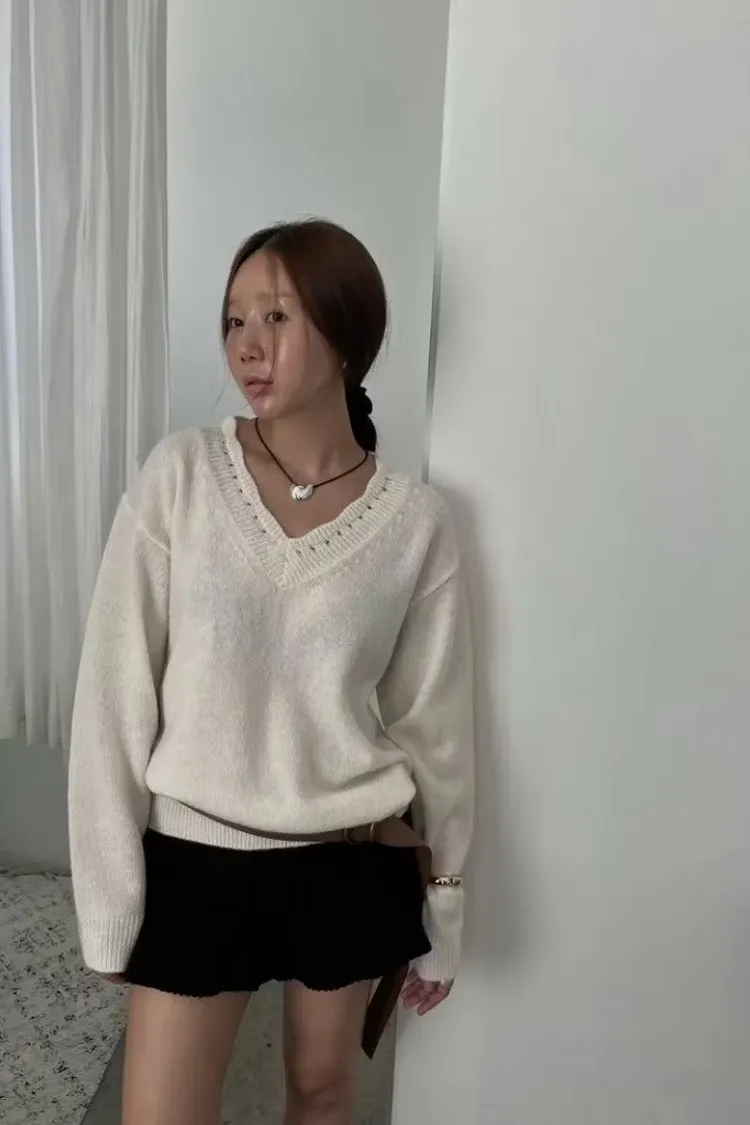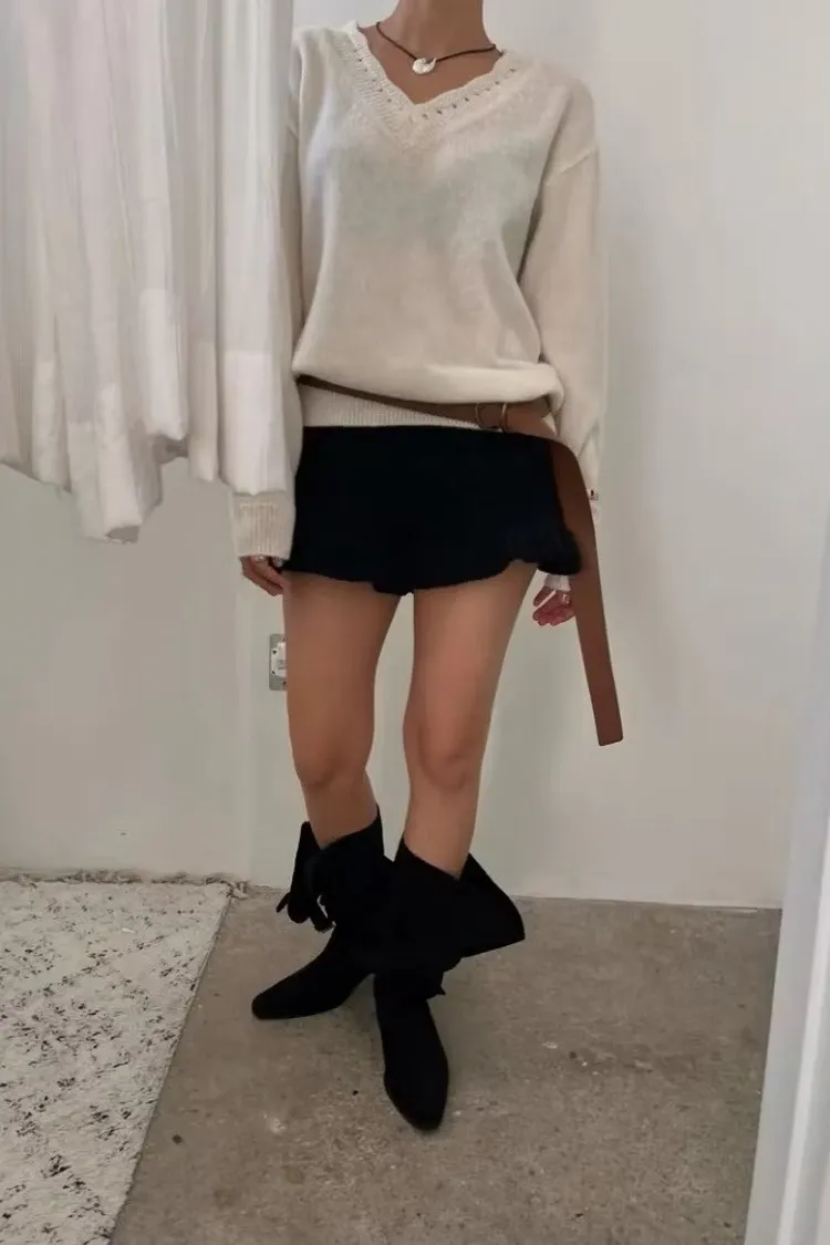 別緻花邊V領毛衣