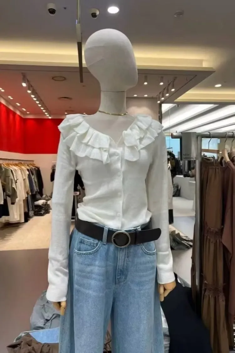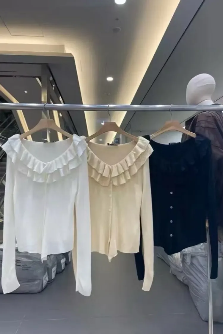 優雅雙層花邊領上衣