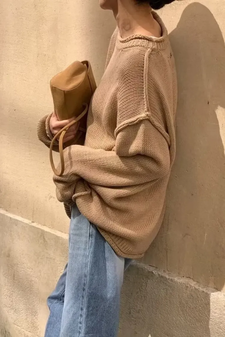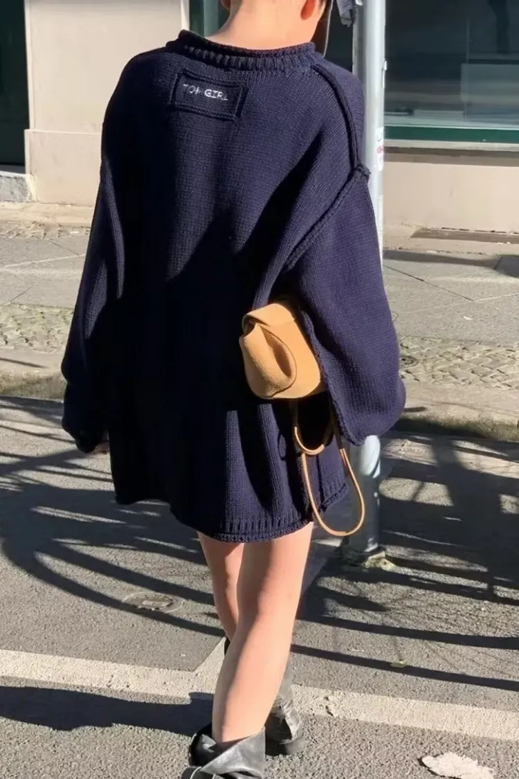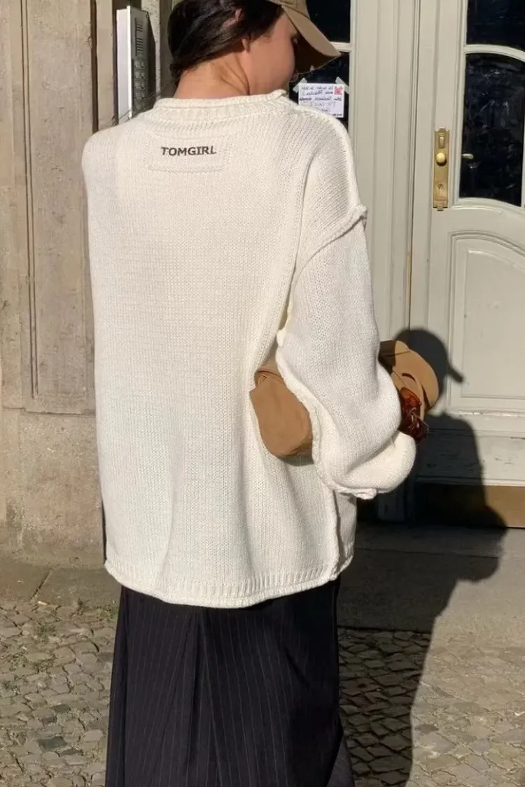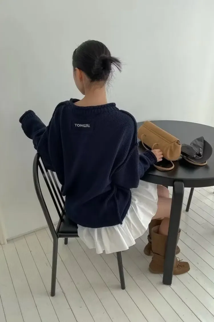 品牌感小標落肩毛衣