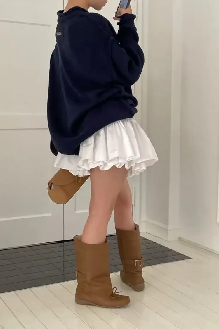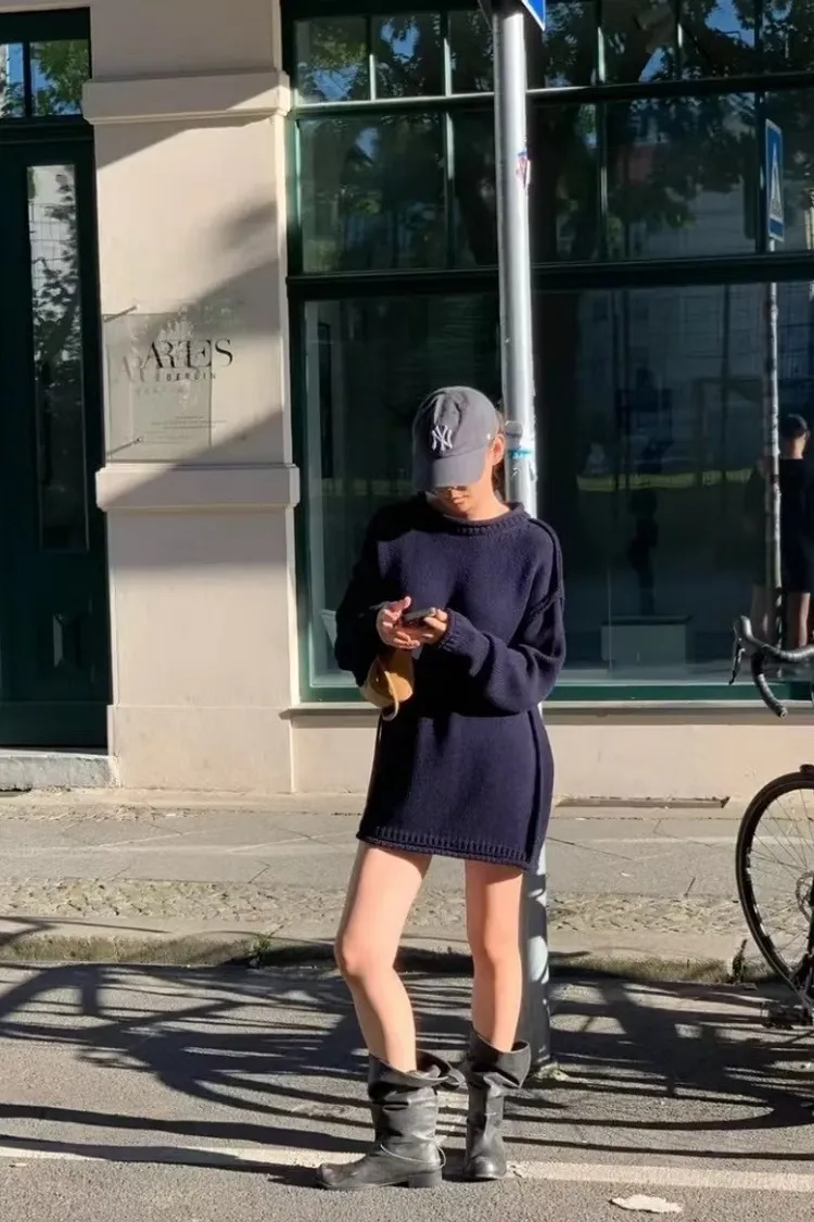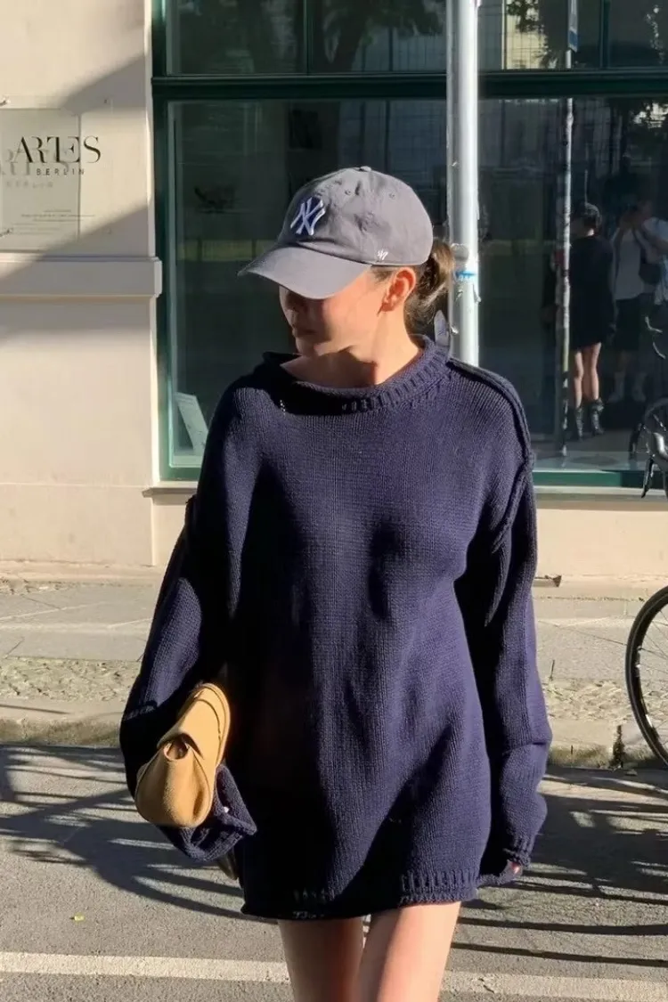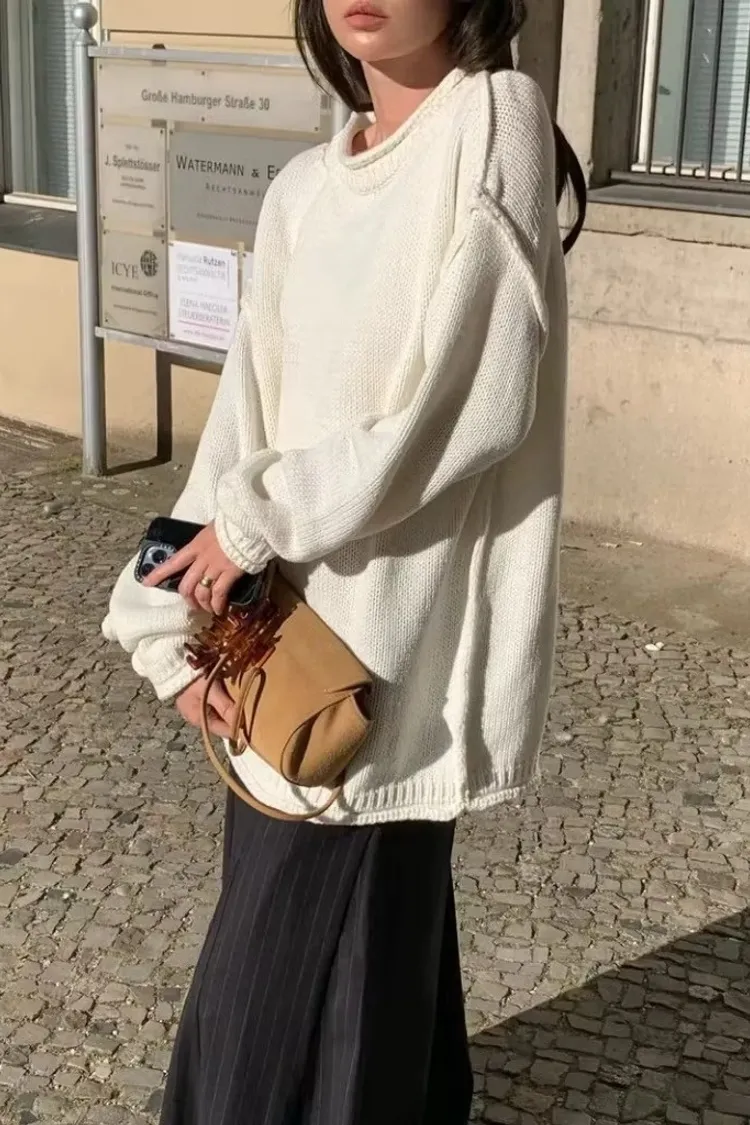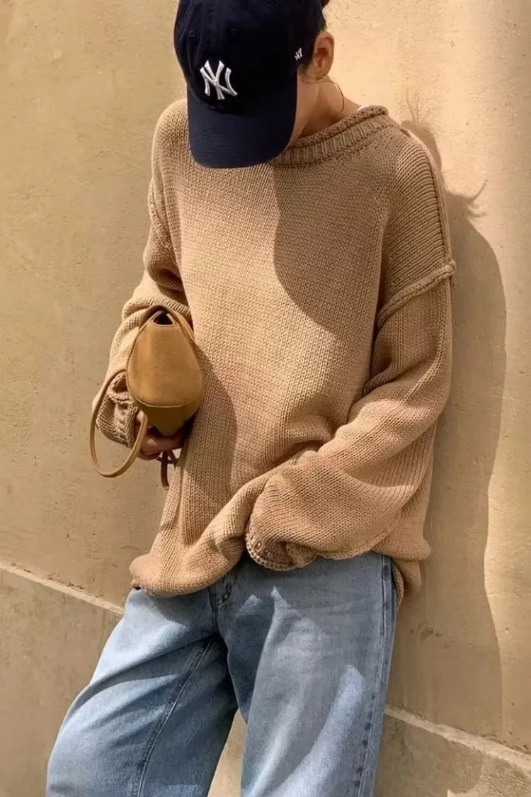 品牌感小標落肩毛衣