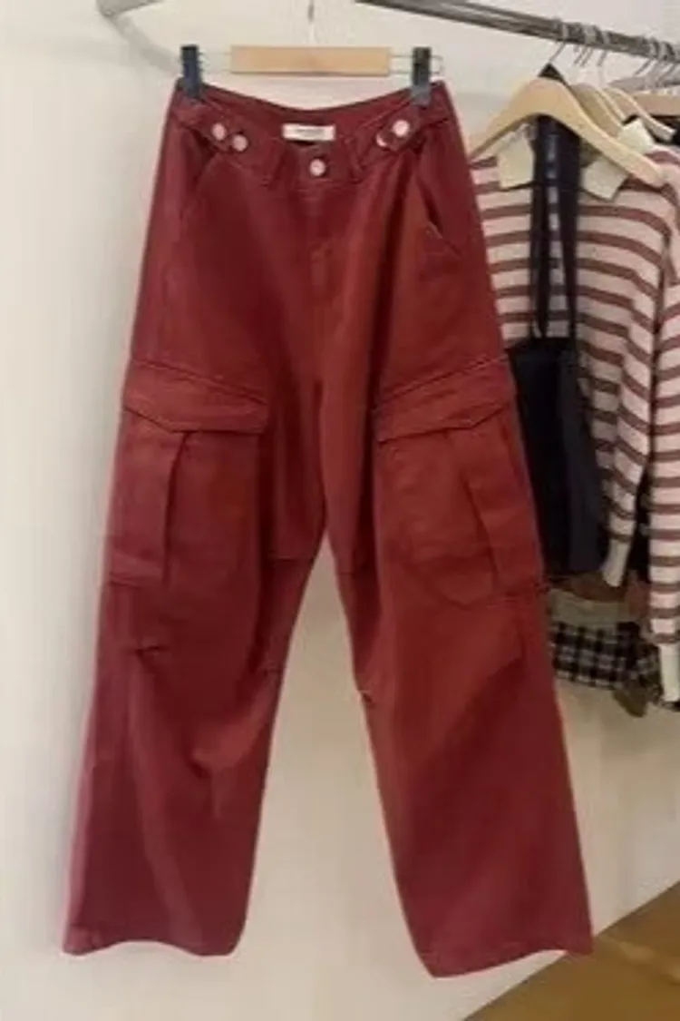 時髦復古風大紅寬褲