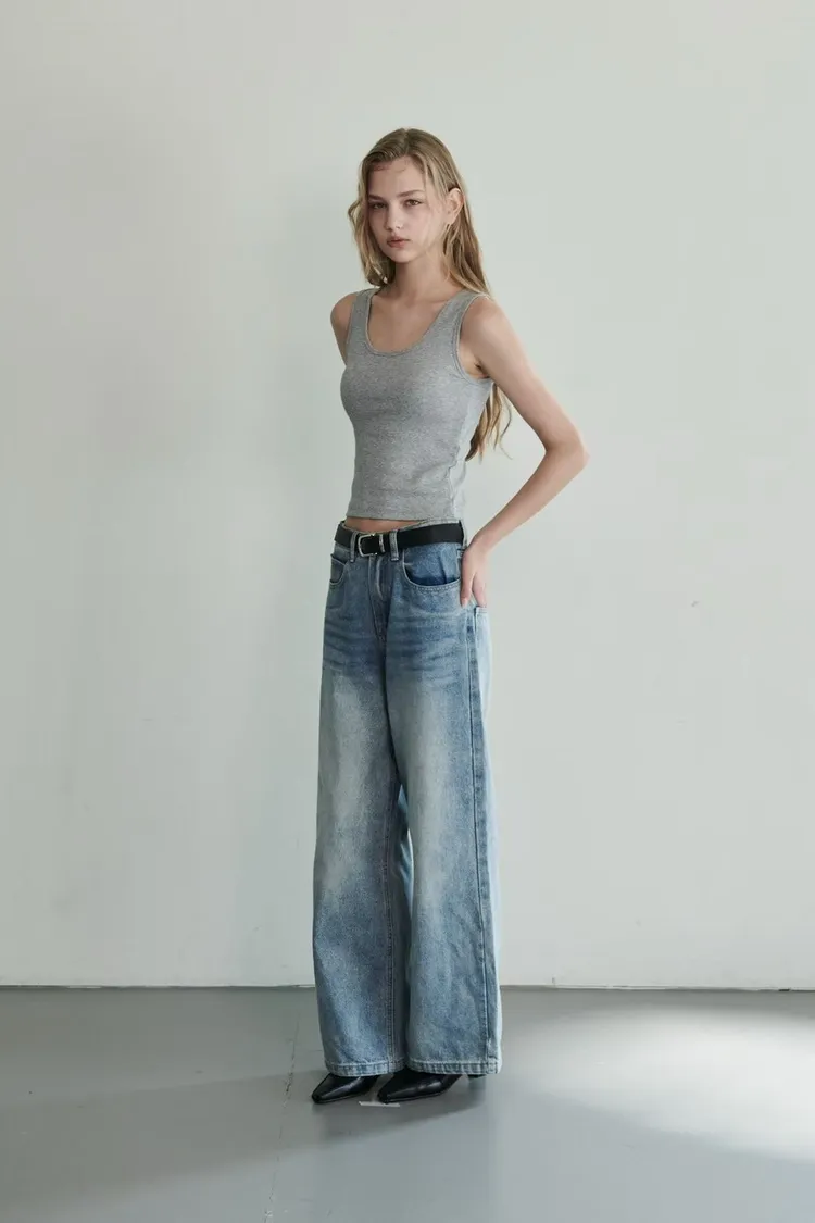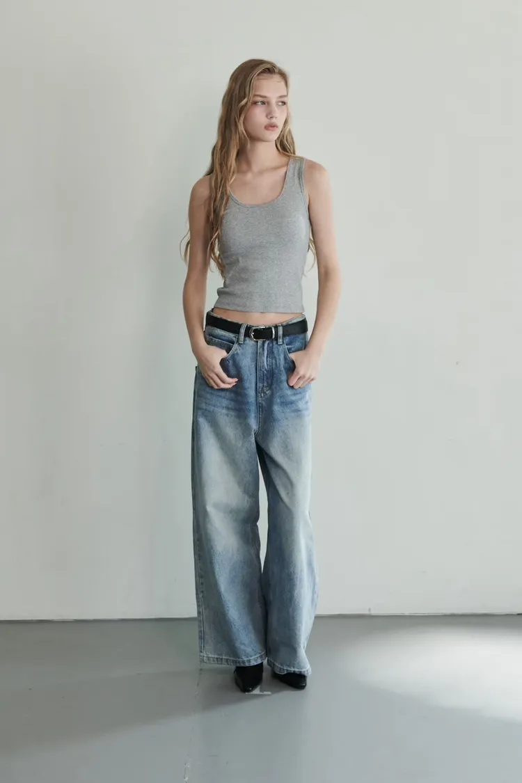 日常必備淺牛仔直筒寬褲