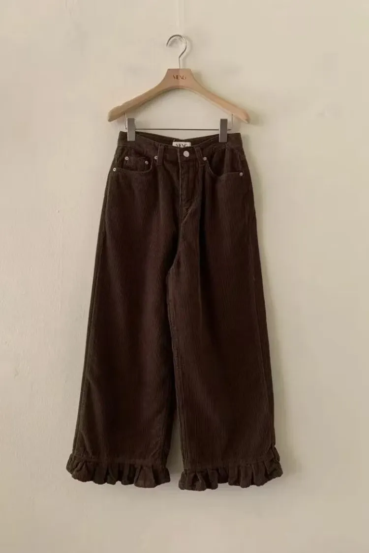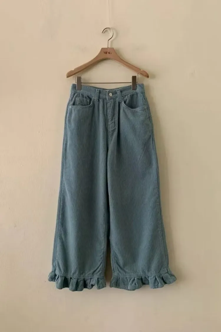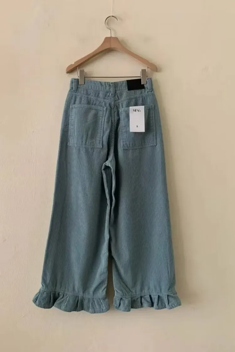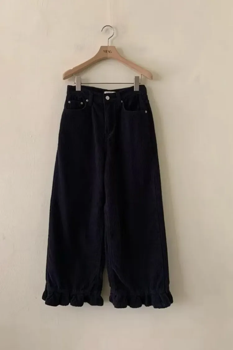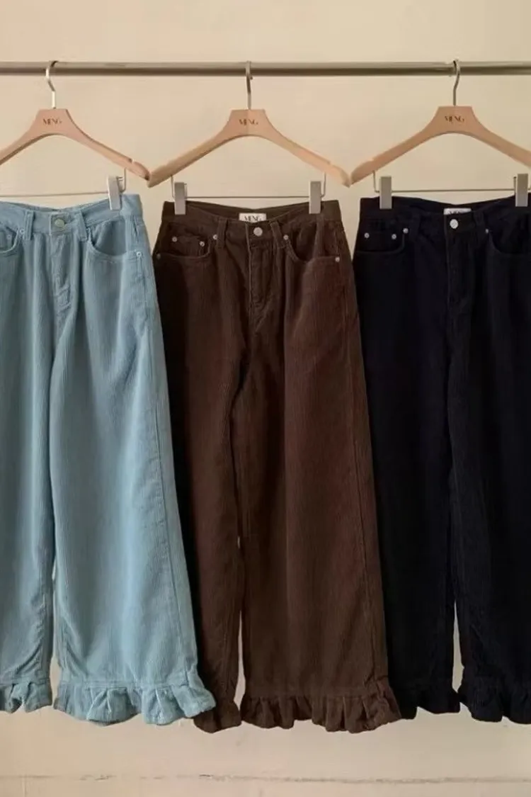 俏皮荷葉燈芯絨直筒褲