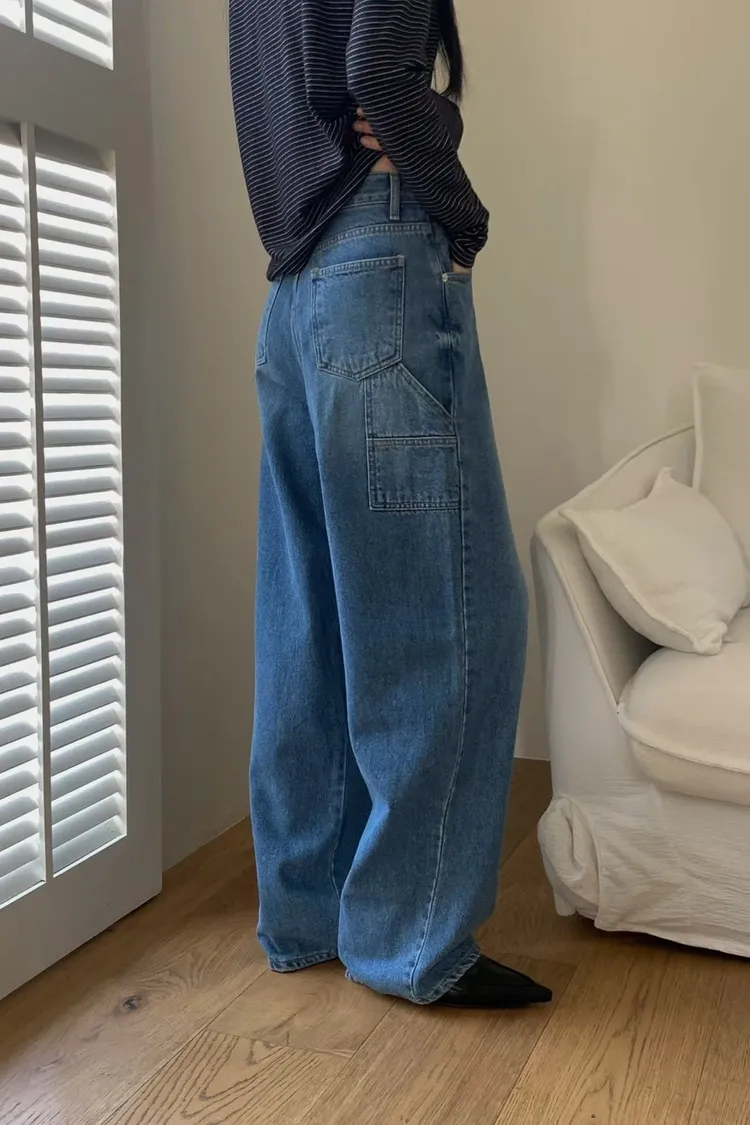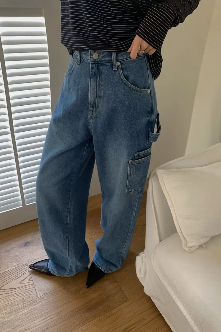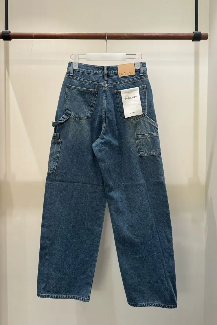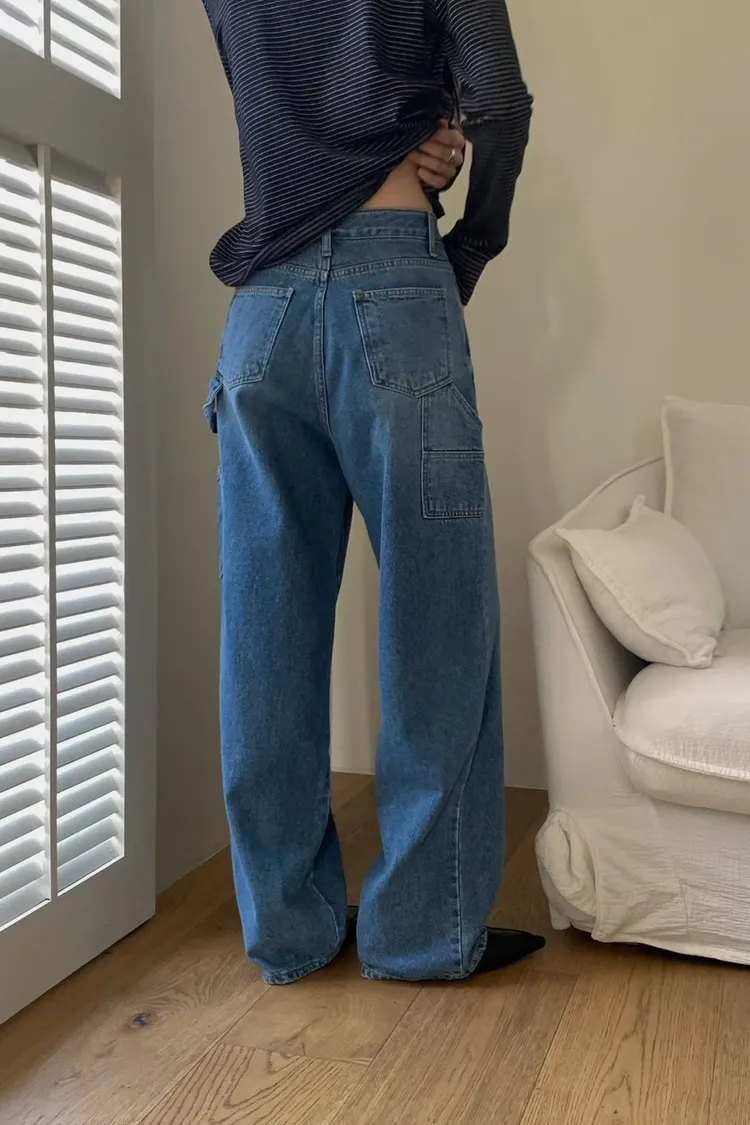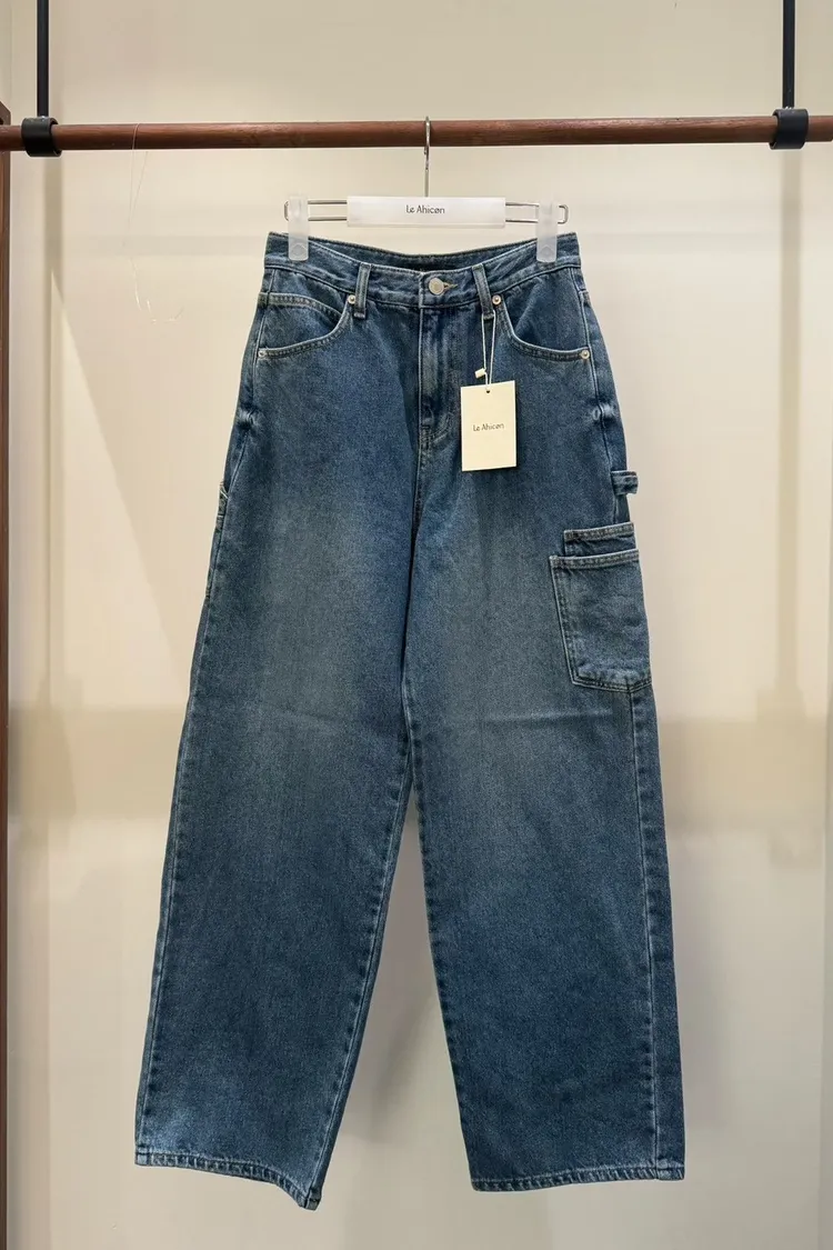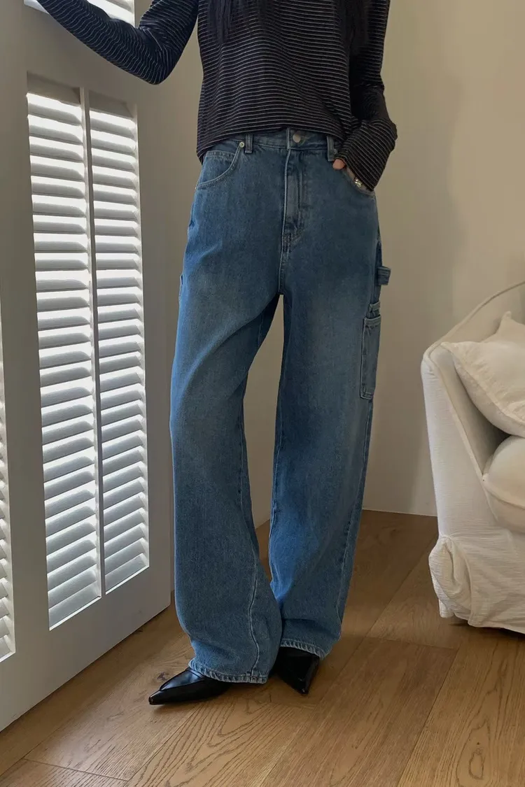 側口袋造型牛仔直筒褲