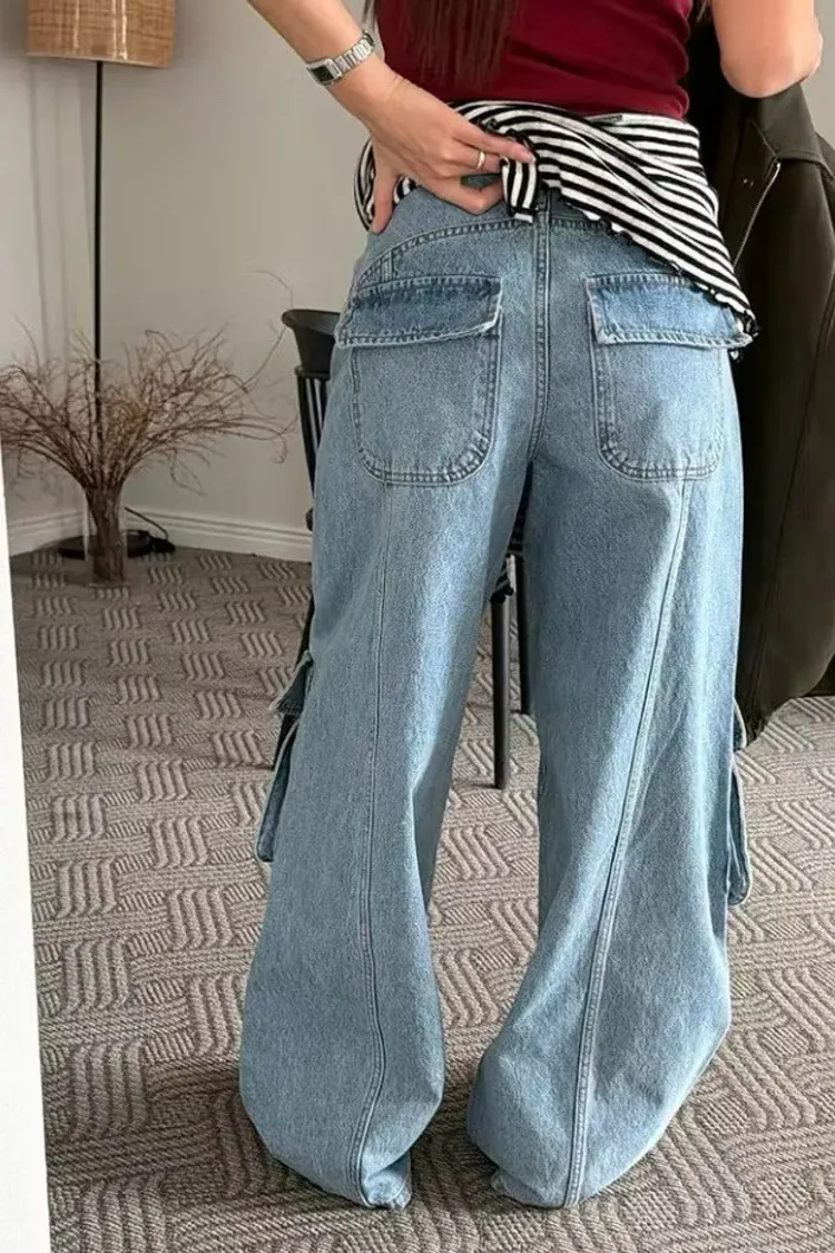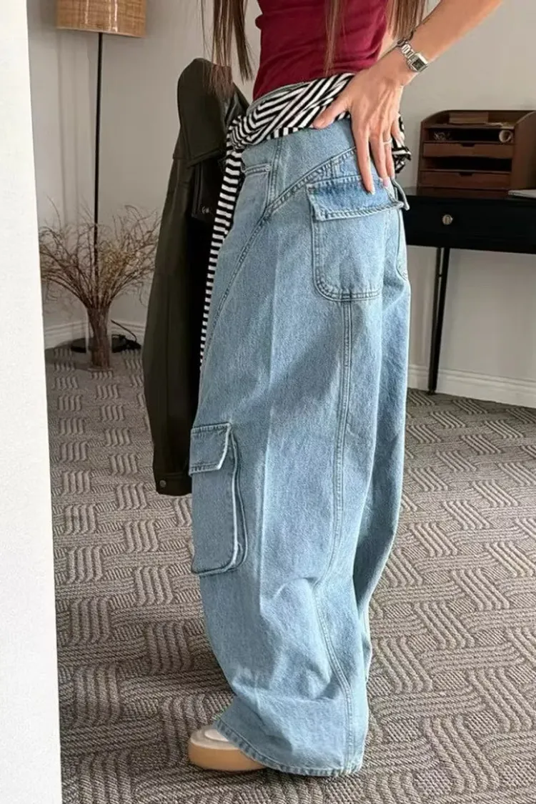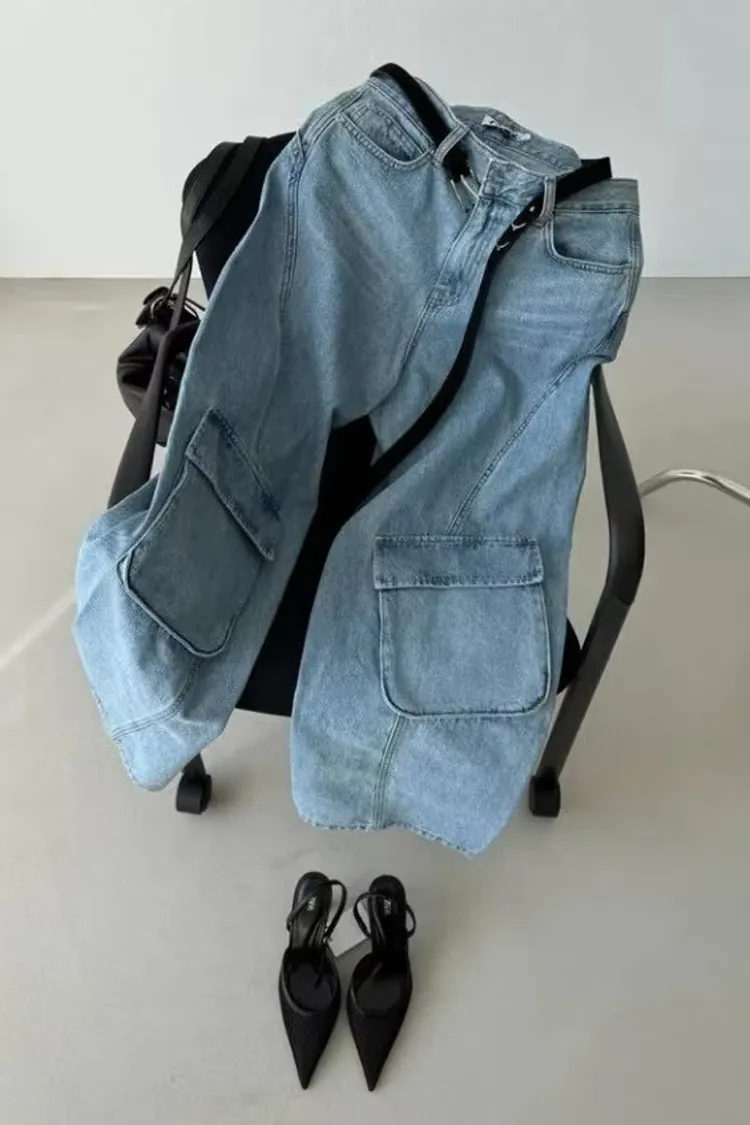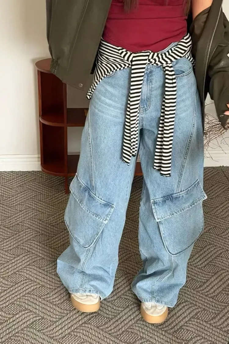 時尚大口袋寬褲