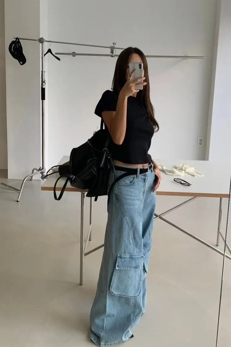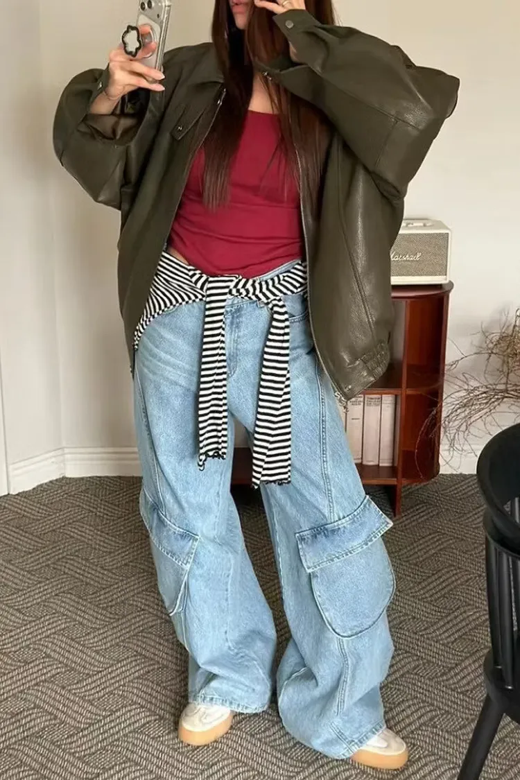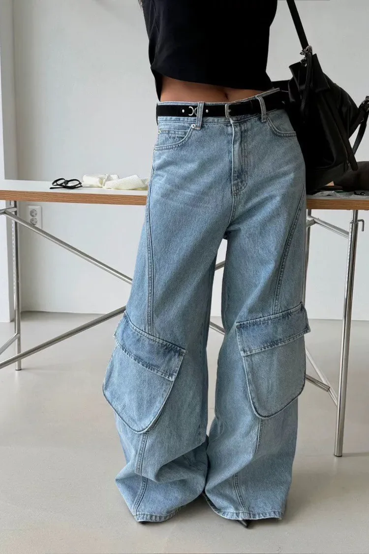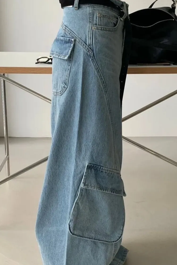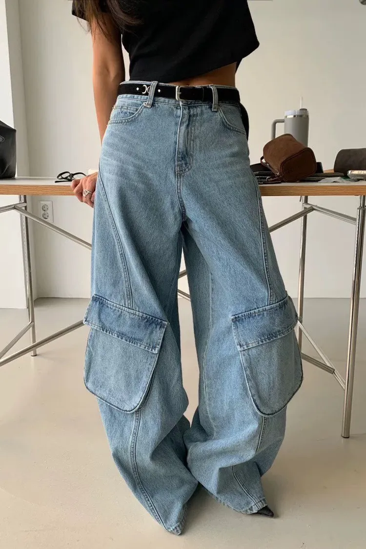 時尚大口袋寬褲