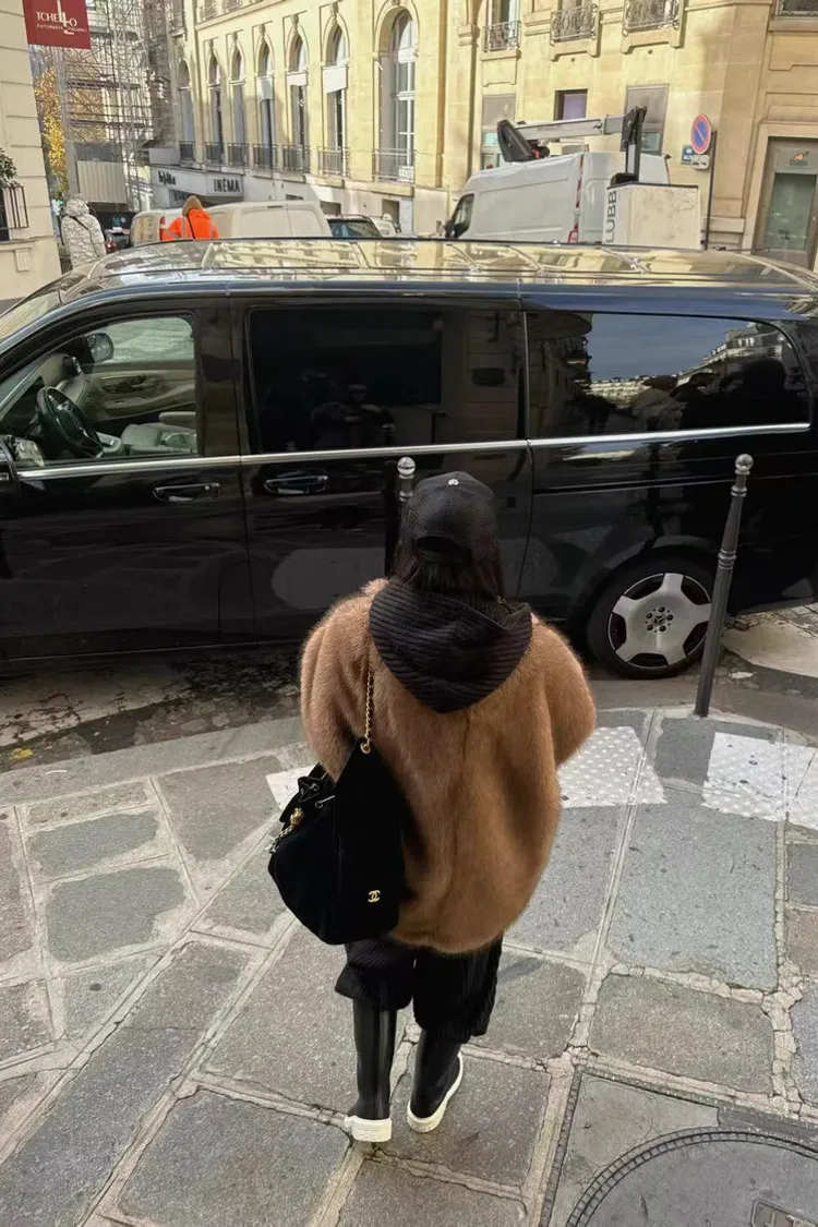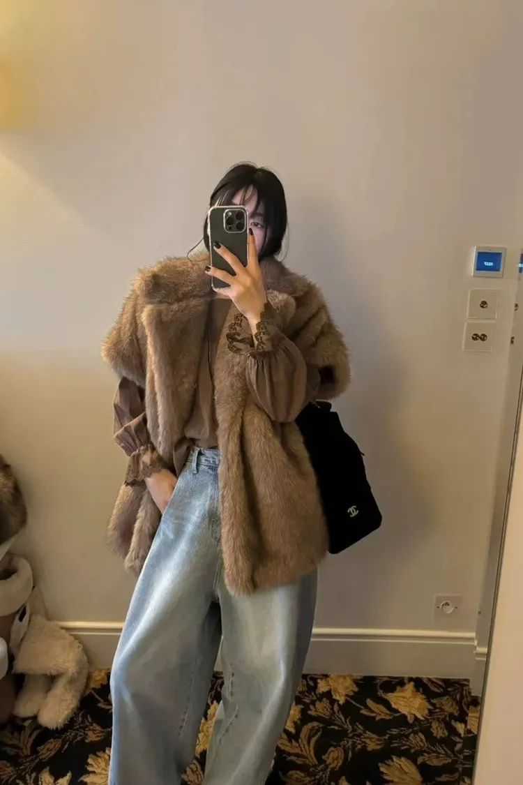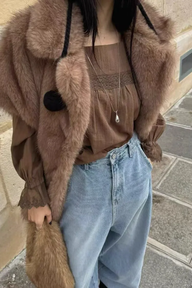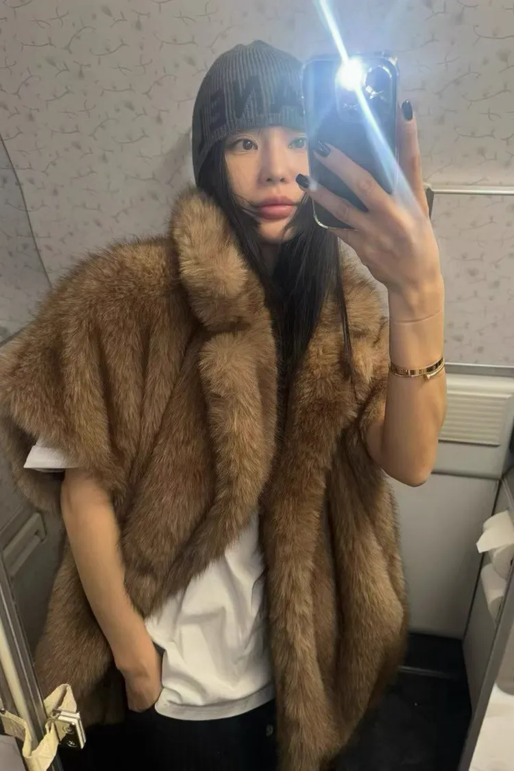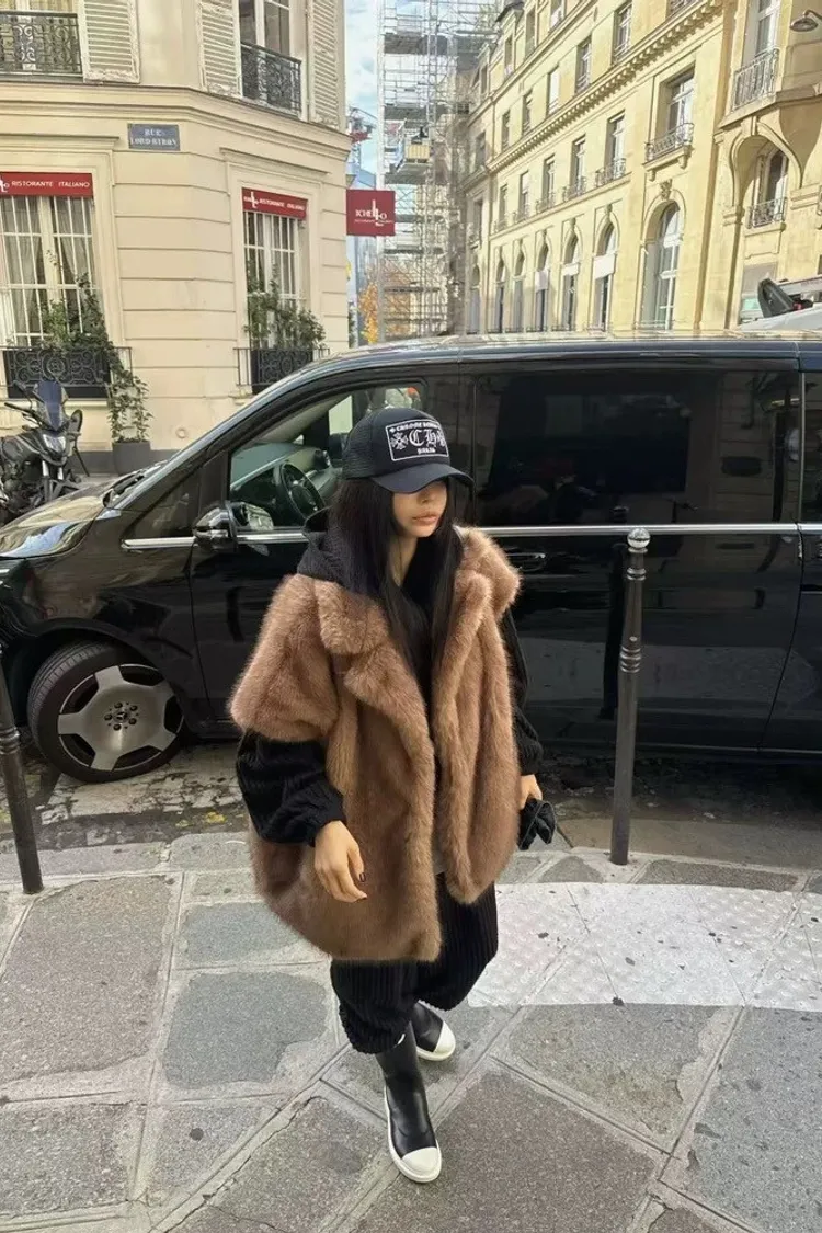 高級落肩翻領毛毛背心