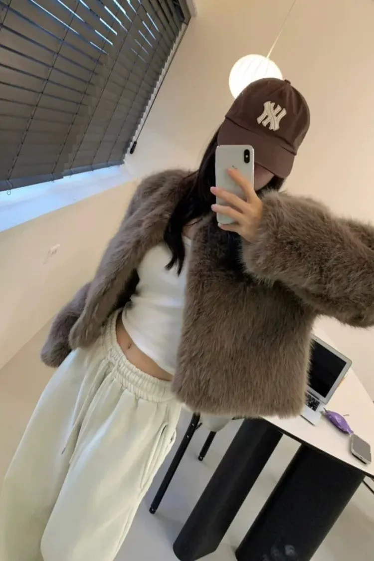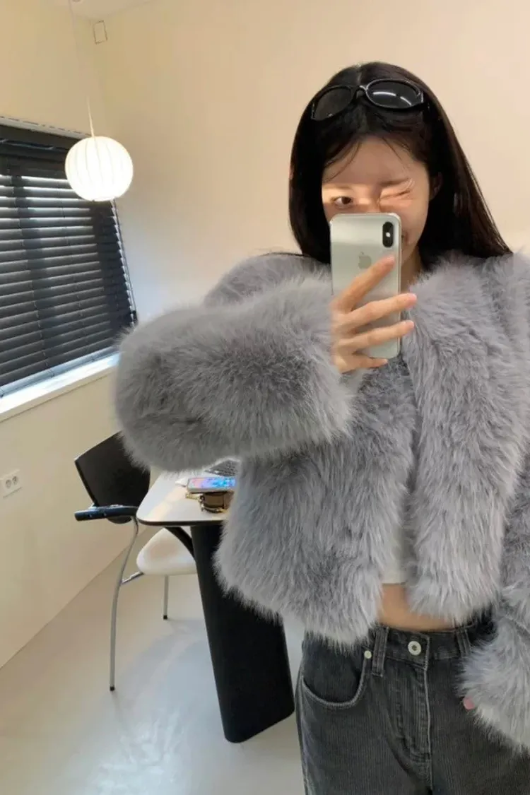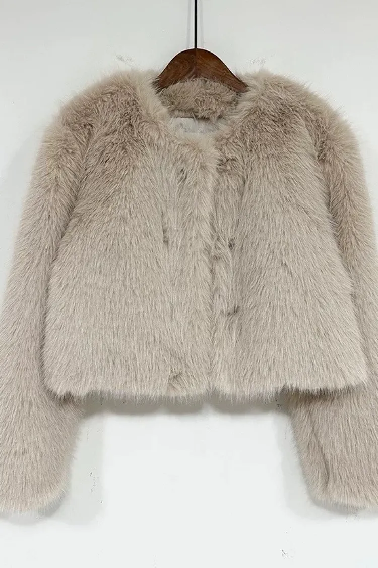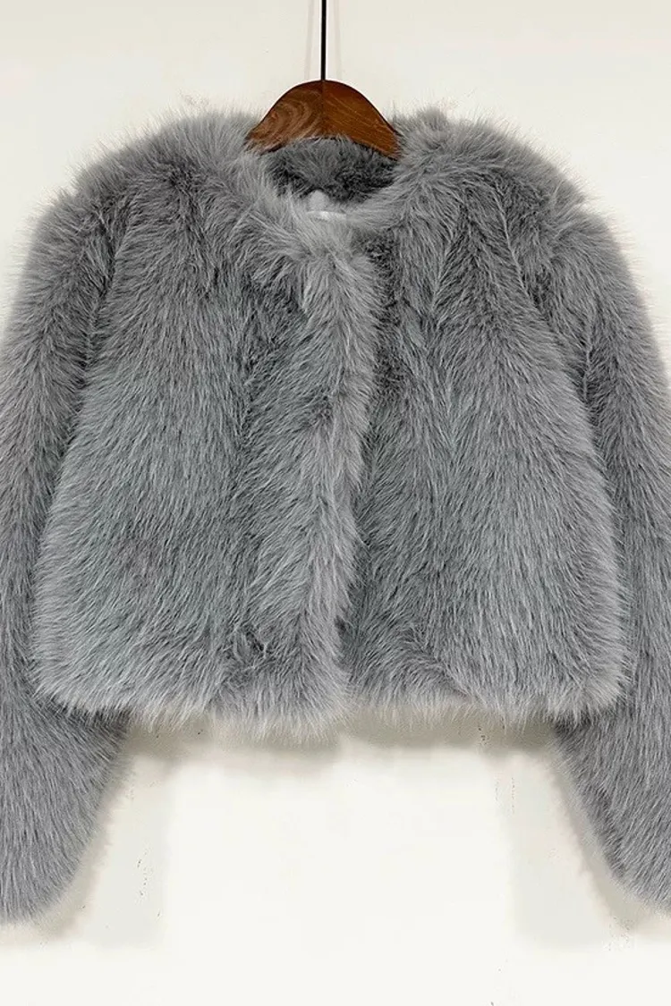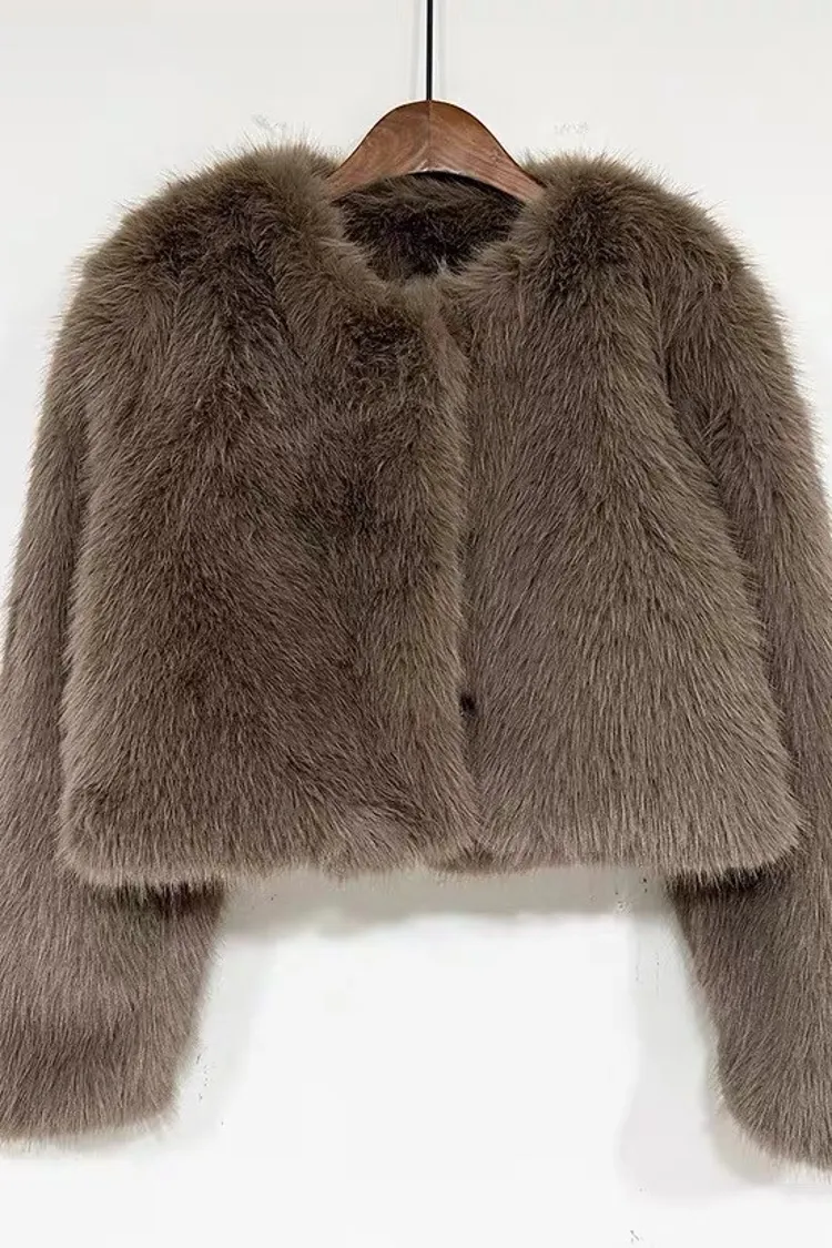 優雅毛毛短版外套