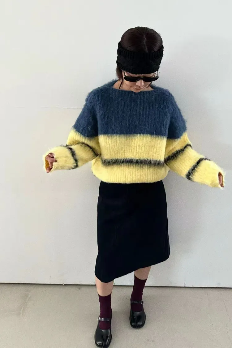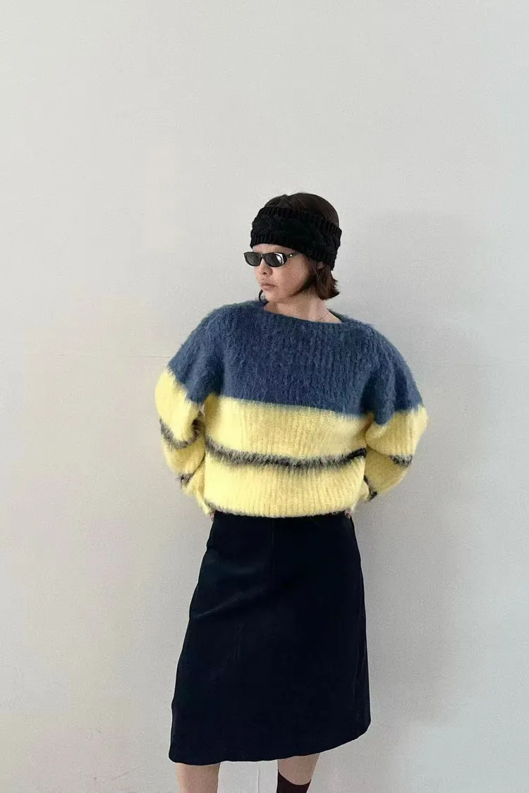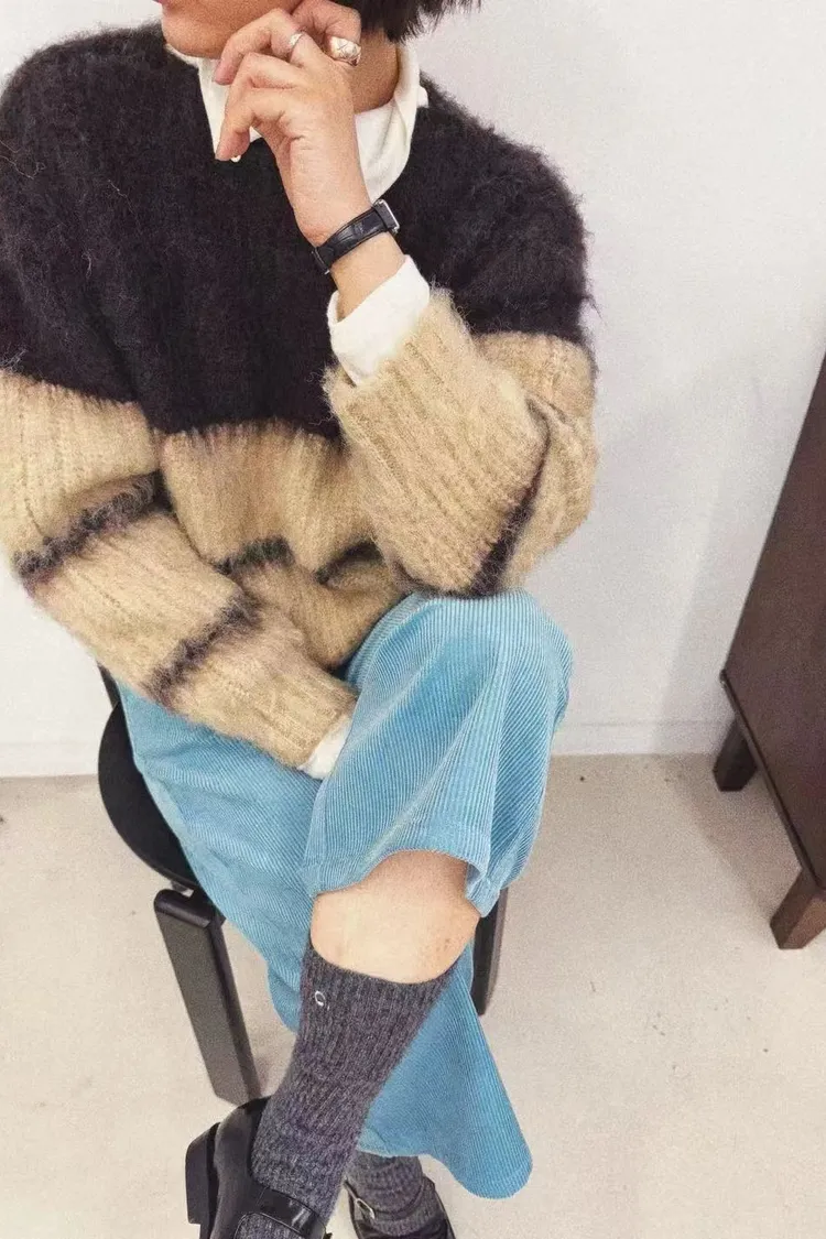 隨性撞色拼接毛衣