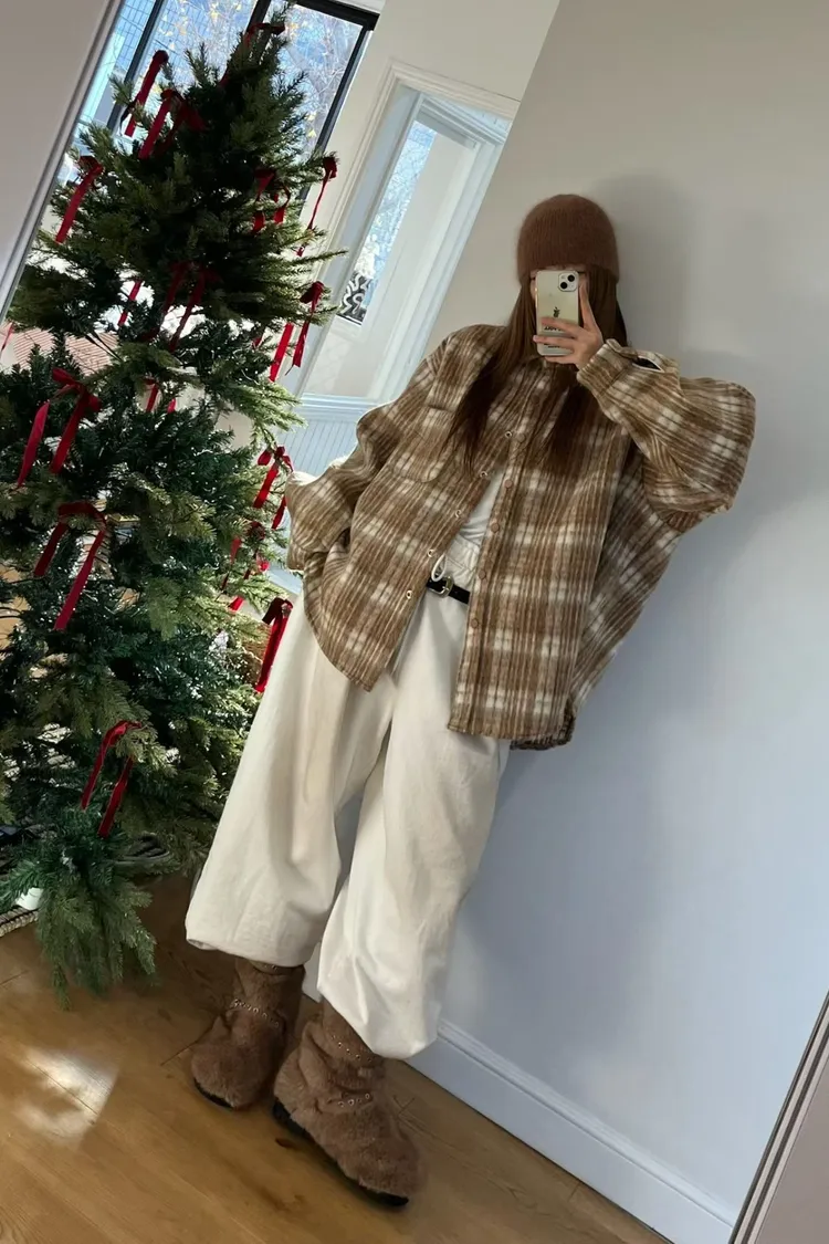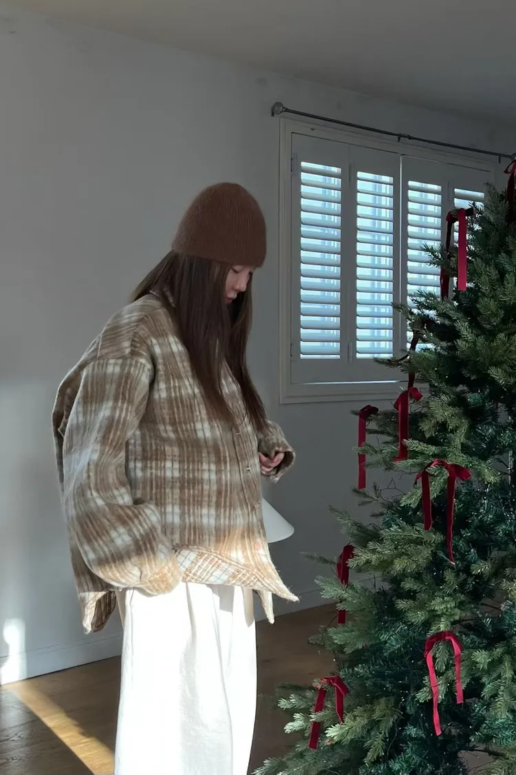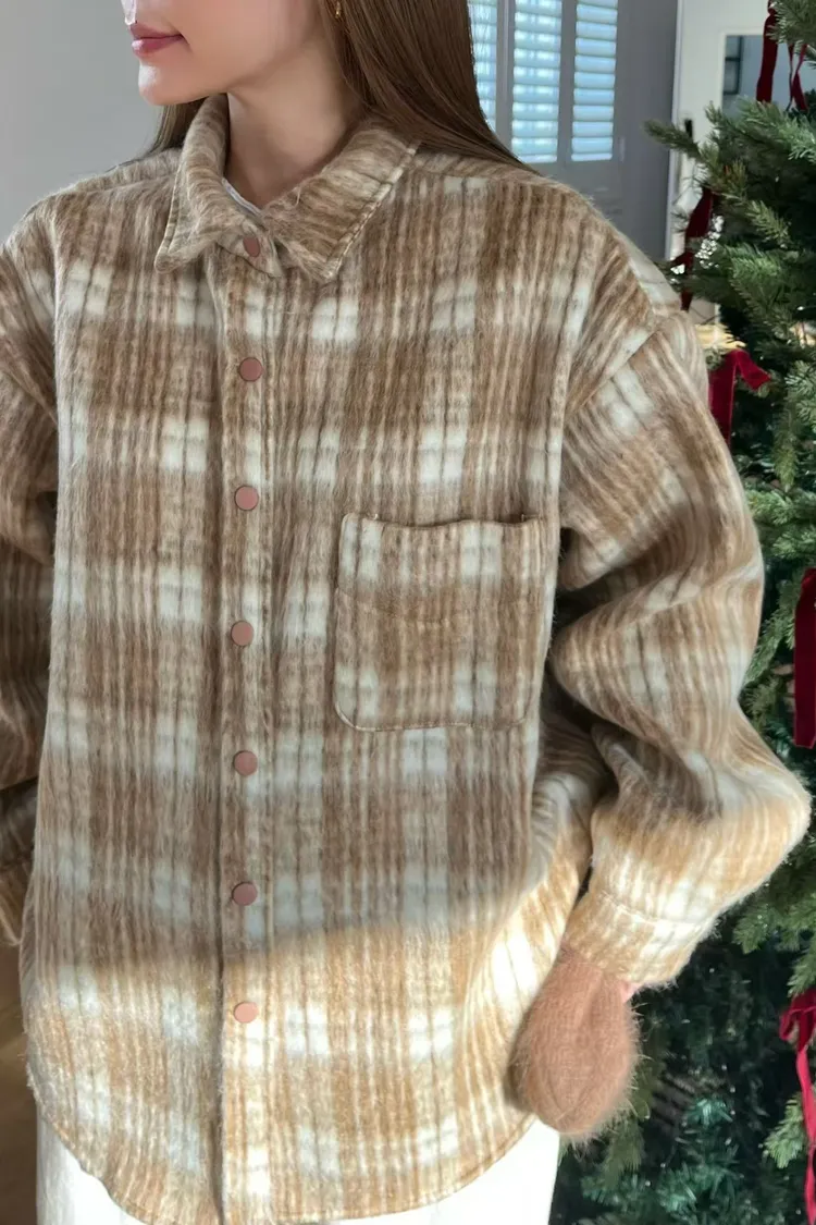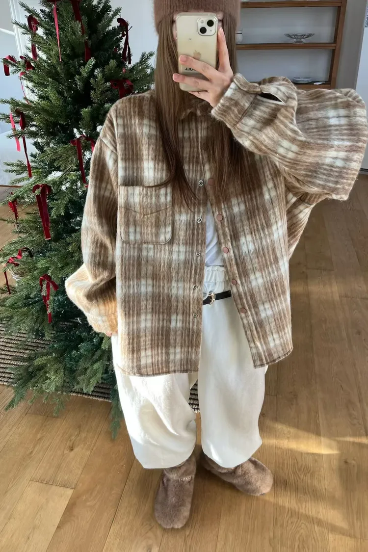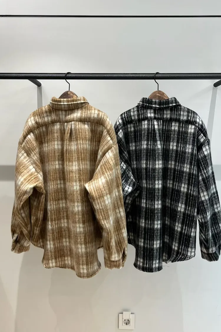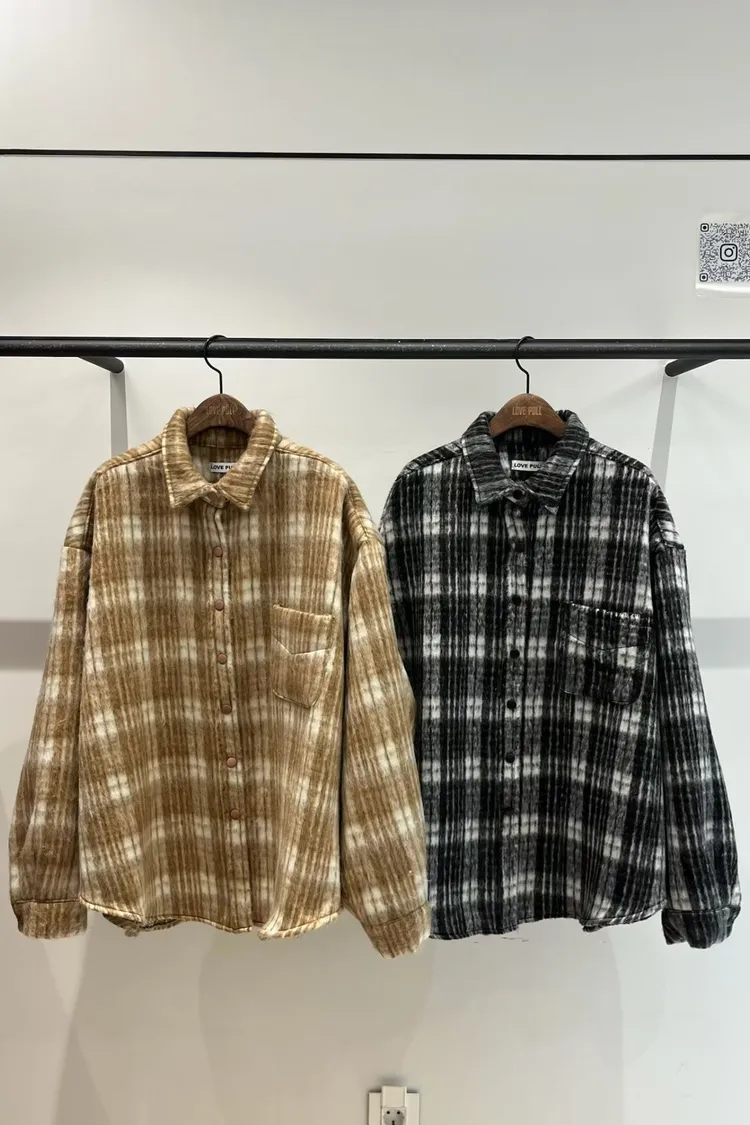 厚實挺版格紋毛呢襯衫