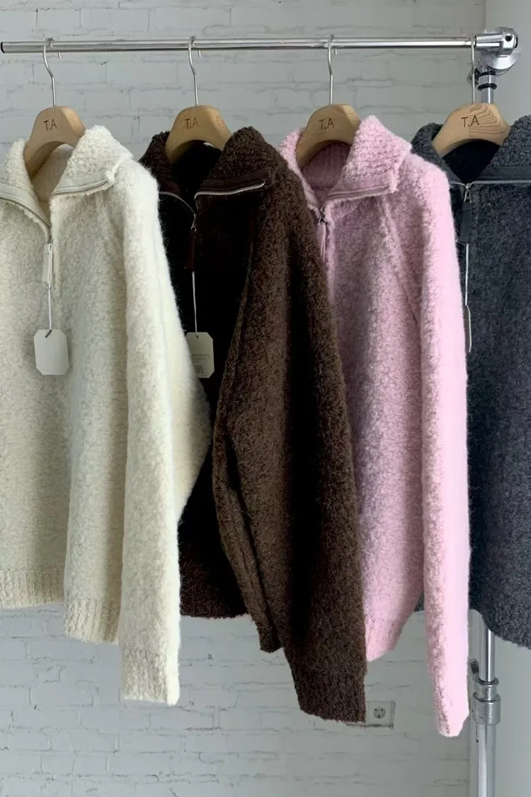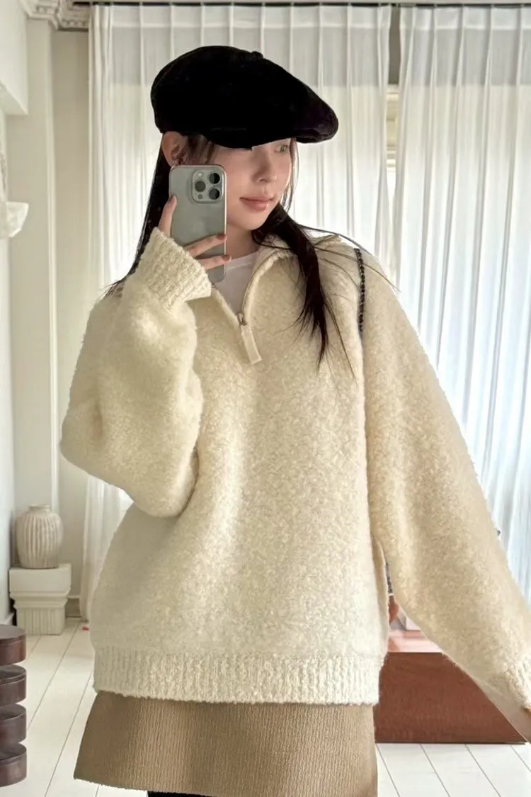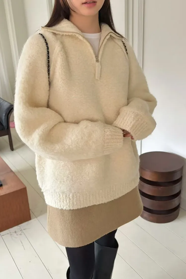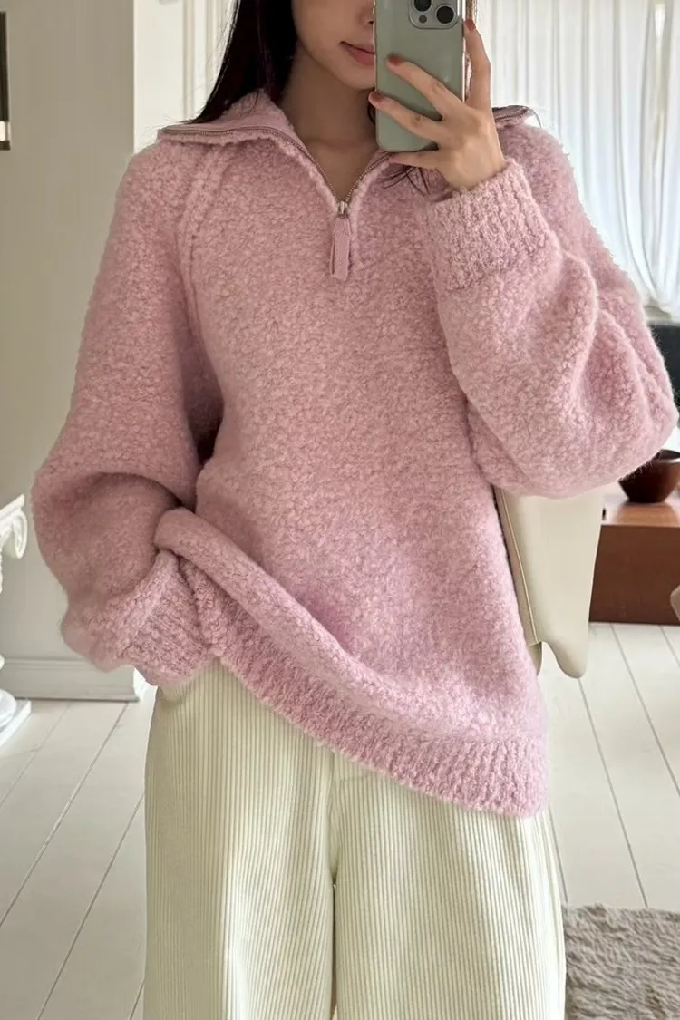 慵懶半拉鍊顆粒感毛衣