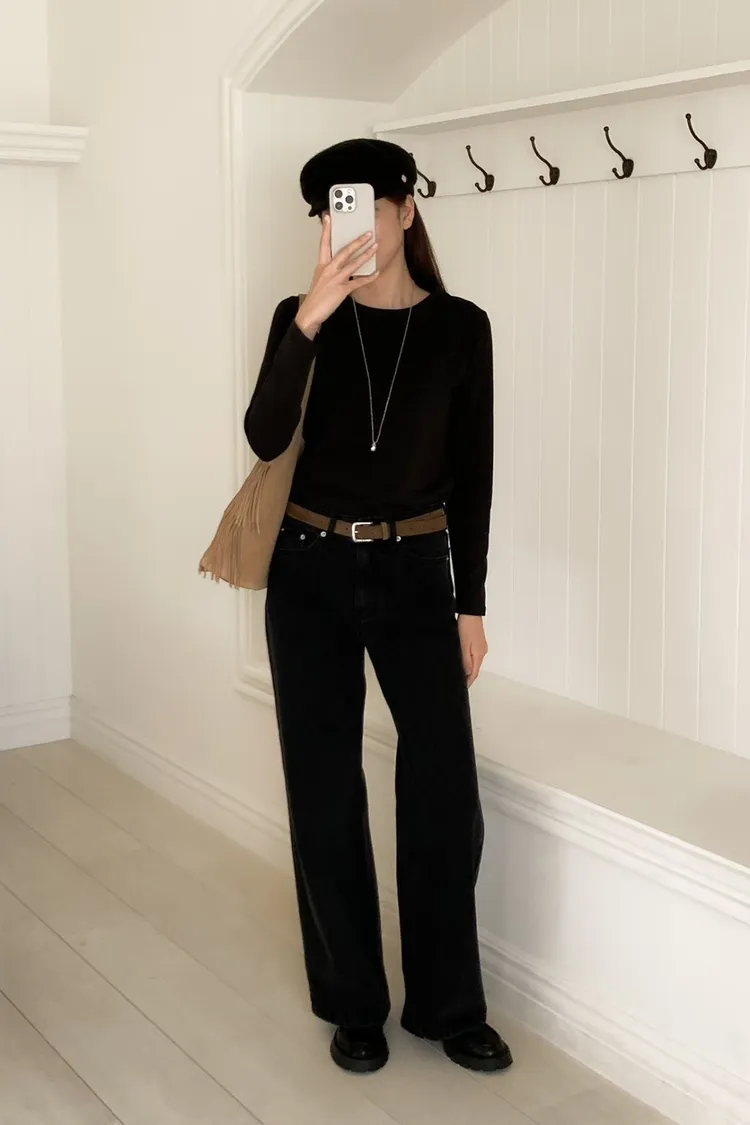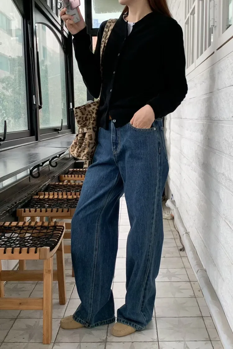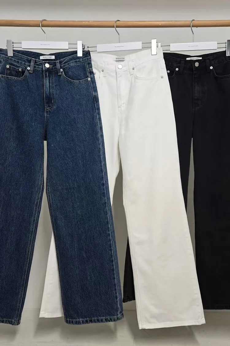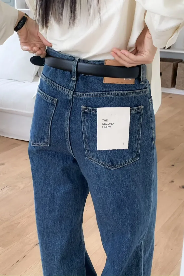 日常百搭皮標直筒褲