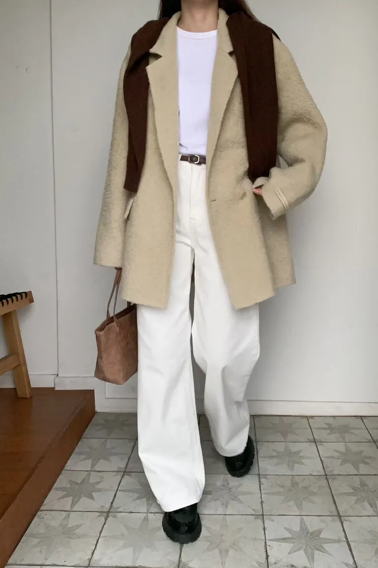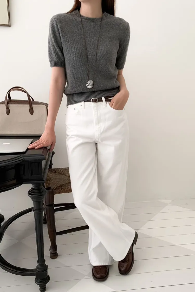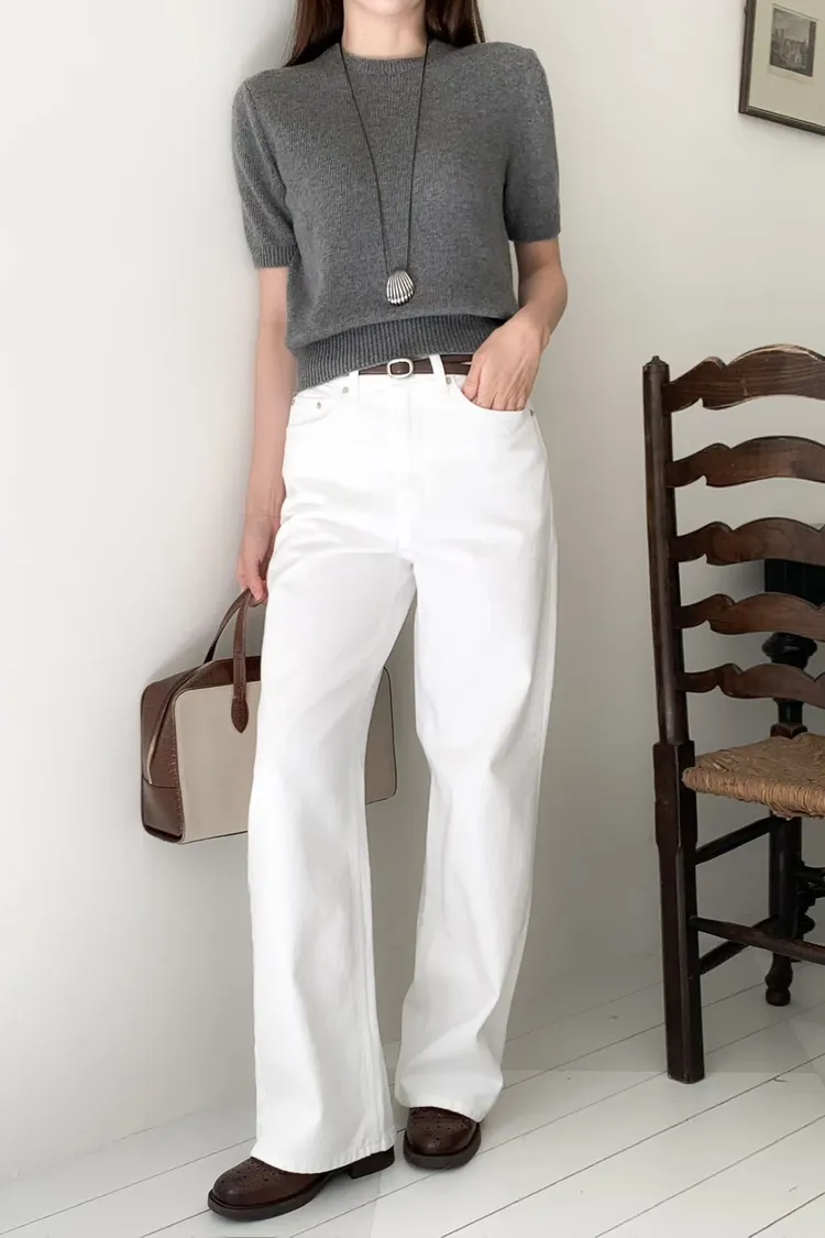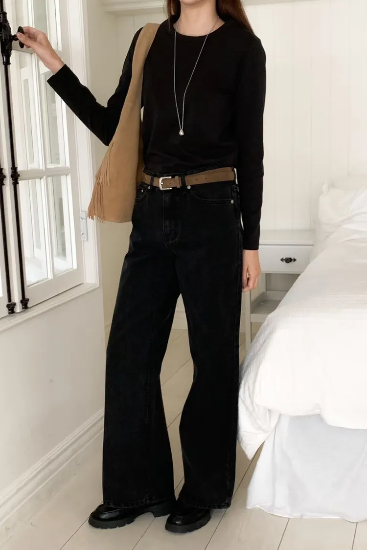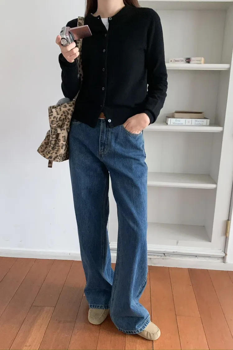 日常百搭皮標直筒褲
