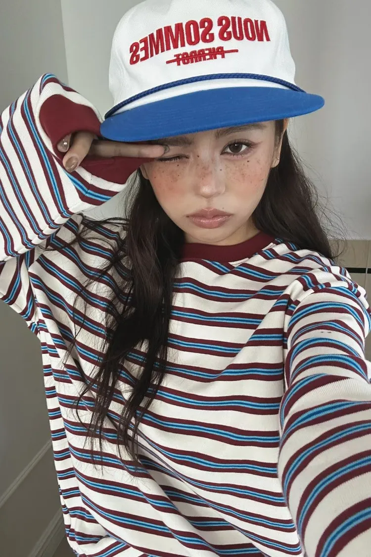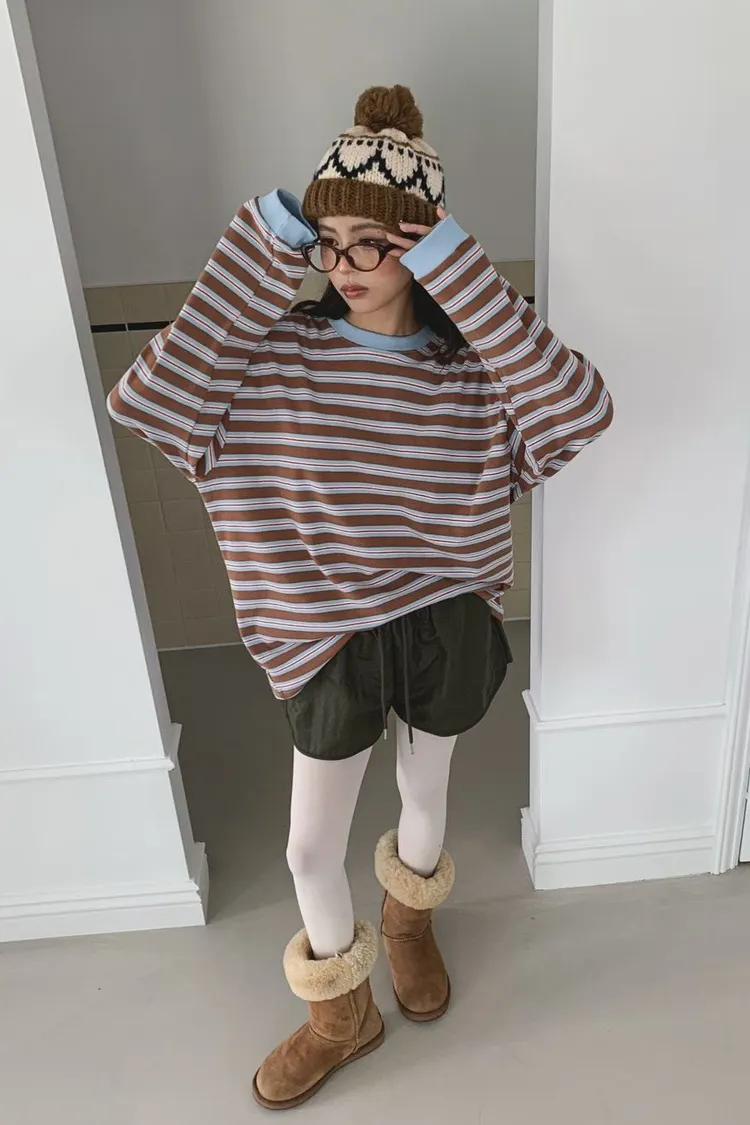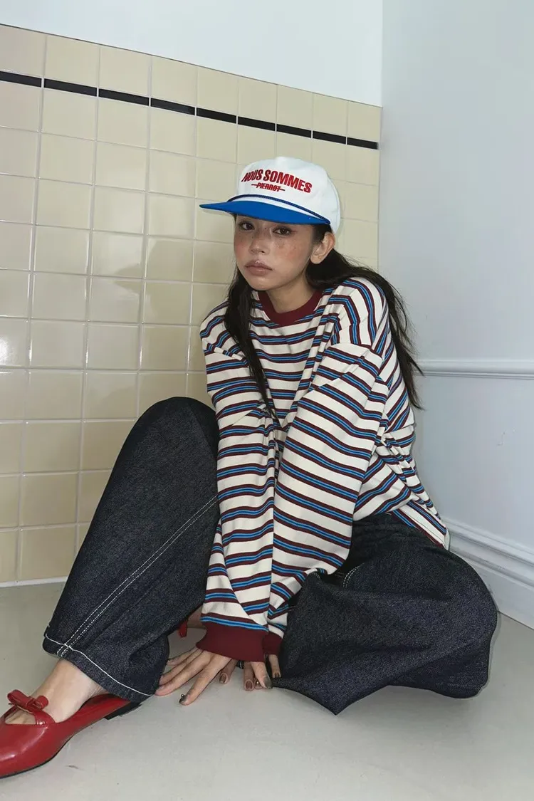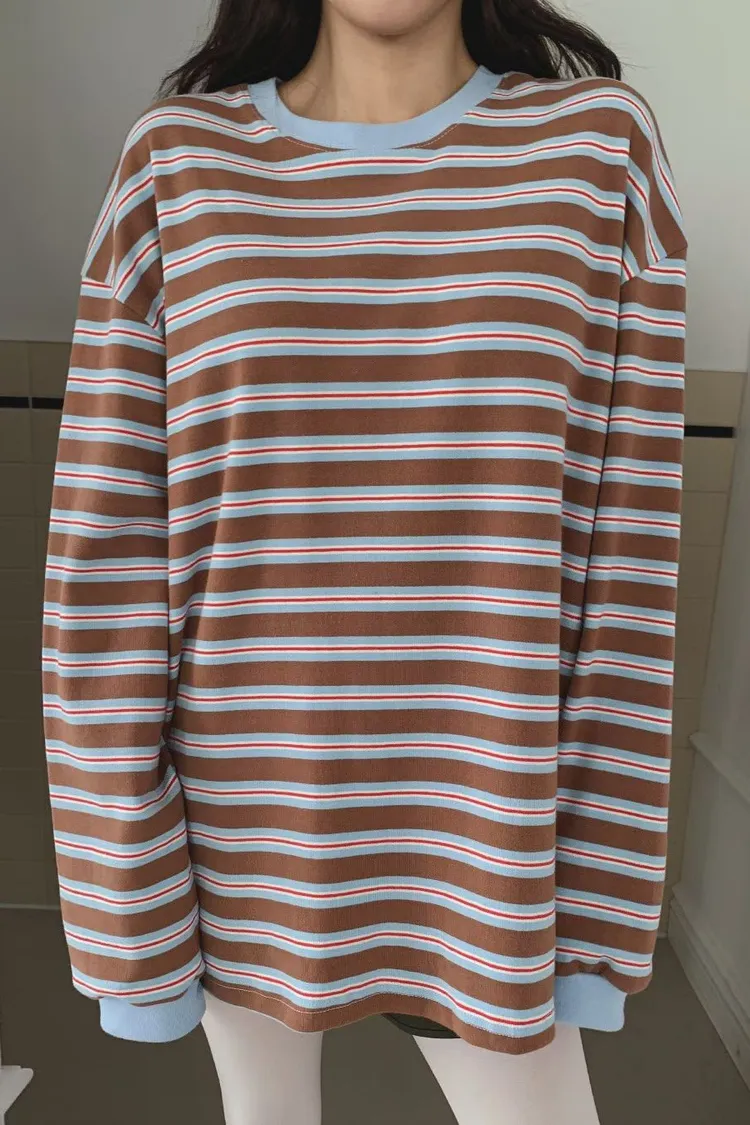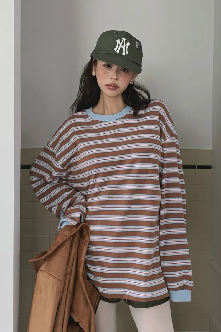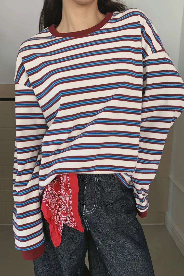 撞色條紋寬鬆上衣