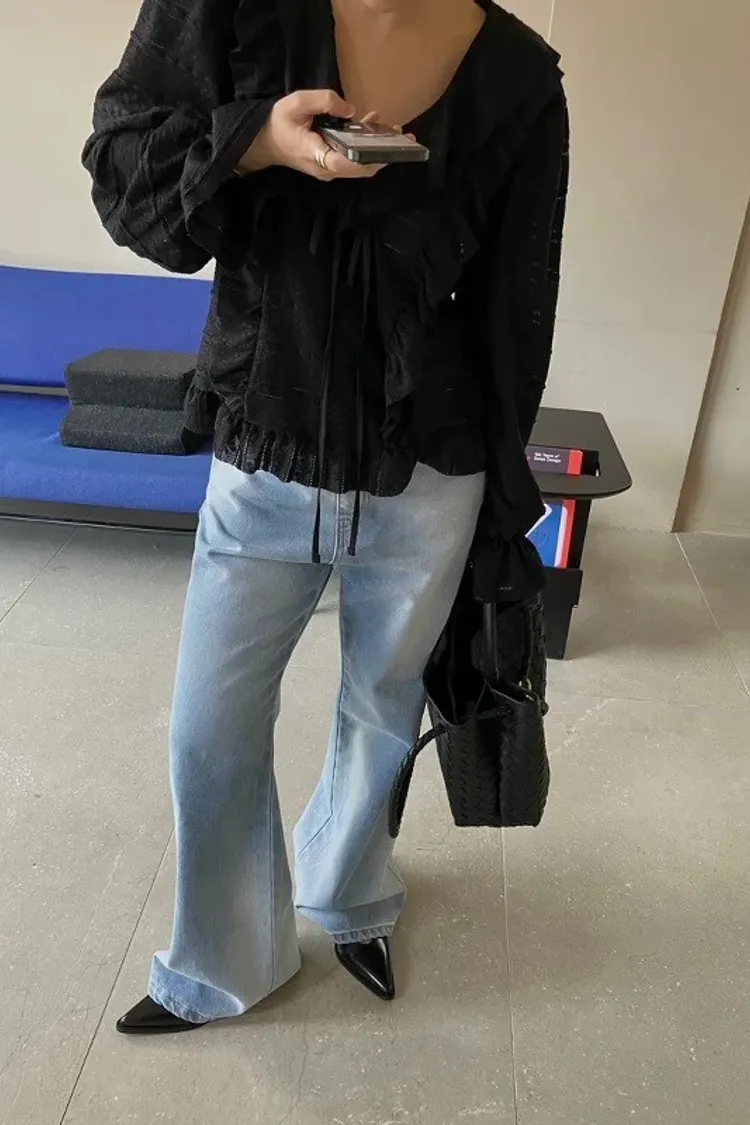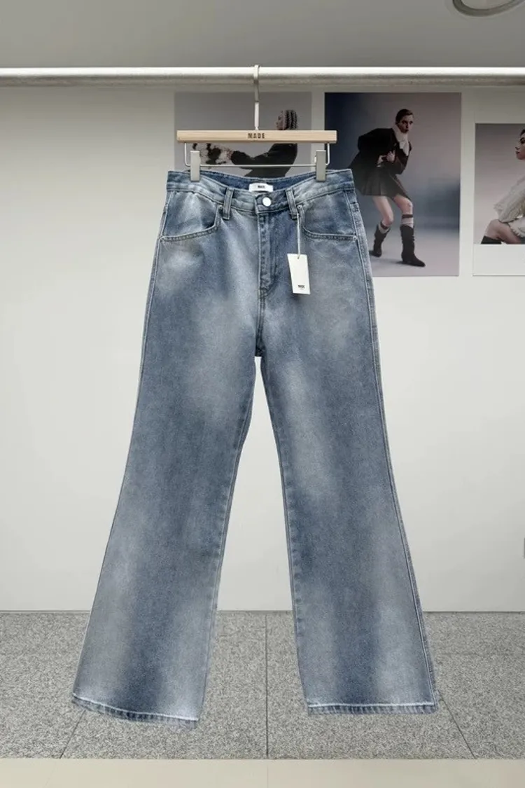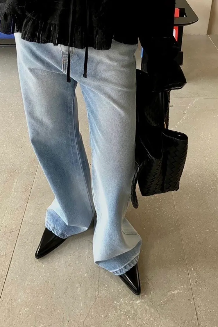 暈染感淺色牛仔寬褲