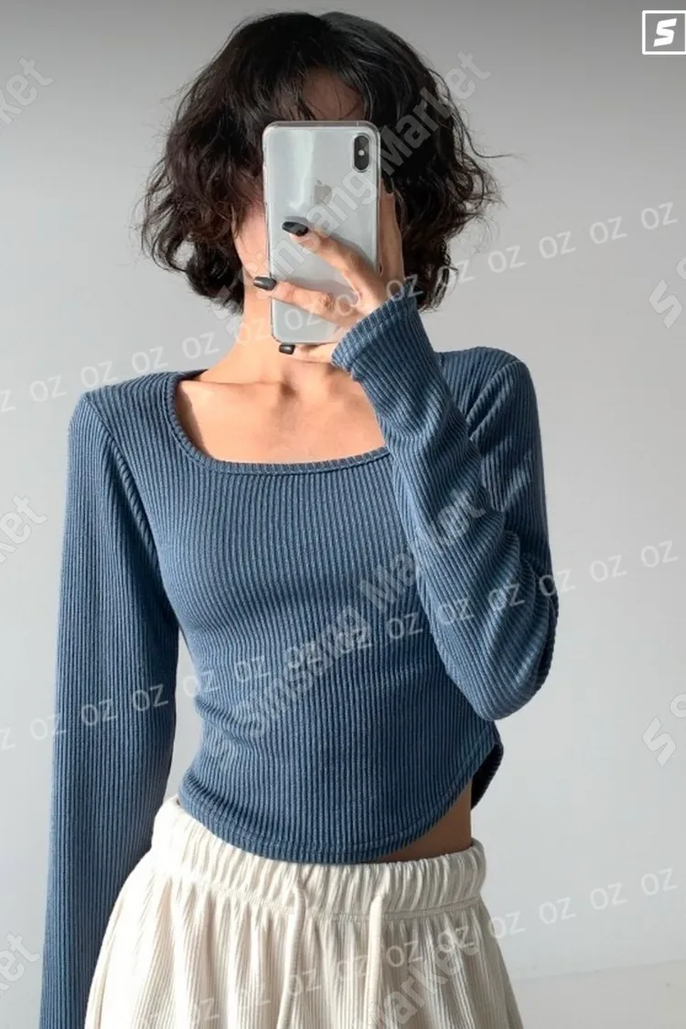 日常下圓弧坑條短版上衣