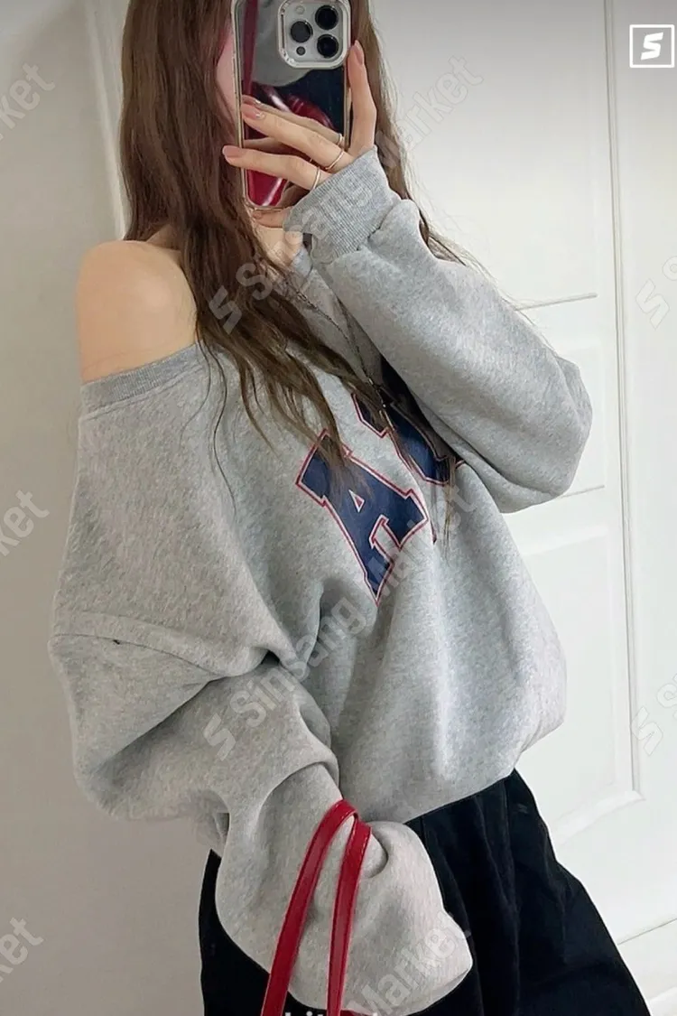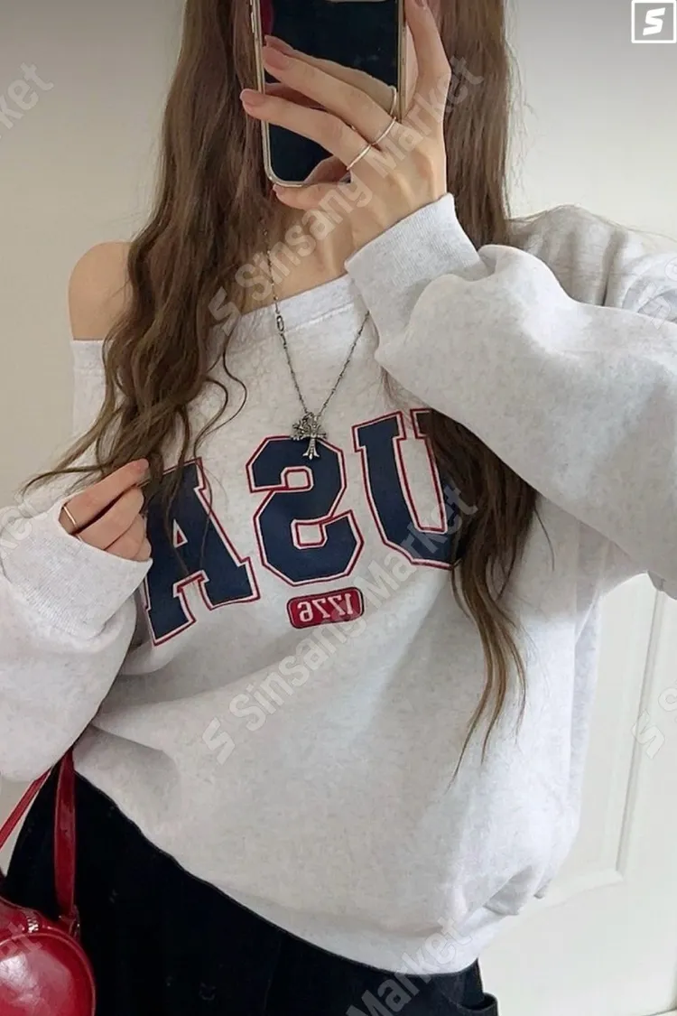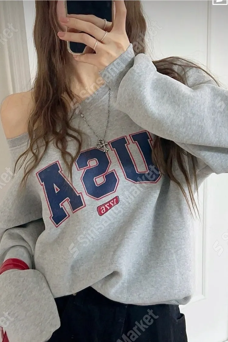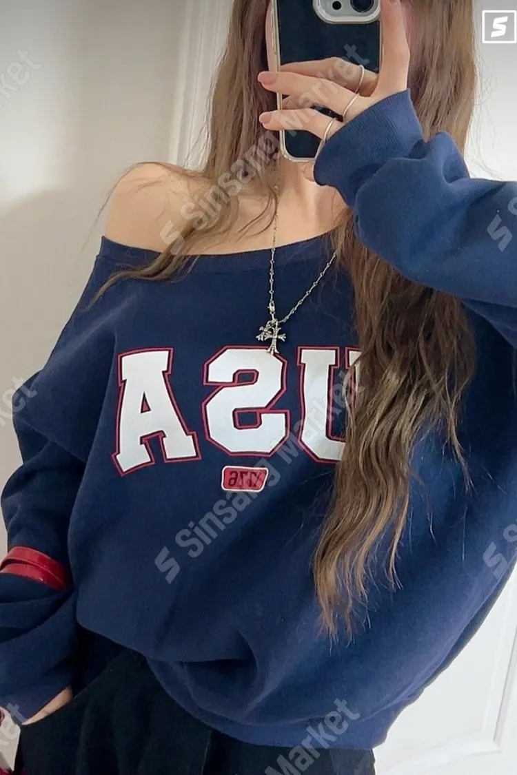 微性感斜肩USA衛衣