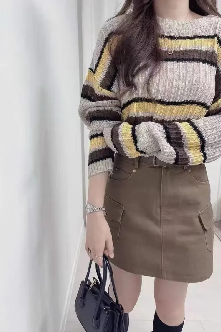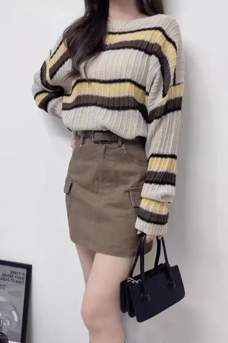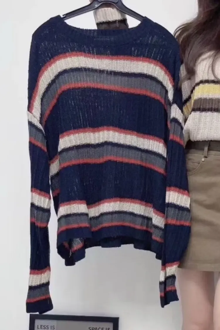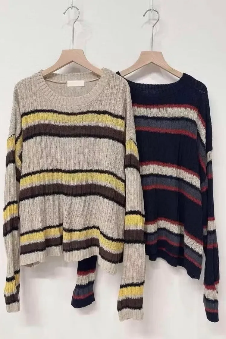 復古配色橫紋針織上衣