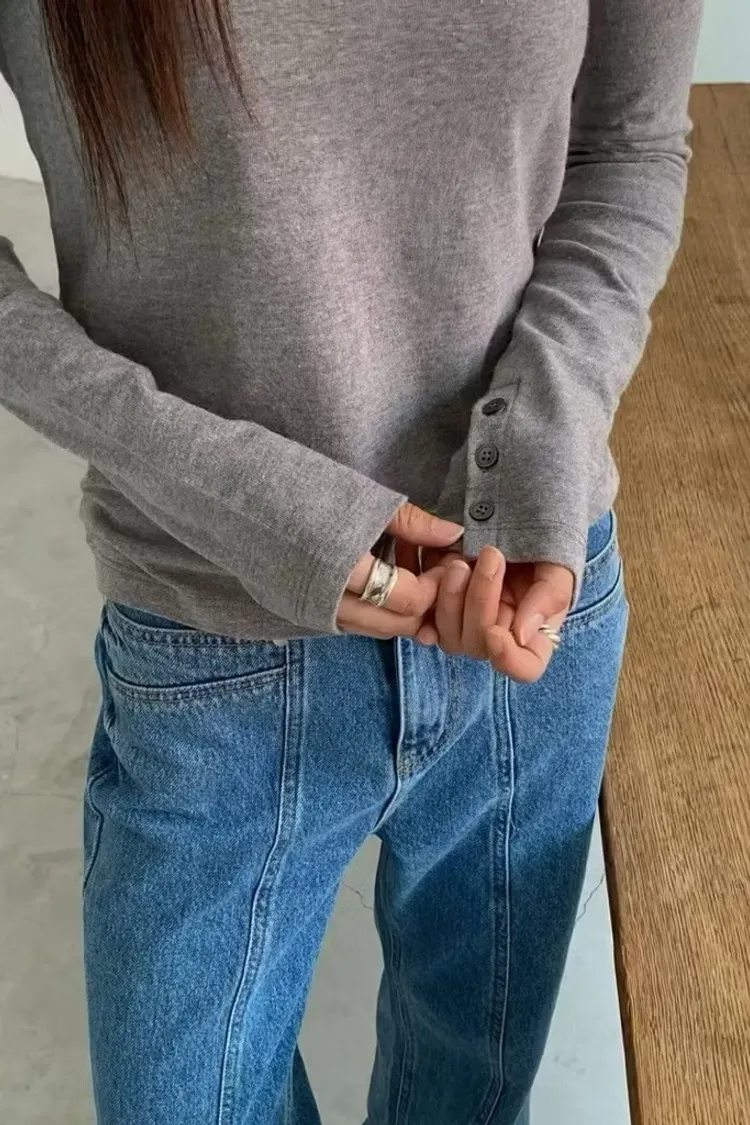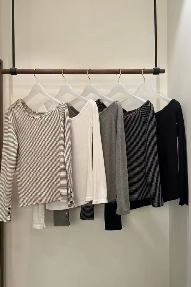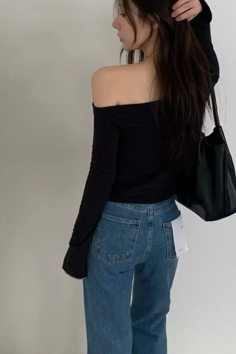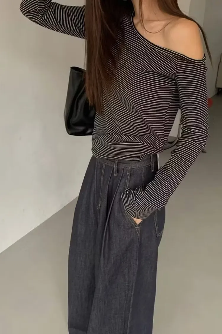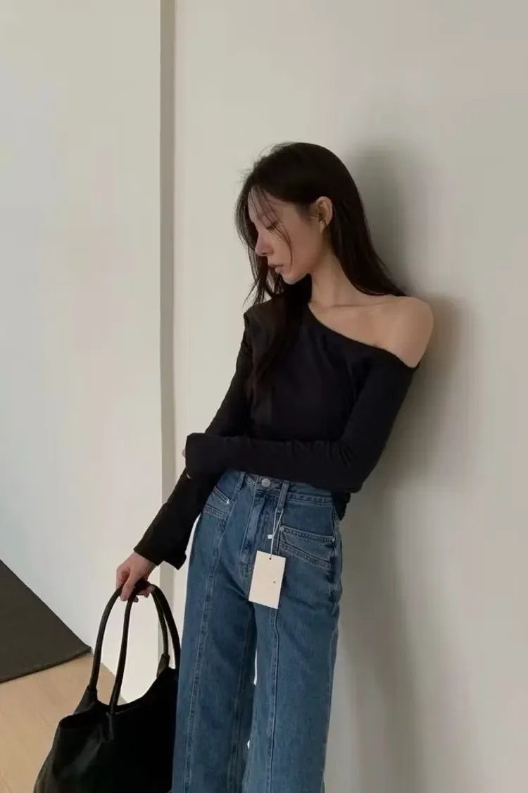 簡約斜肩長袖上衣