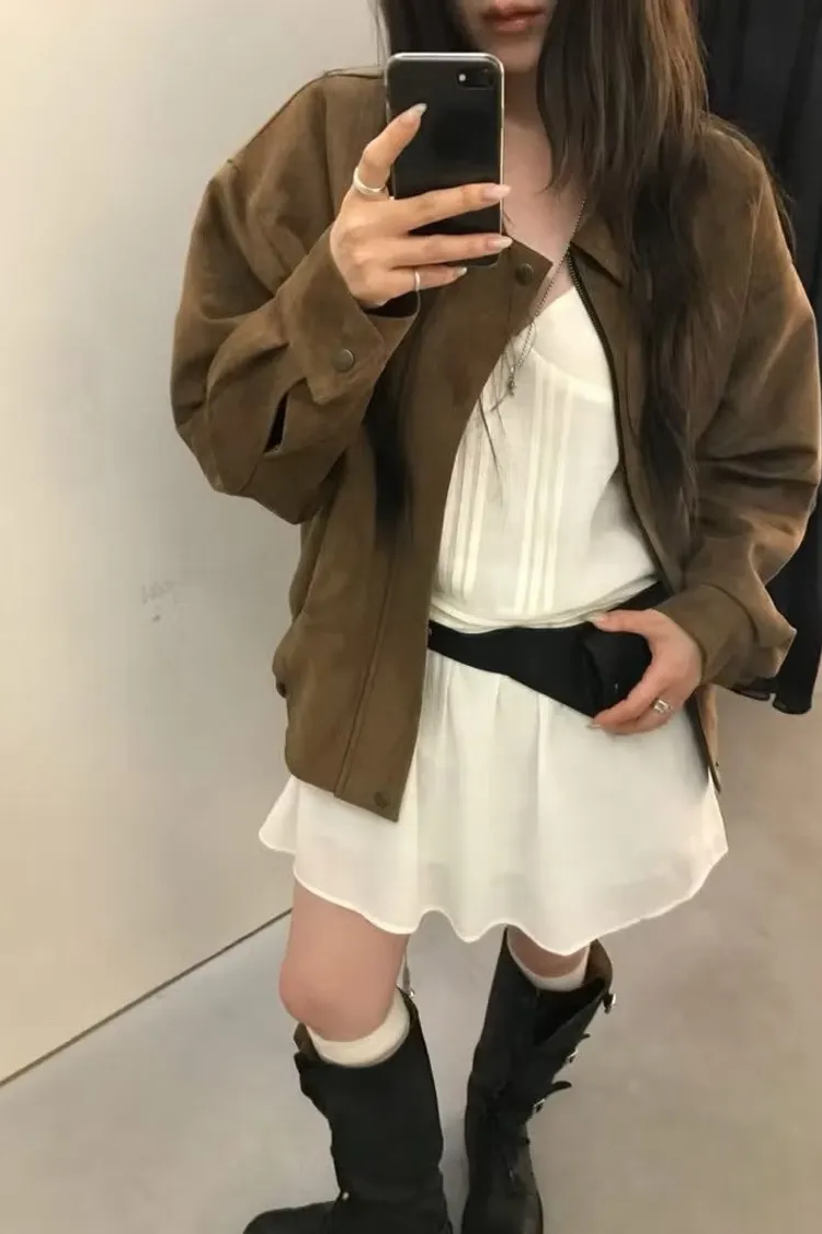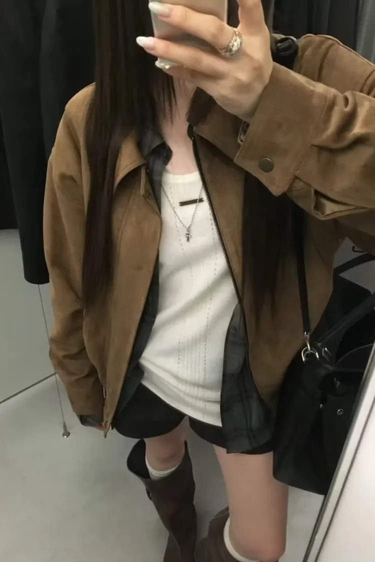 高質感麂皮寬鬆外套