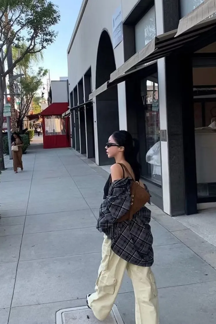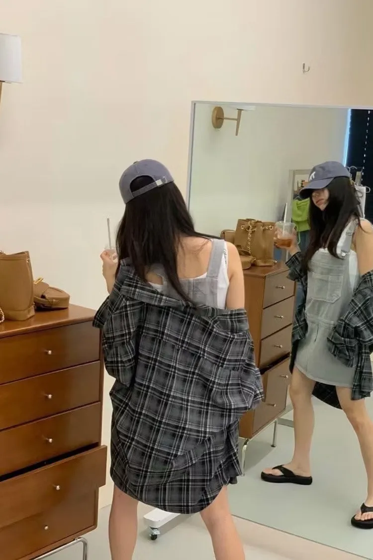 個性格紋落肩襯衫