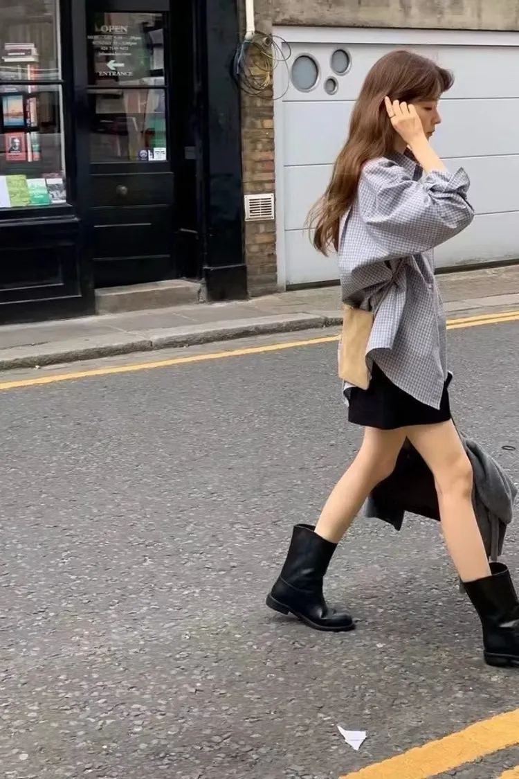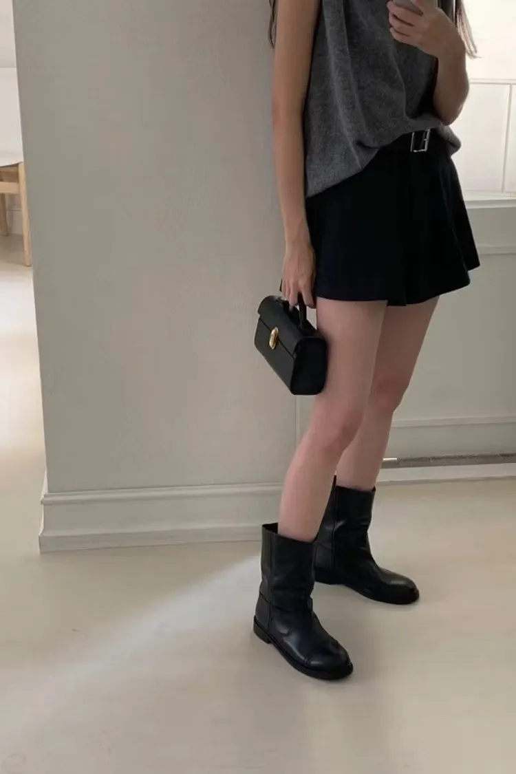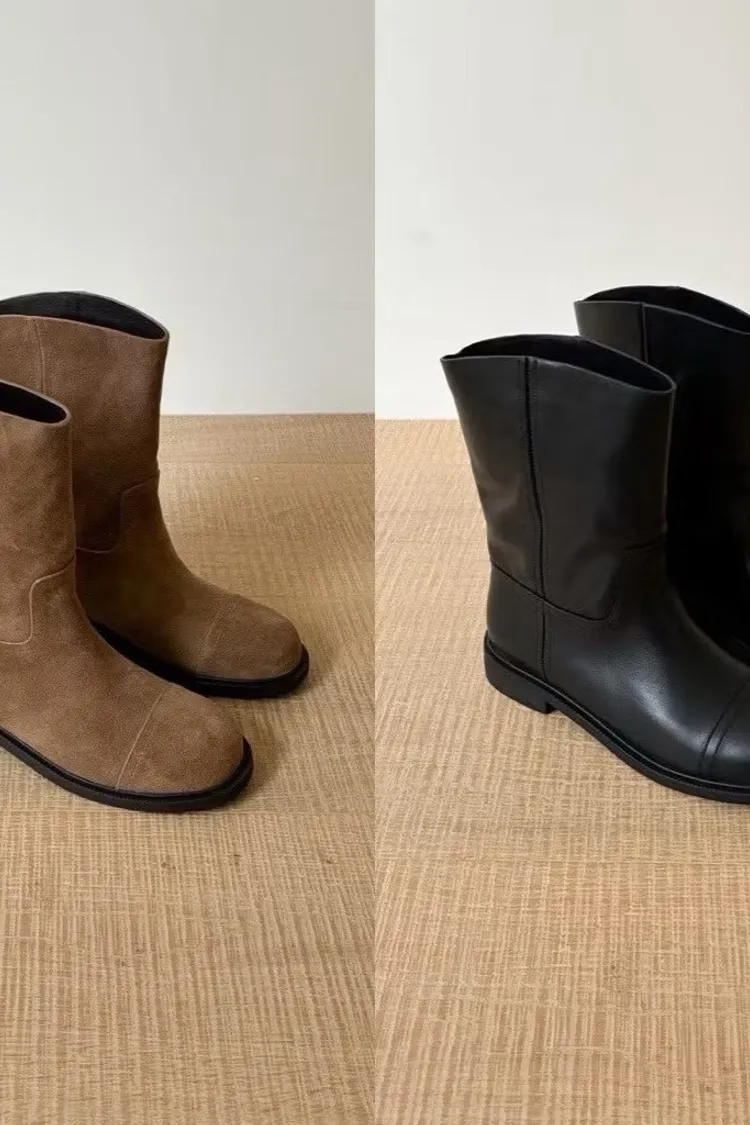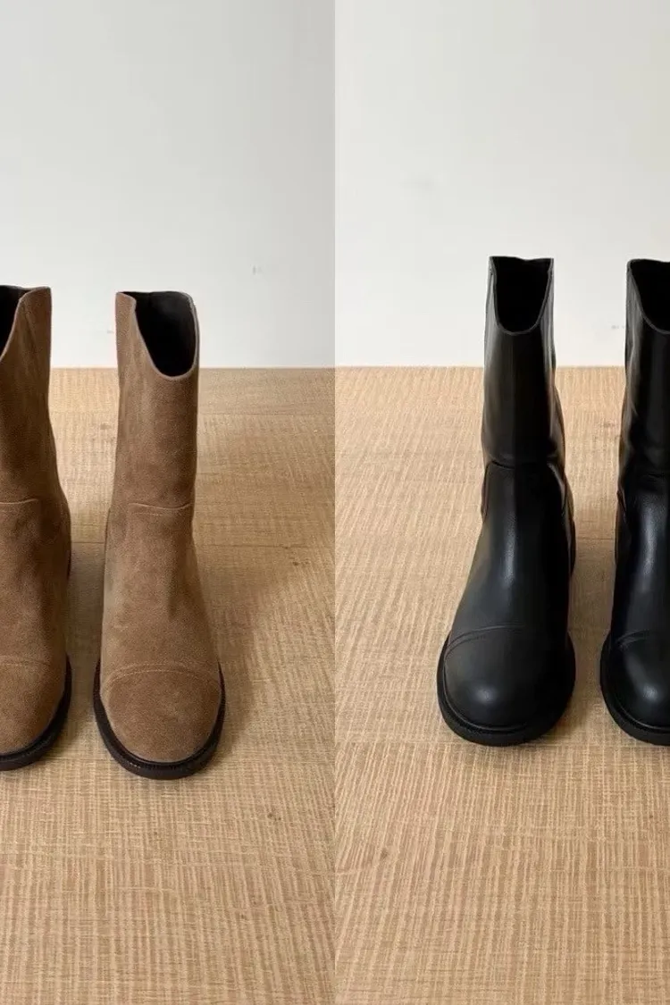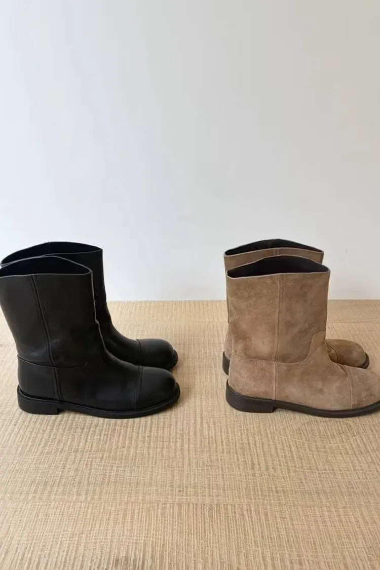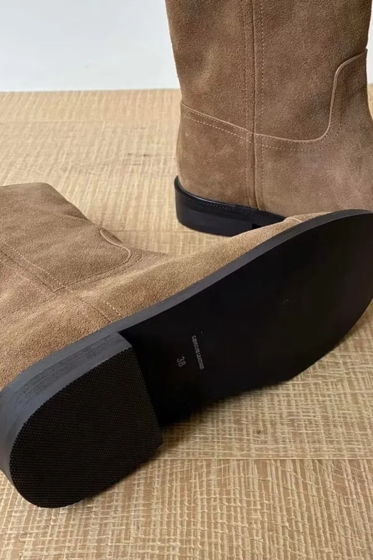 質感牛皮/麂皮中筒靴