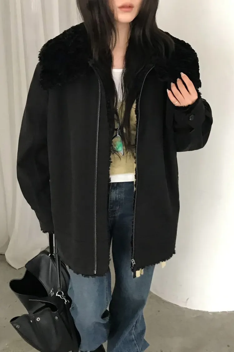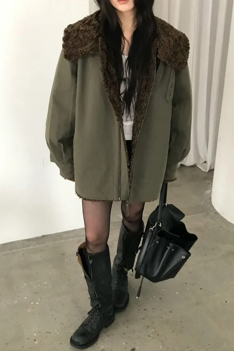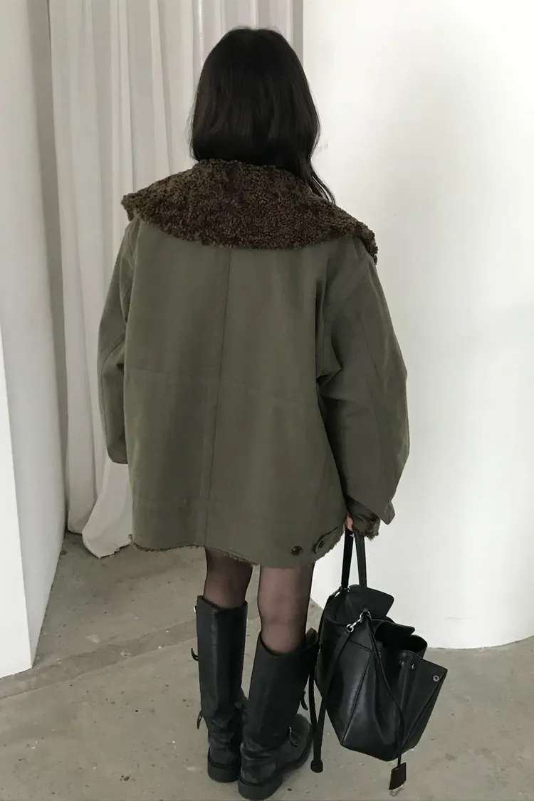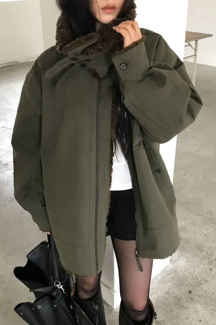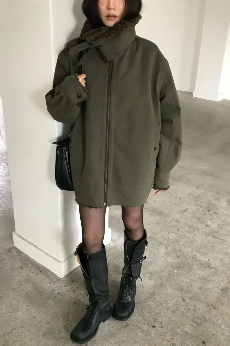 厚實大翻領中長版外套