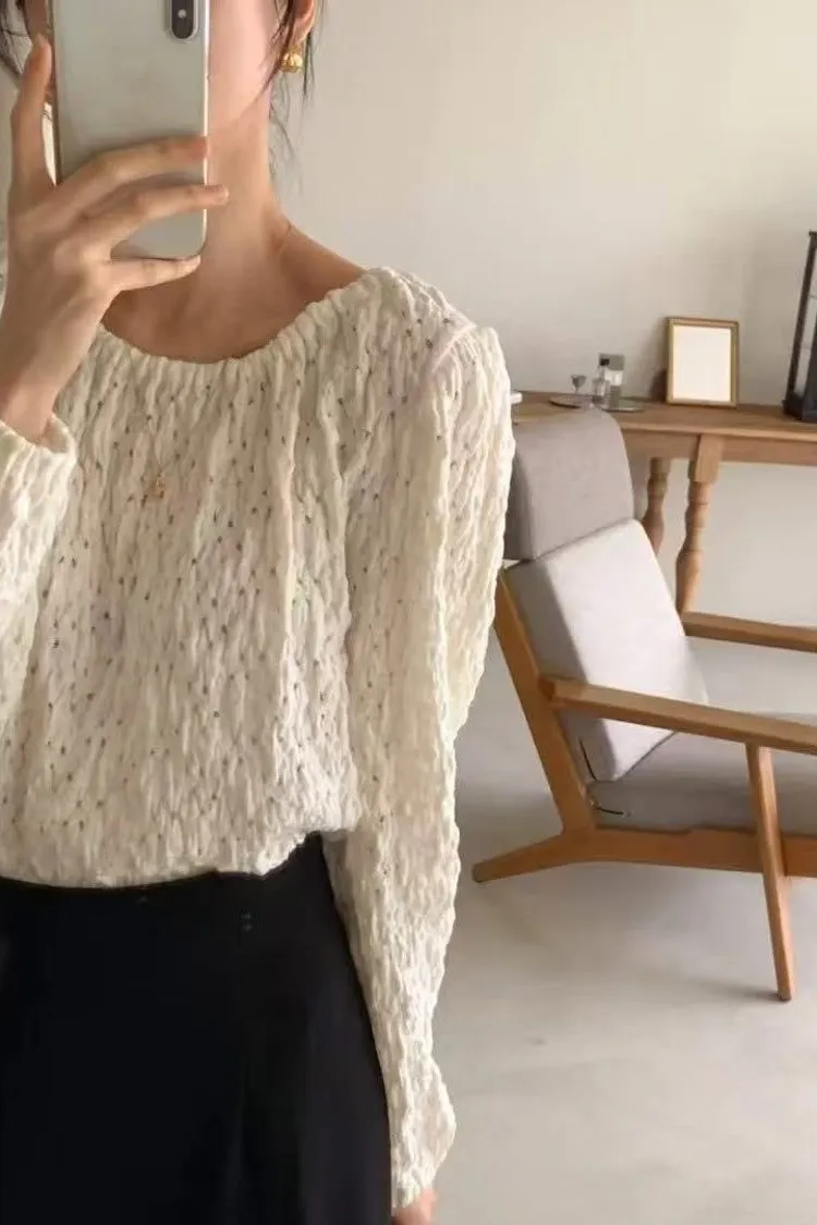 氣質皺皺雲朵鬆緊上衣