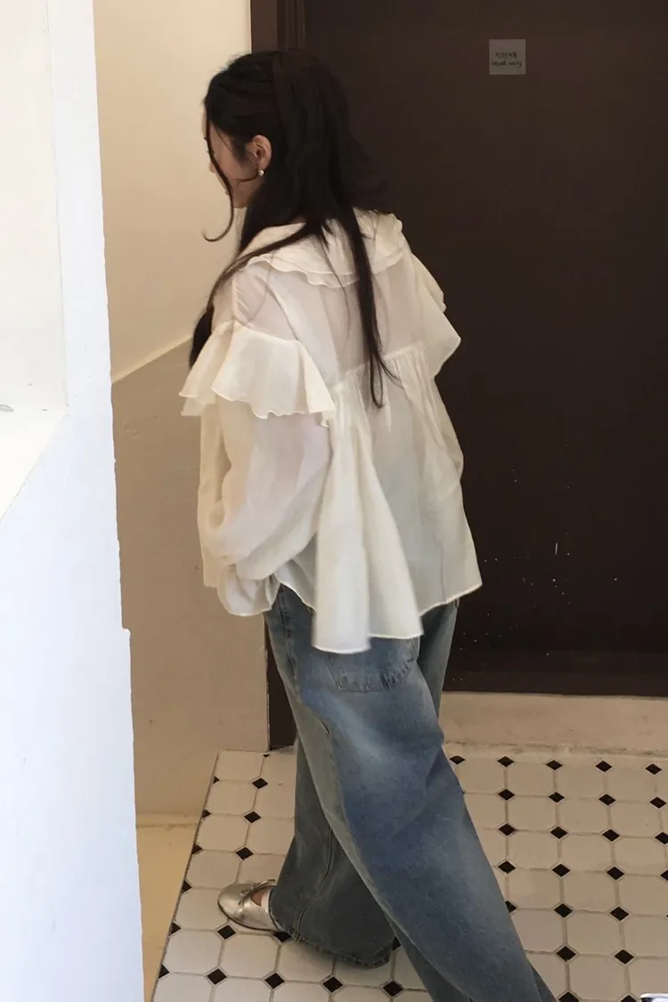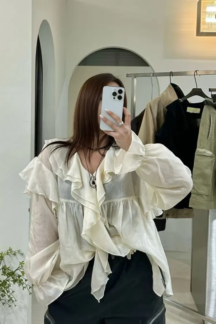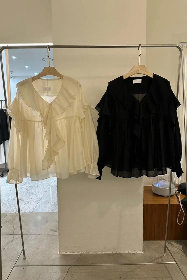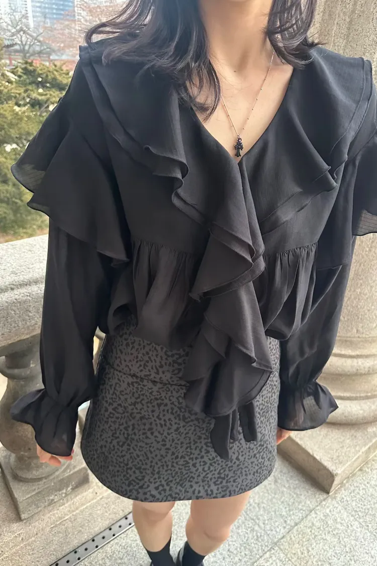 絲光荷葉雪紡上衣