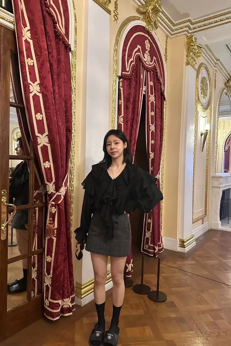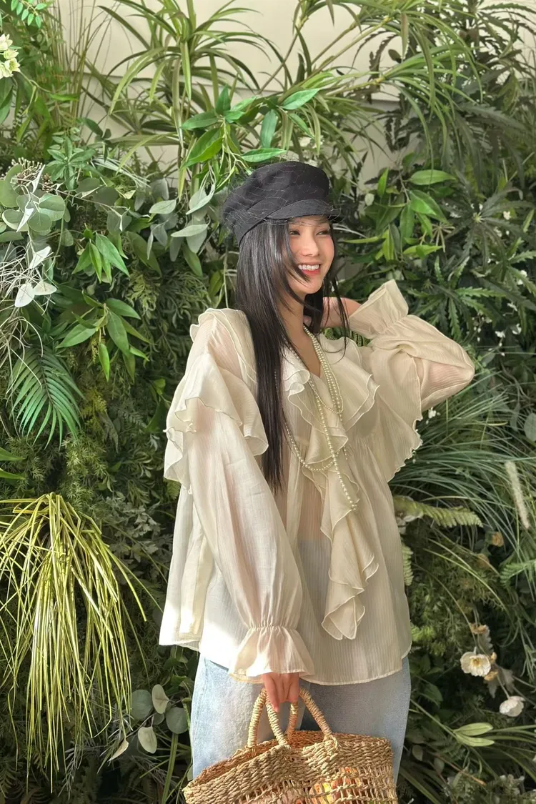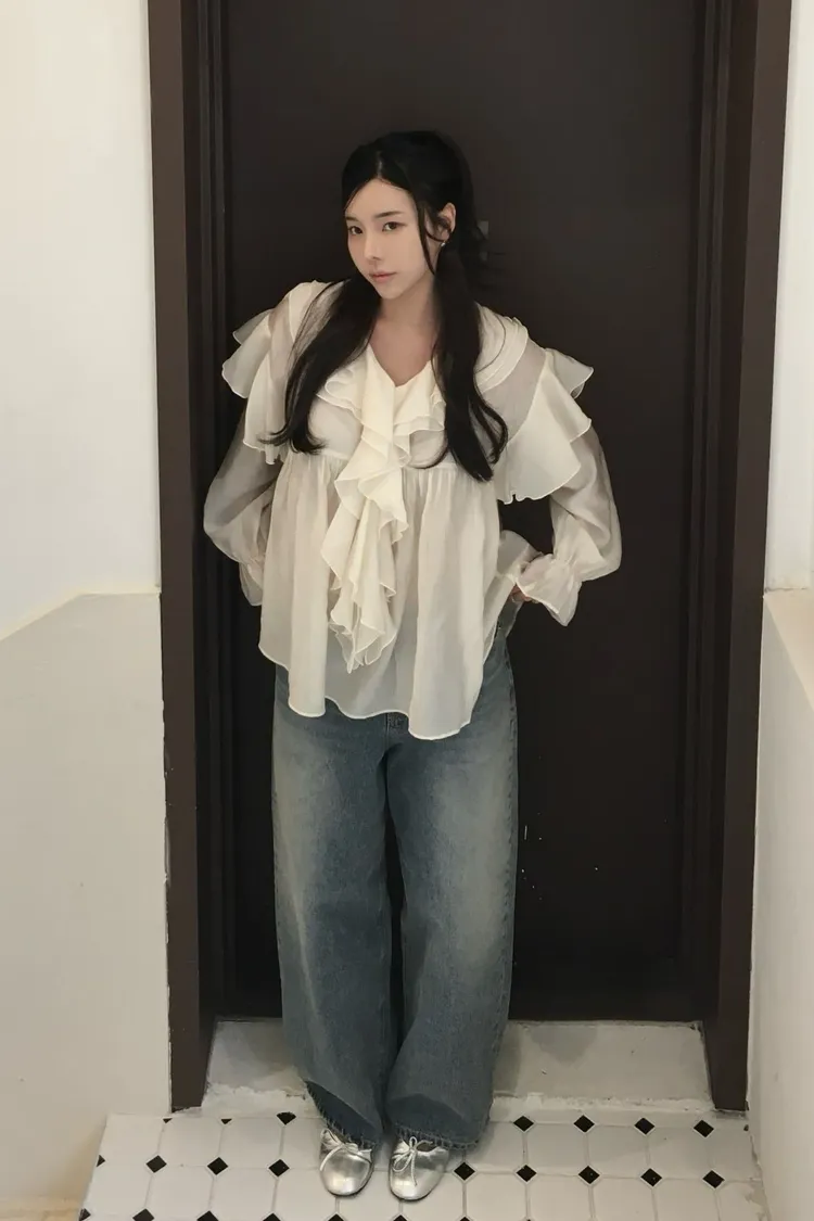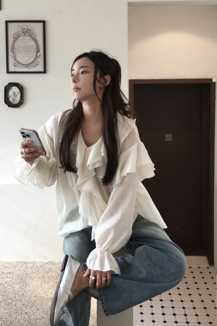 絲光荷葉雪紡上衣