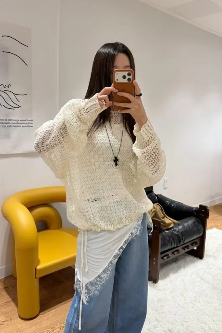慵懶透透網格上衣